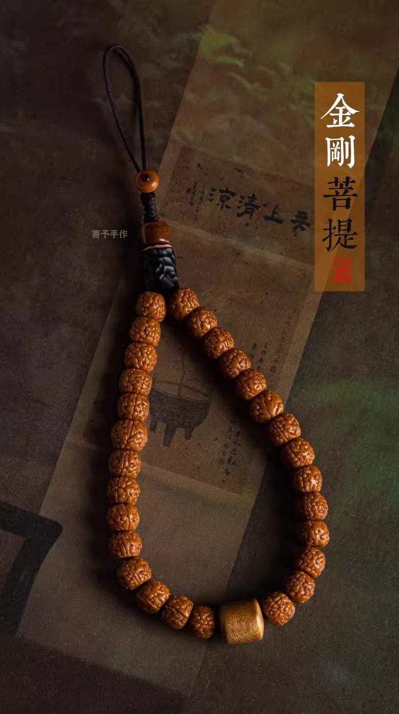 Diamond Bodhi Seed Phone Chain Short Wrist Strap Pendant Original Handicraft Phone Lanyard Ornament Unisex Accessories Durable Hanging Chain Bag Camera Pendant Anti-Loss Creative Hanging Ornament