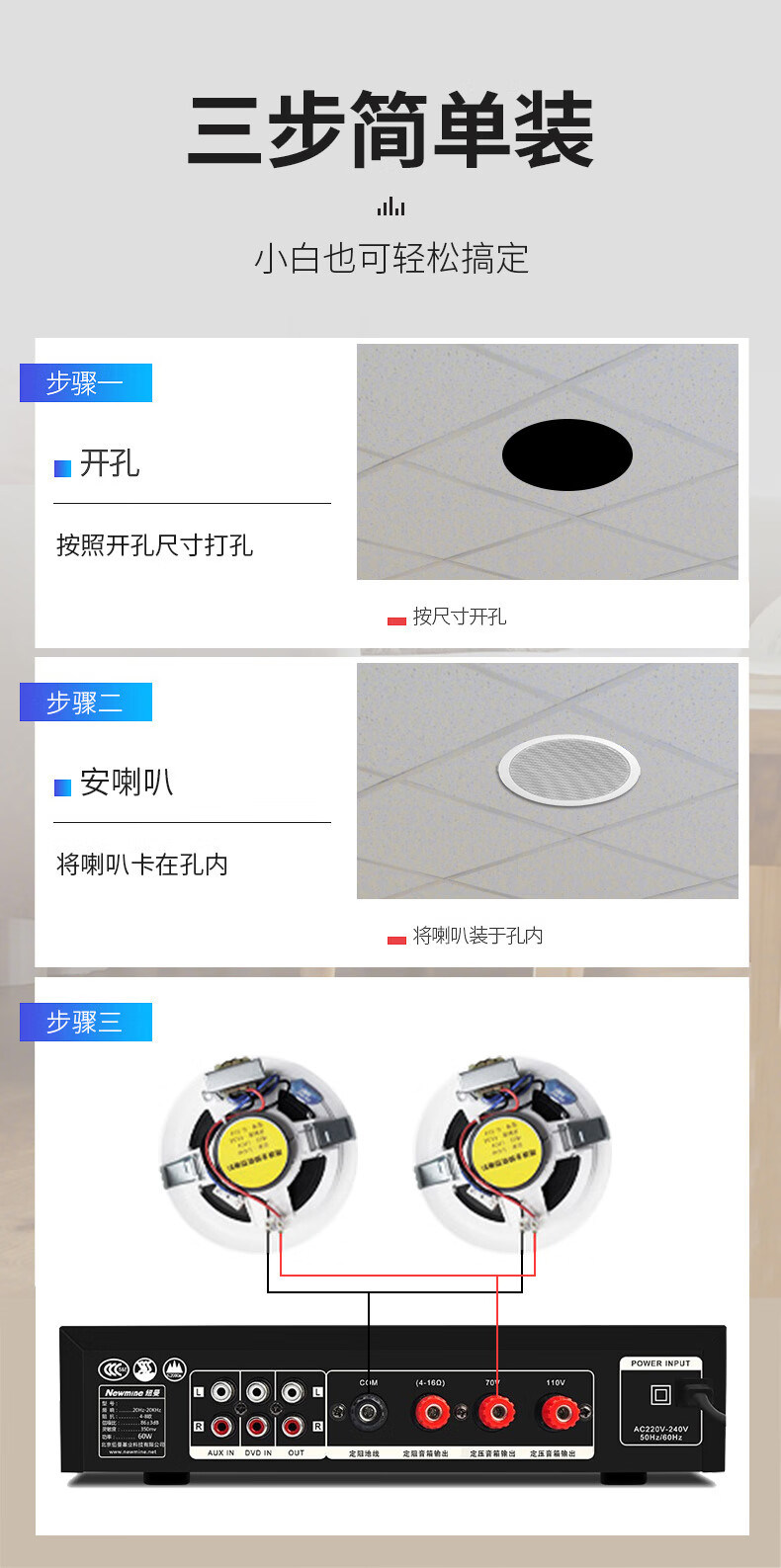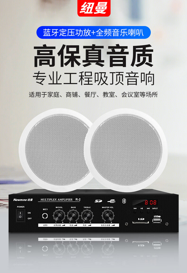 Newman Ceiling Speaker Audio Amplifier Set Broadcast Ceiling-Mounted Speakers Background Music Playback Speakers