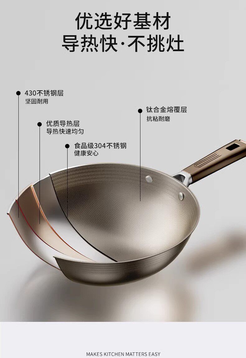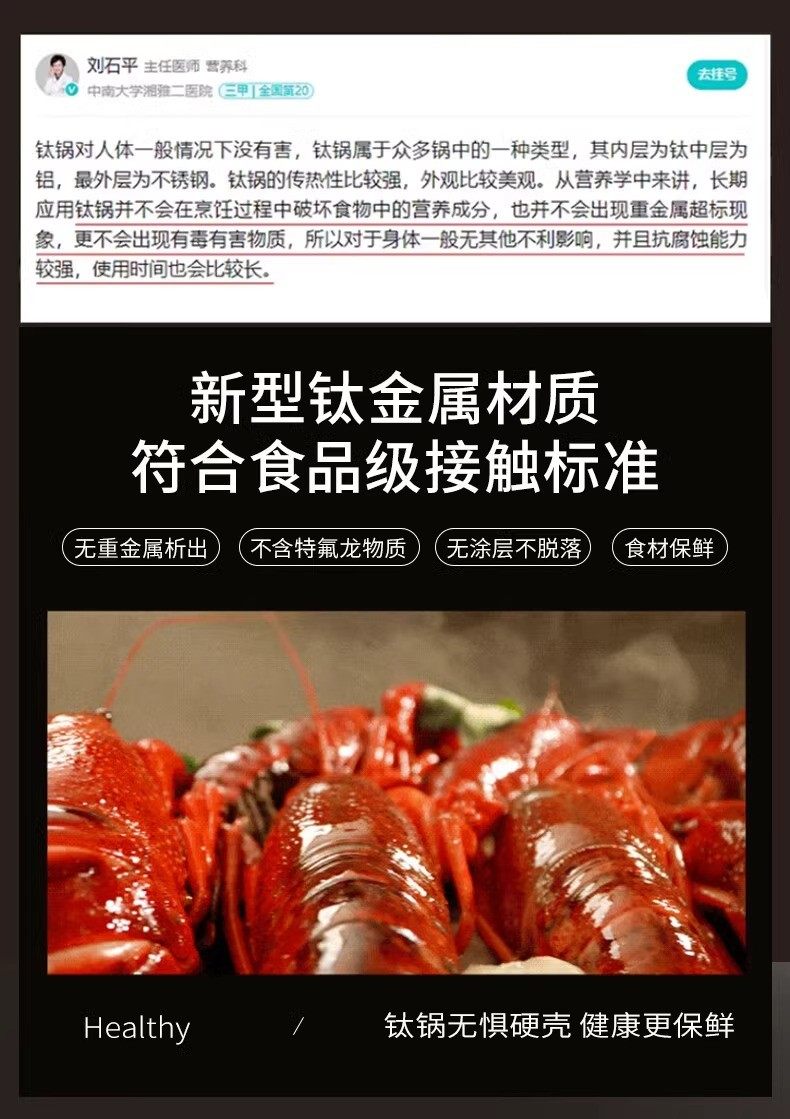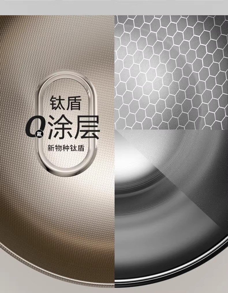 Japanese Uncoated Titanium Pot Non-Stick Frying Pan Pure Induction Cooker Gas Titanium Wok Multi-Functional Household Cooking Pan