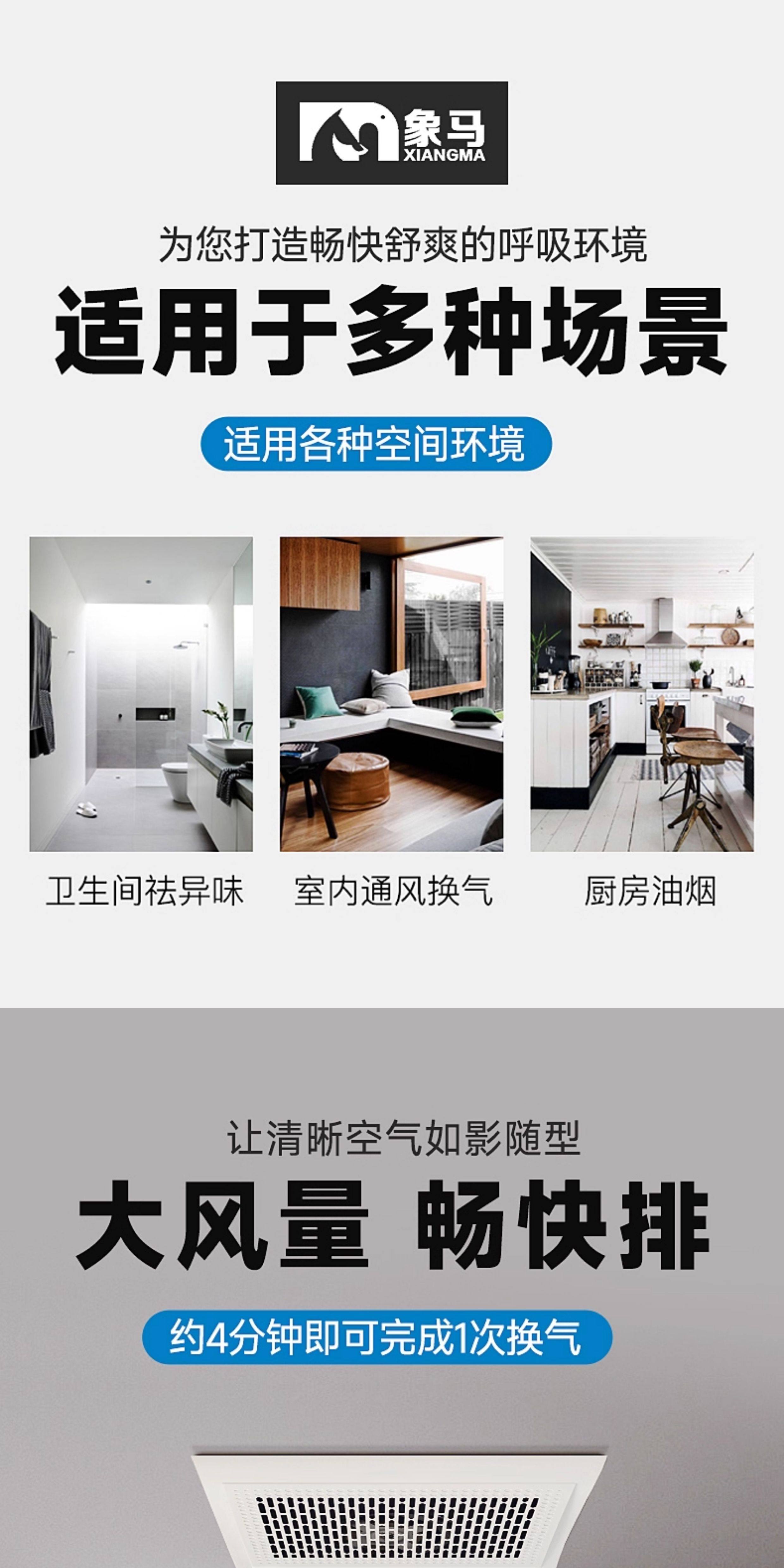 Exhaust Fan for Bathroom Ceiling, Ceiling-Mounted Ventilation Fan, Kitchen Household Exhaust Fan, Powerful Ventilation
