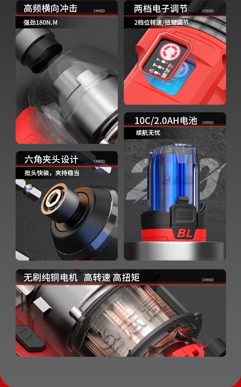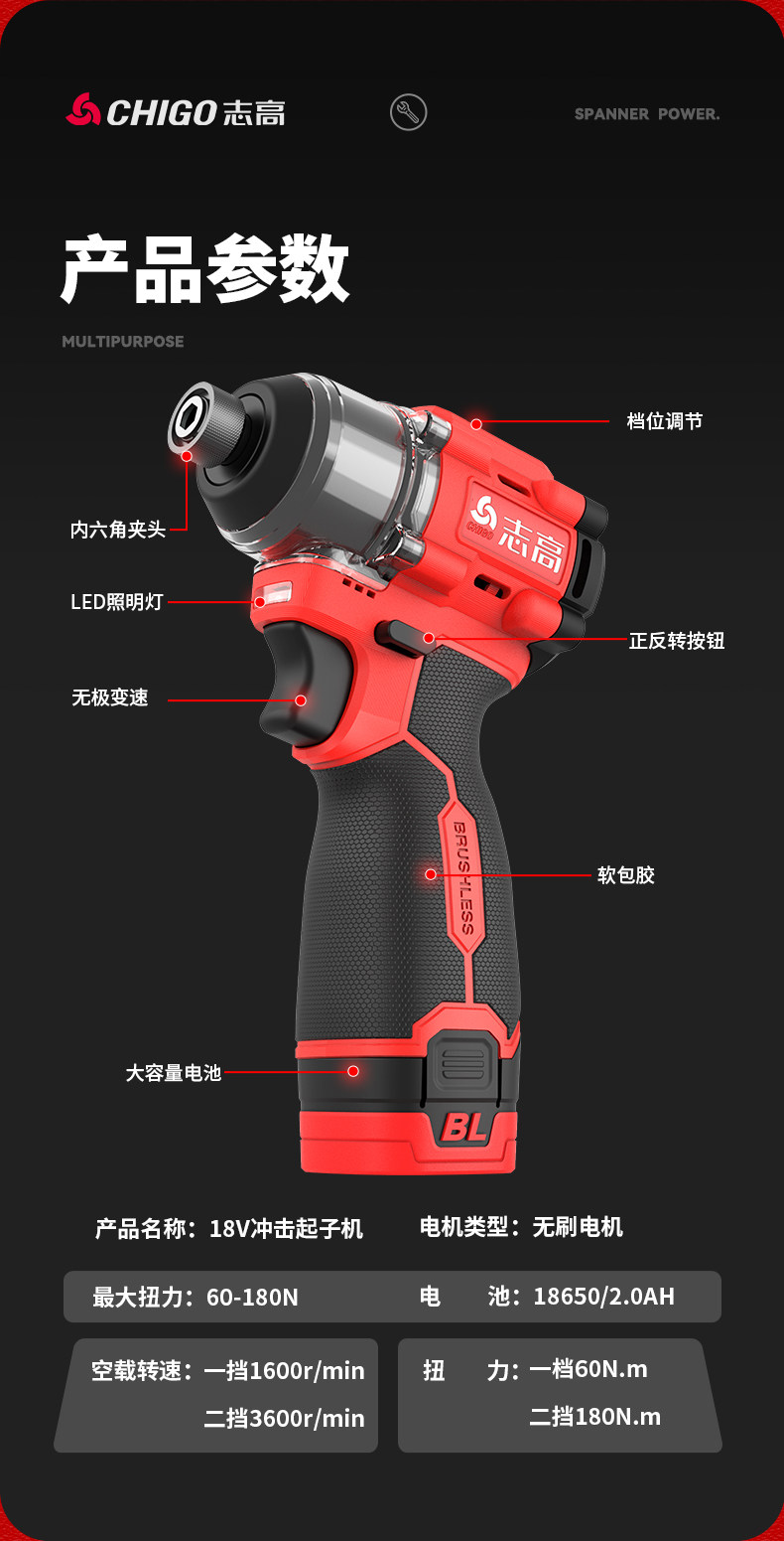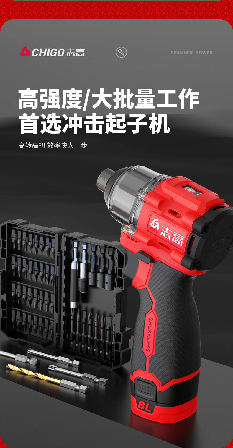 | Color Classification | ✅Buy Genuine and Good Tools, Look for Chigo Stores,✅Compact and Powerful, Quick to Install,✅Professional Torque Start-Up: Impact Driver of Choice,✅Quick-Change Chuck: Easy to Install, No Drill Bits Falling Out,↓↓↓The Following Is a 2000 Rpm + 80N Dual-Speed Screwdriver,18V Brushless Two-Speed Screwdriver 1 Electric Carton + 2-Piece Set,18V Brushless Two-Speed Screwdriver 2 Electric Paper Boxes + 2-Piece Set,18V Brushless Two-Speed Screwdriver 1 Electric Plastic Box + 8-Piece Set,18V Brushless Two-Speed Screwdriver 2 Electric Plastic Boxes + 8-Piece Set,↓↓↓The Following Is a 3600 Rpm + 160N Impact Driver,18V Brushless Impact Driver 1 Electric Plastic Box + 2 Piece Set,18V Brushless Impact Driver 2 Electric Plastic Boxes + 2 Piece Set,18V Brushless Impact Driver 1 Electric Plastic Box + 8-Piece Set,18V Brushless Impact Driver 2 Electric Plastic Boxes + 8-Piece Set,18V Brushless Impact Driver 1 Electric Plastic Box + 20-Piece Set,18V Brushless Impact Driver 2 Electric Plastic Boxes + 20-Piece Set |