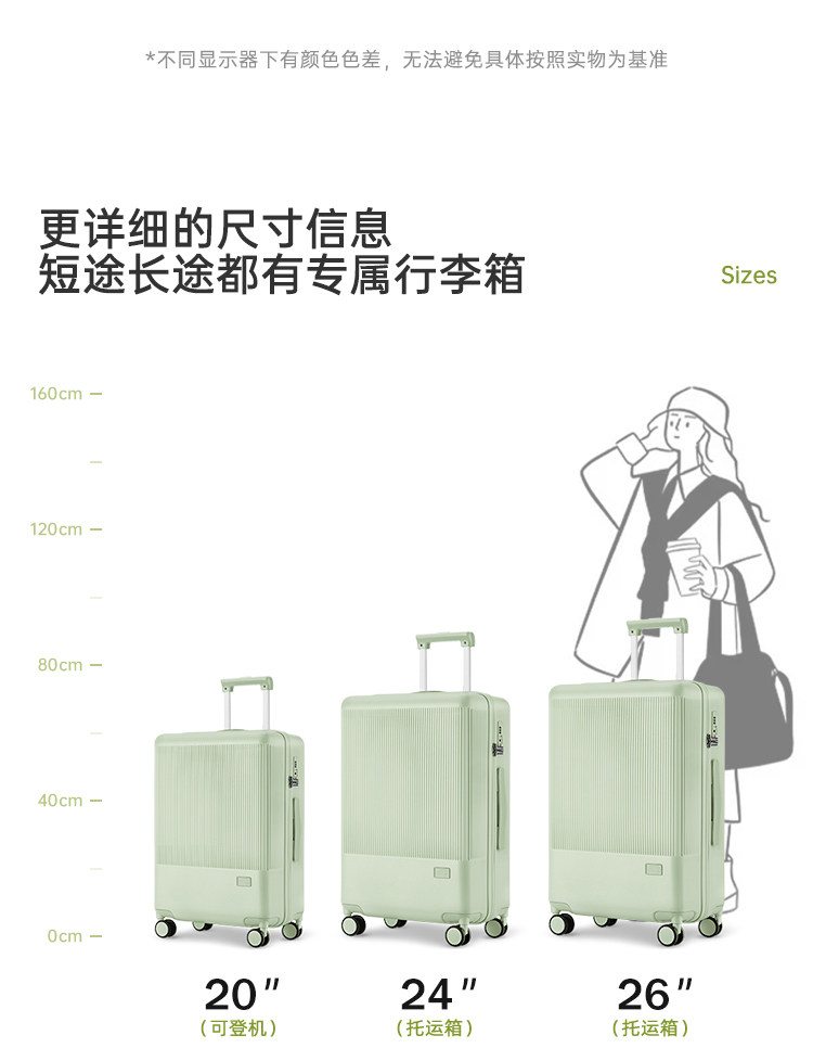 | Size | 20inch (Can Board, Suitable for 3-5 Days of Travel),24inch (Requires Consignment, Suitable for 5-7 Days of Travel),26inch (Requires Shipping; Ideal for Out-Of-State College Students or Trips Lasting Around 10 Days) |