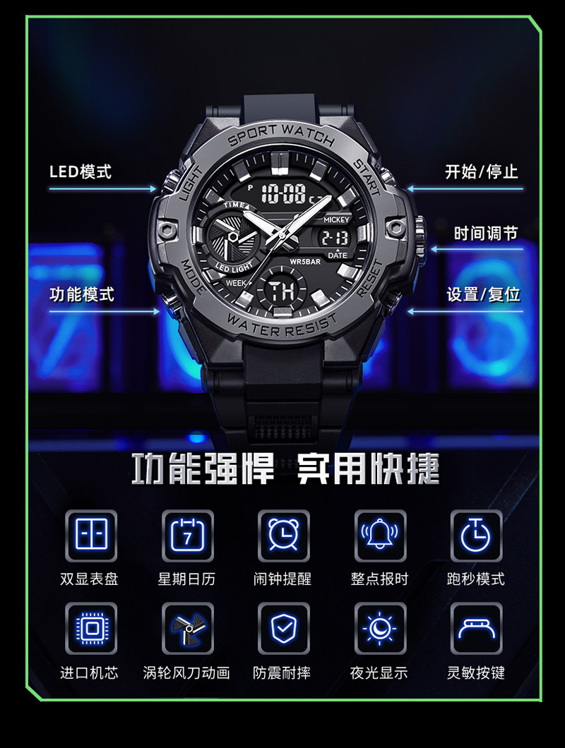 Disney Watch Men's Model for Junior High and High School Students 2025 New Model Youth Boys' Sports Mechanical Electronic Watch