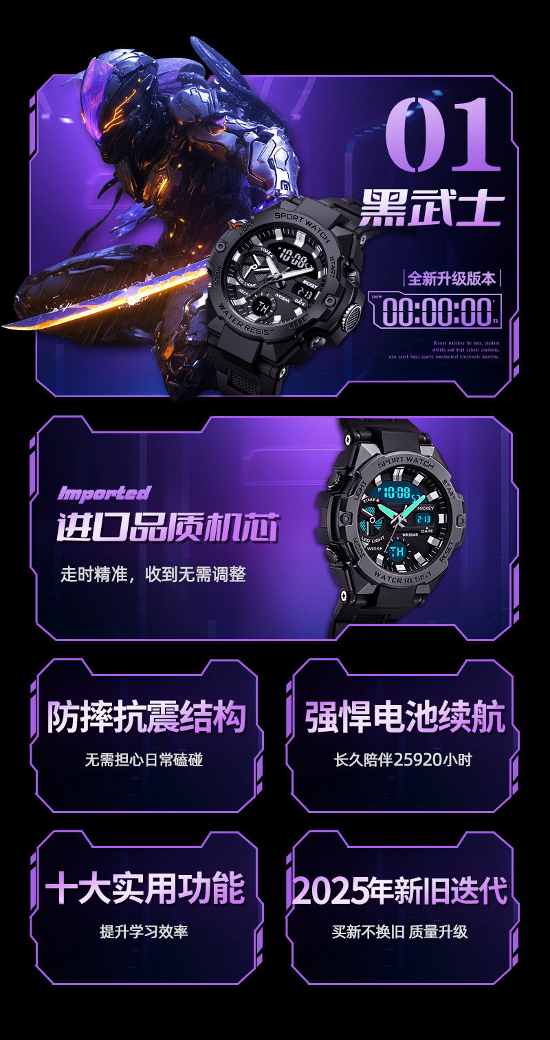 | Color Classification | Officially Authorized by Disney, You Are Guaranteed to Buy Genuine Products,Mechanical Armor-Black [Official Disney Genuine Product],Mechanical Armor-Silver [Metal Appearance, Shock Resistance and Fall Resistance],Mechanical Armor-Black [Free Barbell Bracelet],Mechanical Armor-Silver [Free Barbell Bracelet],Christmas Treat-Dark Warrior [Lucky Gift Box],Christmas Gift - Black and Silver [Lucky Gift Box],Mecha Warrior-Dark Warrior [Anti-Seismic and Fall-Resistant, Luminous and Waterproof],Mecha Warrior-Black and Silver [Shockproof and Fallproof, Luminous and Waterproof],Mecha Warrior - Cool Purple [Shockproof and Fallproof, Luminous and Waterproof],Cyber Technology-Dazzling Color,Cyber Technology-Dark Warrior,Electric Light Colorful - Gradient Purple [Imported Movement, Stable Travel Time],Trendy and Cool Classic-Colorful Black,Trendy and Cool Classic-Obsidian Black,Trendy and Cool Classic-Gradient Purple,Upgraded Version - Colorful Purple [Imported Quality, Stable Performance],Cyber-Colorful,Cyber-Dark Warrior,Trendy Cool-Colorful Black,Cool-Obsidian Black,Trendy Cool - Gradient Purple,Leading the Trend - Cool Black,Leading the Trend - Black Gold,Leading the Trend - Panda Black & White,Marvel Iron Man-Dark Flame [with Step Counting Function],Marvel Iron Man - Fiery Lava [with Step Counting Function],Marvel Iron Man--Dark Night Purple [Genuine Ip Authorization],Marvel Iron Man--Black and Gold [Genuine Ip Authorization],Year of the Dragon Electric Purple [Imported Quality, Stable Performance],Heart of the Ocean - Cool Black Purple [Luminous, Timing, Waterproof, Fall Resistant],Shining Night Series-Dark Warrior [Anti-Seismic, Anti-Fall, Luminous, Waterproof],Yao Ye Series - Black Gold [Shockproof, Drop-Resistant, Luminous, Waterproof],Bright Blade-Dark Warrior [Free Barbell Bracelet],Upgraded Version-Military Green [Imported Quality, Stable Performance],Leading the Trend - Panda Black & White [New for July],2,1,Leading the Trend - Black & White Comic Style [New for July] |
