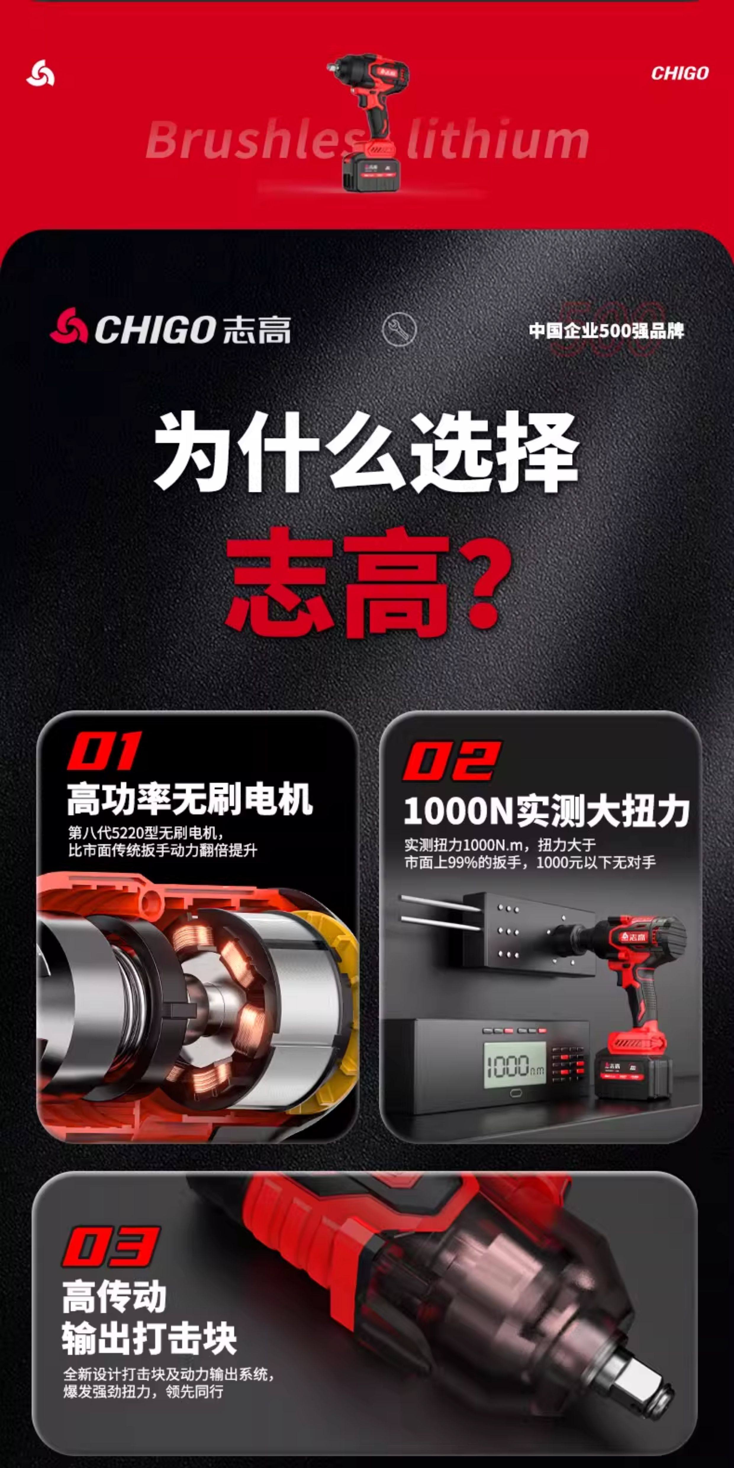 | Color Classification | ✅Buy Genuine and Good Tools, Look for Chigo Stores,✅A Variety of Options, There Is Always One That Suits You,↓↓↓The Following Is a 380N Industrial Grade Wrench,Industrial Grade Brushless Impact Wrench 4.0Ah One Battery + Luxury Gift,Industrial Grade Brushless Impact Wrench 4.0Ah Two Batteries + Luxury Gift,Industrial Grade Brushless Impact Wrench 5.0Ah One Battery + Luxury Gift,Industrial Grade Brushless Impact Wrench 5.0Ah Two Batteries + Luxury Gift,Industrial Grade Brushless Impact Wrench 6.0Ah One Battery + Luxury Gift,Industrial Grade Brushless Impact Wrench 6.0Ah Two Batteries + Luxury Gift,Industrial Grade Brushless Impact Wrench 7.5Ah Battery + Luxury Gift,Industrial Grade Brushless Impact Wrench 7.5Ah Two Batteries + Luxury Gift,↓↓↓The Following Is a 500N Auto Repair Grade Wrench,Automotive Grade Brushless Impact Wrench 4.0Ah One Battery + Luxury Gift,Automotive Grade Brushless Impact Wrench 4.0Ah Two Batteries + Luxury Gift,Automotive Grade Brushless Impact Wrench 5.0Ah One Battery + Luxury Gift,Automotive Grade Brushless Impact Wrench 5.0Ah Two Batteries + Luxury Gift,Automotive Grade Brushless Impact Wrench 6.0Ah One Battery + Luxury Gift,Automotive Grade Brushless Impact Wrench 6.0Ah Two Batteries + Luxury Gift,Automotive Grade Brushless Impact Wrench 7.5Ah Battery + Luxury Gift,Automotive Grade Brushless Impact Wrench 7.5Ah Two Batteries + Luxury Gift,↓↓↓The Following Is a 1000N Heavy-Duty Wrench,Heavy Duty Brushless Impact Wrench 4.0Ah One Battery + Luxury Gift,Heavy Duty Brushless Impact Wrench 4.0Ah Two Batteries + Luxury Gift,Heavy Duty Brushless Impact Wrench 5.0Ah One Battery + Luxury Gift,Heavy Duty Brushless Impact Wrench 5.0Ah Two Batteries + Luxury Gift,Heavy Duty Brushless Impact Wrench 6.0Ah One Battery + Luxury Gift,Heavy Duty Brushless Impact Wrench 6.0Ah Two Batteries + Luxury Gift,Heavy Duty Brushless Impact Wrench 7.5Ah Battery + Luxury Gift,Heavy Duty Brushless Impact Wrench 7.5Ah Two Batteries + Luxury Gift |