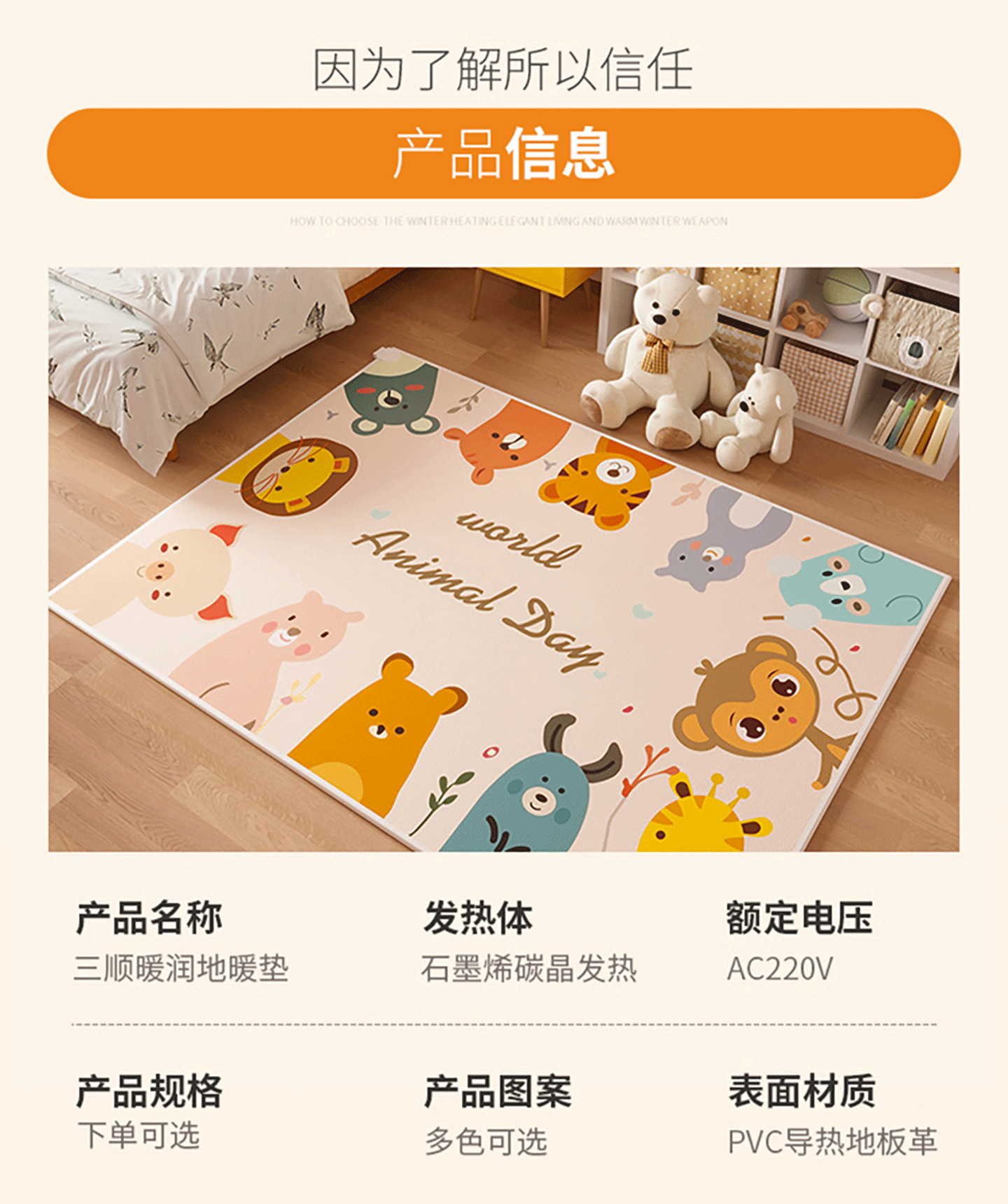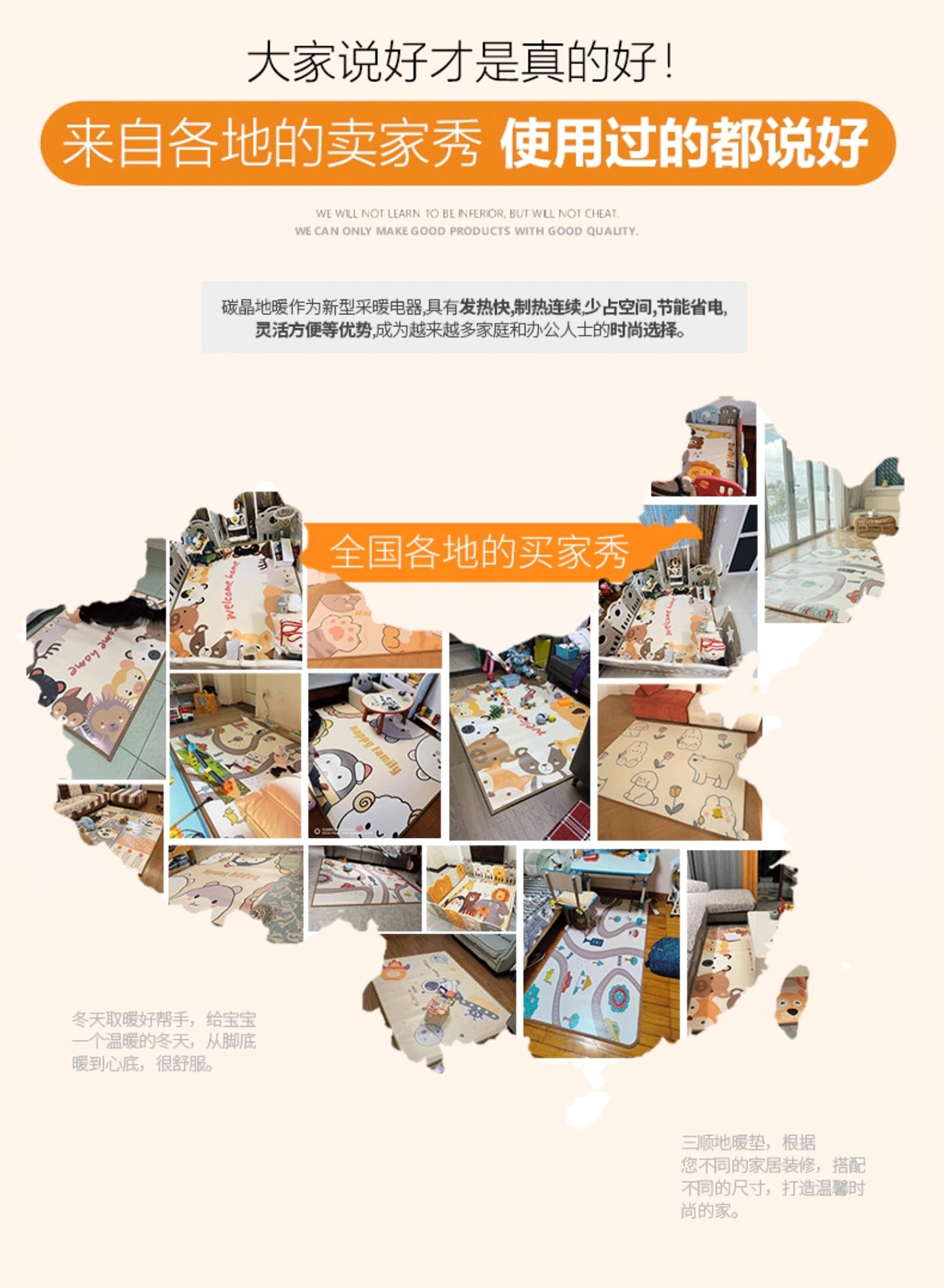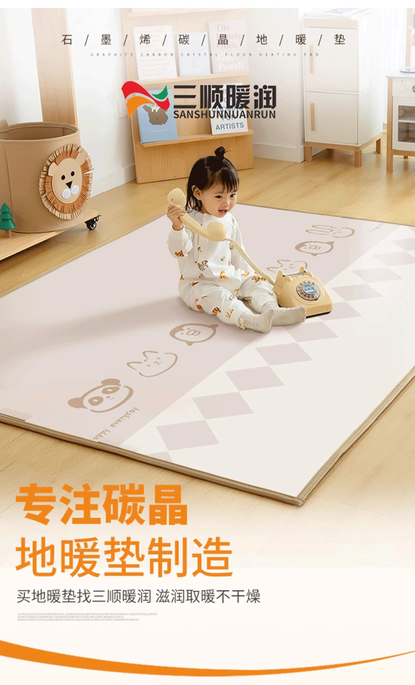 Sanshun Nuanrun 2024 New Cartoon Carbon Crystal Floor Heating Pad Electric Heating Mat Heated Carpet Floor Heating Pad Graphene