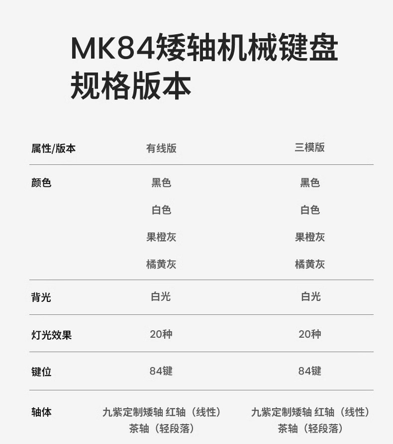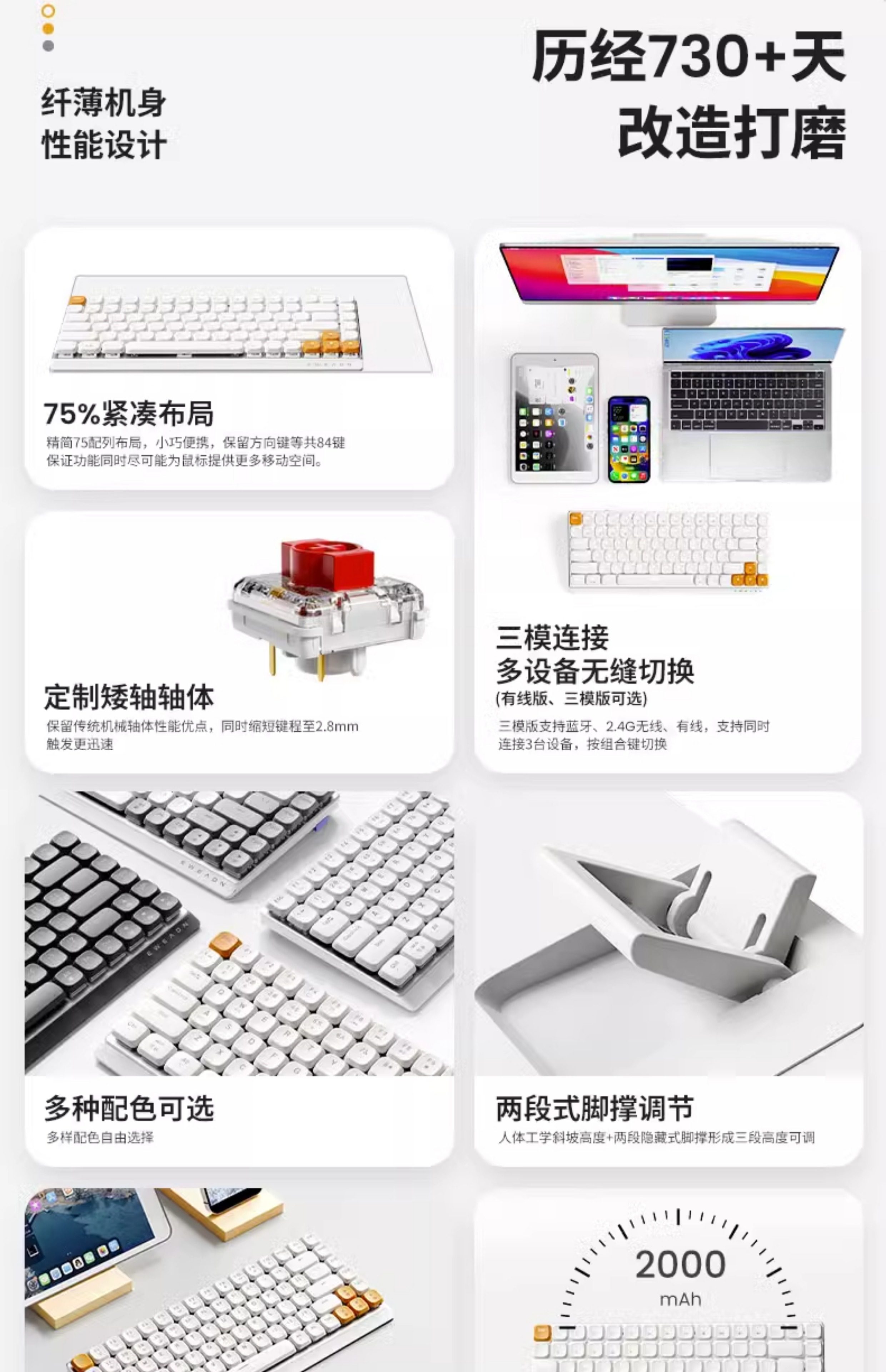 | Color Classification | Jade Fat White-Low Axis Wired White Light,Jade White - Low Profile Wired White Light Mechanical Keyboard + Wired Mouse,Cream Orange-Low Axis Wired White Light,Cream Orange-Low Axis Wired White Light + Wired Mouse,Moon Rock Gray-Low Axis Wired White Light,Moon Rock Gray - Low Profile Wired White Light Mechanical Keyboard + Wired Mouse,Jade White - Low Profile Wireless Tri-Mode White Light,Jade White - Low Profile Wireless Tri-Mode White Light Mechanical Keyboard + Wireless Bluetooth Mouse,Moon Rock Gray-Low Axis Wireless Three-Mode White Light,Moon Rock Gray - Low Profile Wireless Tri-Mode White Light Mechanical Keyboard + Wireless Bluetooth Mouse |