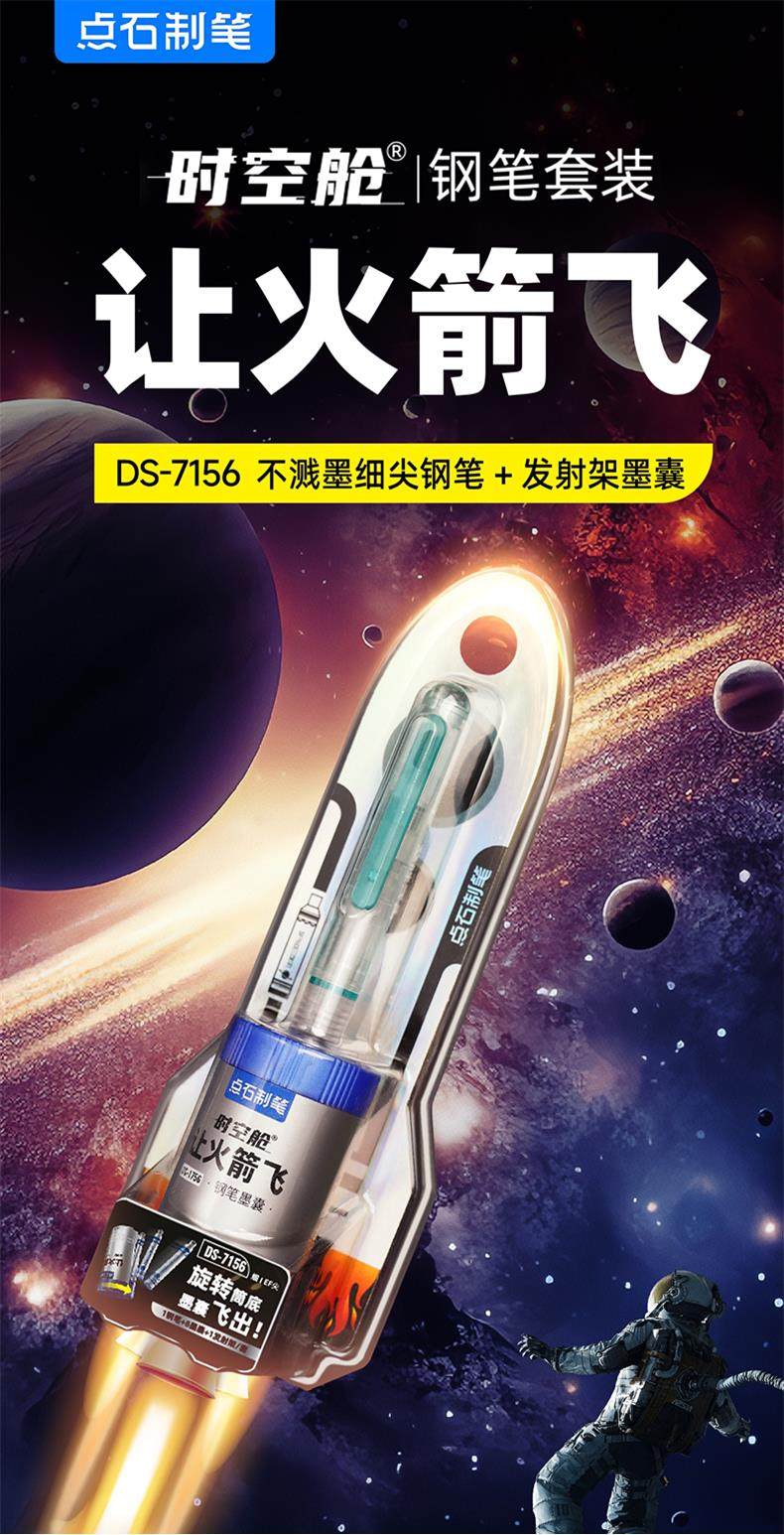 Dianshi Pen Time Capsule Allows Rockets to Fly, Erasable Fountain Pen for Elementary School Students, Third Grade Handwriting Practice, Non-Thermal Erasable Ink Cartridge, Dianshi Official Flagship Store Same Model, High Appearance Value, Boys' Dark Tip