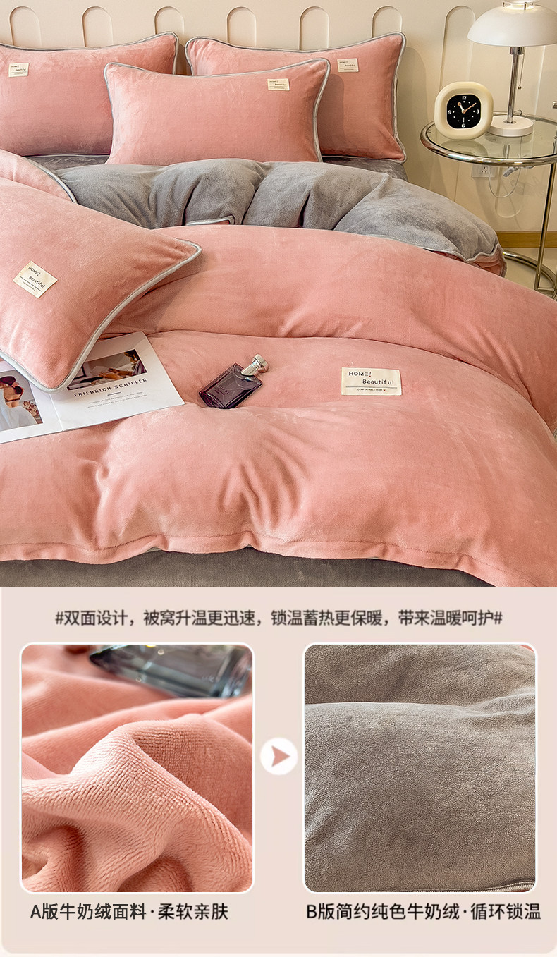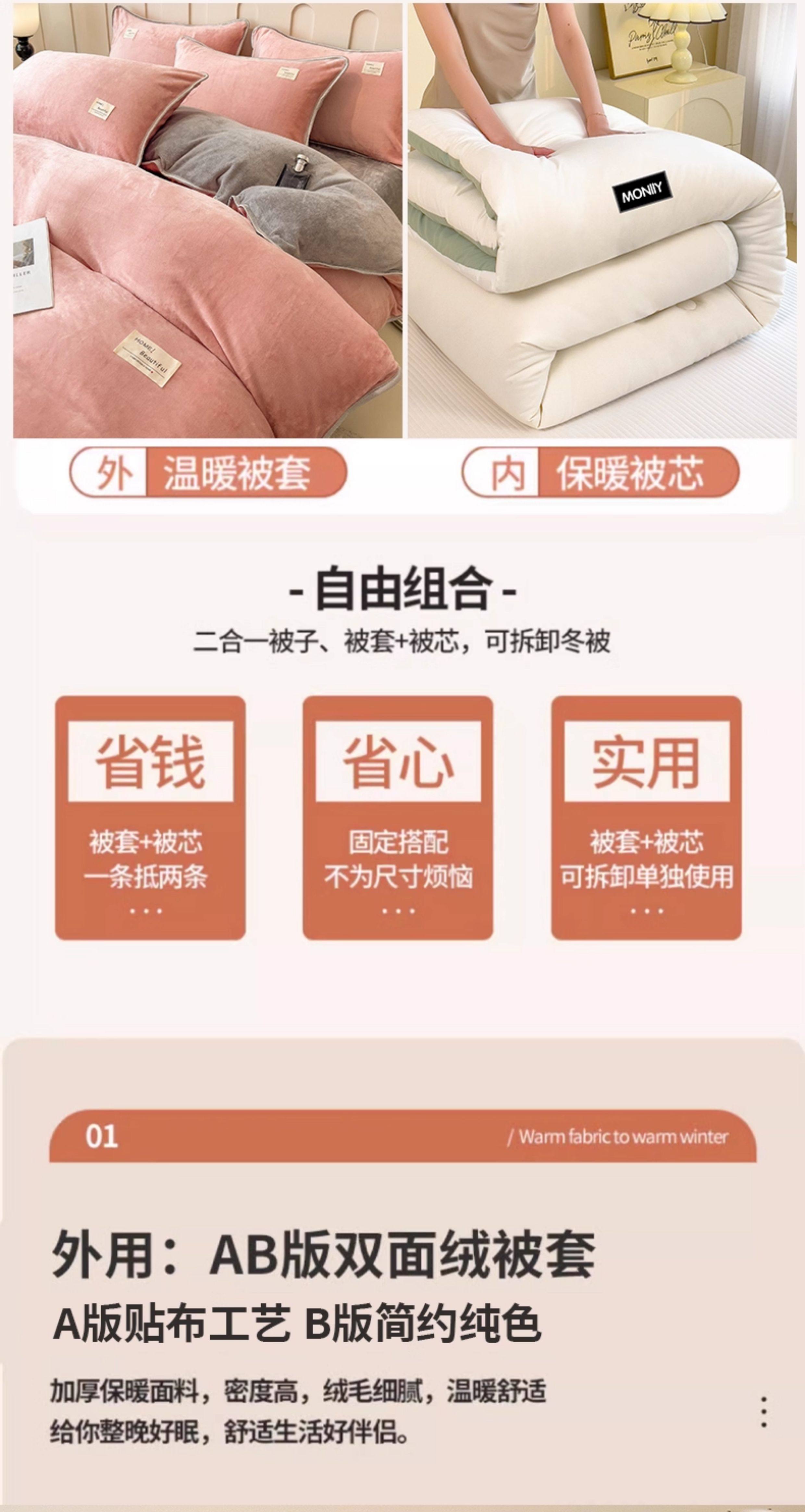 Milk Velvet Quilt Set, Complete Set of Coral Velvet Quilt Core and Cover, Integrated Cotton Quilt, Winter Quilt, Thickened Bedding