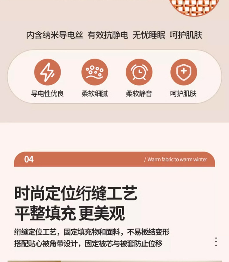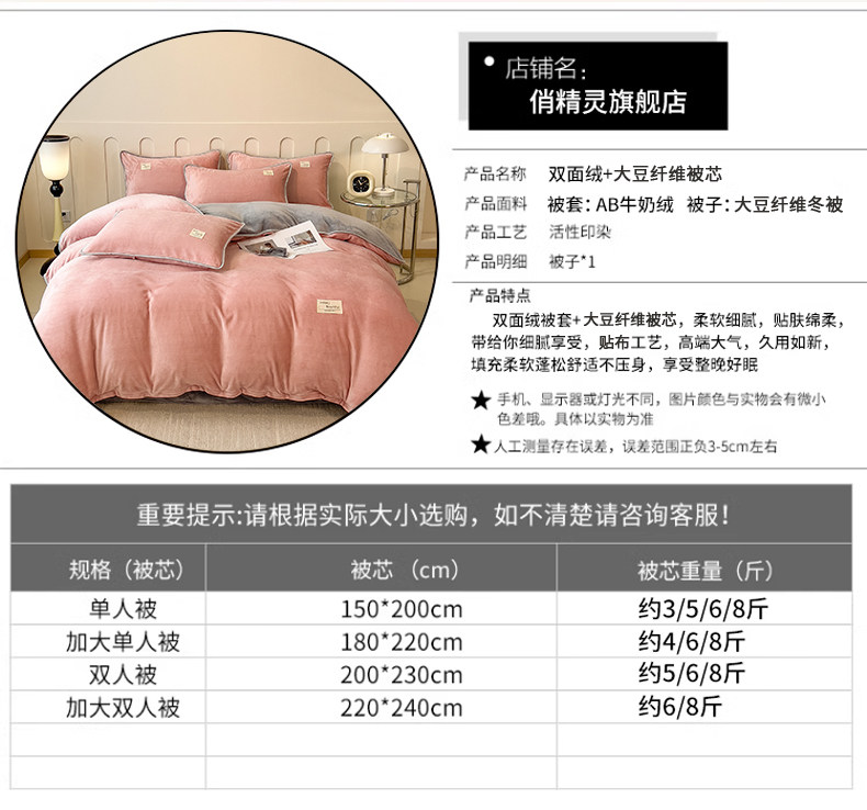 | Size | 150x200cm[Detachable Quilt Cover + 1.5kg Soybean Quilt Core],150x200cm[Detachable Quilt Cover + 2kg Soybean Quilt Core],150x200cm[Detachable Quilt Cover + 2.5kg Soybean Quilt Core],150x200cm[Detachable Quilt Cover + 3kg Soybean Quilt Core],150x200cm[Detachable Quilt Cover + 4kg Soybean Quilt Core],180x220cm[Detachable Quilt Cover + 2kg Soybean Quilt Core],180x220cm[Detachable Quilt Cover + 3kg Soybean Quilt Core],180x220cm[Detachable Quilt Cover + 4kg Soybean Quilt Core],200x230cm[Detachable Quilt Cover + 3kg Soybean Quilt Core],200x230cm[Detachable Quilt Cover + 4kg Soybean Quilt Core],200x230cm[Detachable Quilt Cover + 5kg Soybean Quilt Core],220x240cm[Detachable Quilt Cover + 3kg Soybean Quilt Core],220x240cm[Detachable Quilt Cover + 4kg Soybean Quilt Core],220x240cm[Detachable Quilt Cover + 5kg Quilt Core],——The Following Is a Four-Piece Set + Quilt Core——,1.2m Bed Four-Piece Set[Duvet Cover + Soybean Fiber Duvet Insert + Bed Sheet + Pillowcase (Single)],1.2m Bed Four-Piece Set[Duvet Cover + Soybean Fiber Duvet Insert + Bed Sheet + Pillowcase (Single)],1.2m Bed Four-Piece Set[Duvet Cover + Soybean Fiber Duvet Insert + Bed Sheet + Pillowcase (Single)],1.2m Bed Four-Piece Set[Duvet Cover + Soybean Fiber Duvet Insert + Bed Sheet + Pillowcase (Single)],1.5/1.8m Bed Five-Piece Set[Duvet Cover + Soybean Fiber Duvet Insert + Bed Sheet + Pillowcases (Set of 2)],1.5/1.8m Bed Five-Piece Set[Duvet Cover + Soybean Fiber Duvet Insert + Bed Sheet + Pillowcases (Set of 2)],1.5/1.8m Bed Five-Piece Set[Duvet Cover + Soybean Fiber Duvet Insert + Bed Sheet + Pillowcases (Set of 2)],2.0m Bed Five-Piece Set[Duvet Cover + Soybean Fiber Duvet Insert + Bed Sheet + Pillowcases (Set of 2)],2.0m Bed Five-Piece Set[Duvet Cover + Soybean Fiber Duvet Insert + Bed Sheet + Pillowcases (Set of 2)],2.0m Bed Five-Piece Set[Duvet Cover + Soybean Fiber Duvet Insert + Bed Sheet + Pillowcases (Set of 2)] |