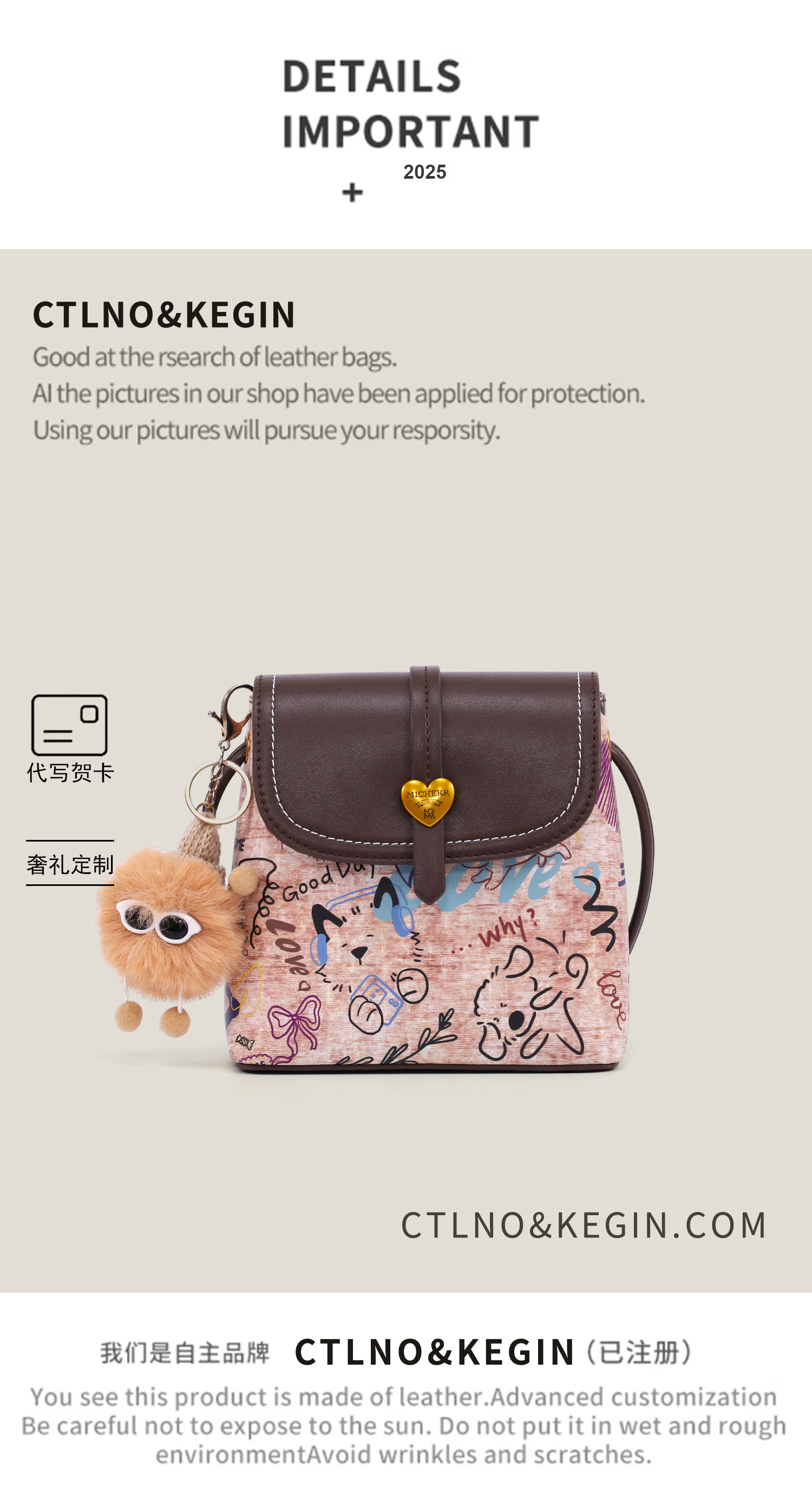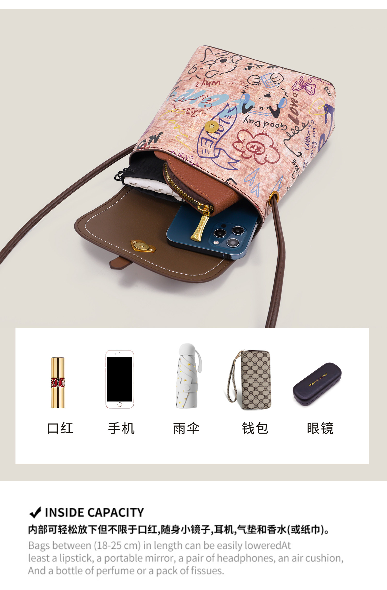 Ctlno&Kegin Original Graffiti Design Stylish Small Square Bag for Women, Super Popular Casual Crossbody Phone Bag