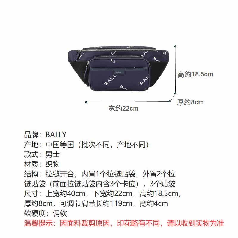 Bally Men's Bag Code Series Fabric Waist Bag Chest Bag Crossbody Bag Code Belt Bag