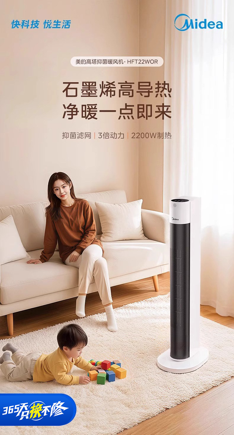 Midea Heater Oil-Filled Electric Heater for Whole House Large Area Small Sun Electric Heater Graphene 2024 New Model