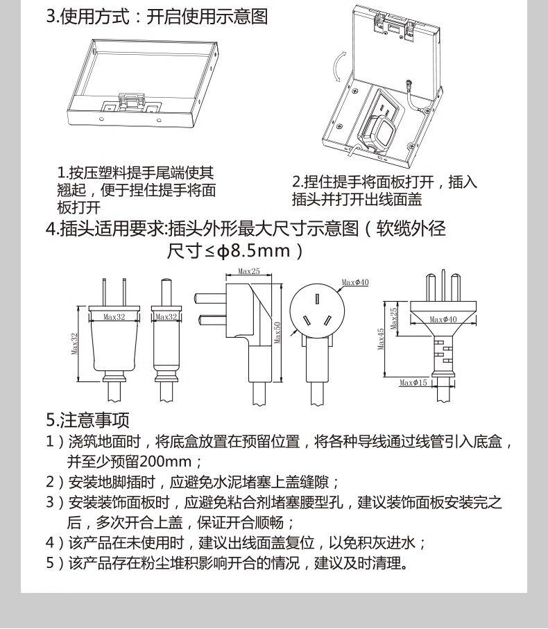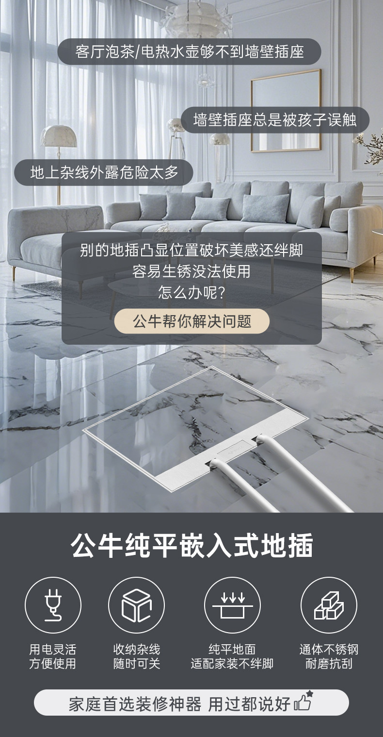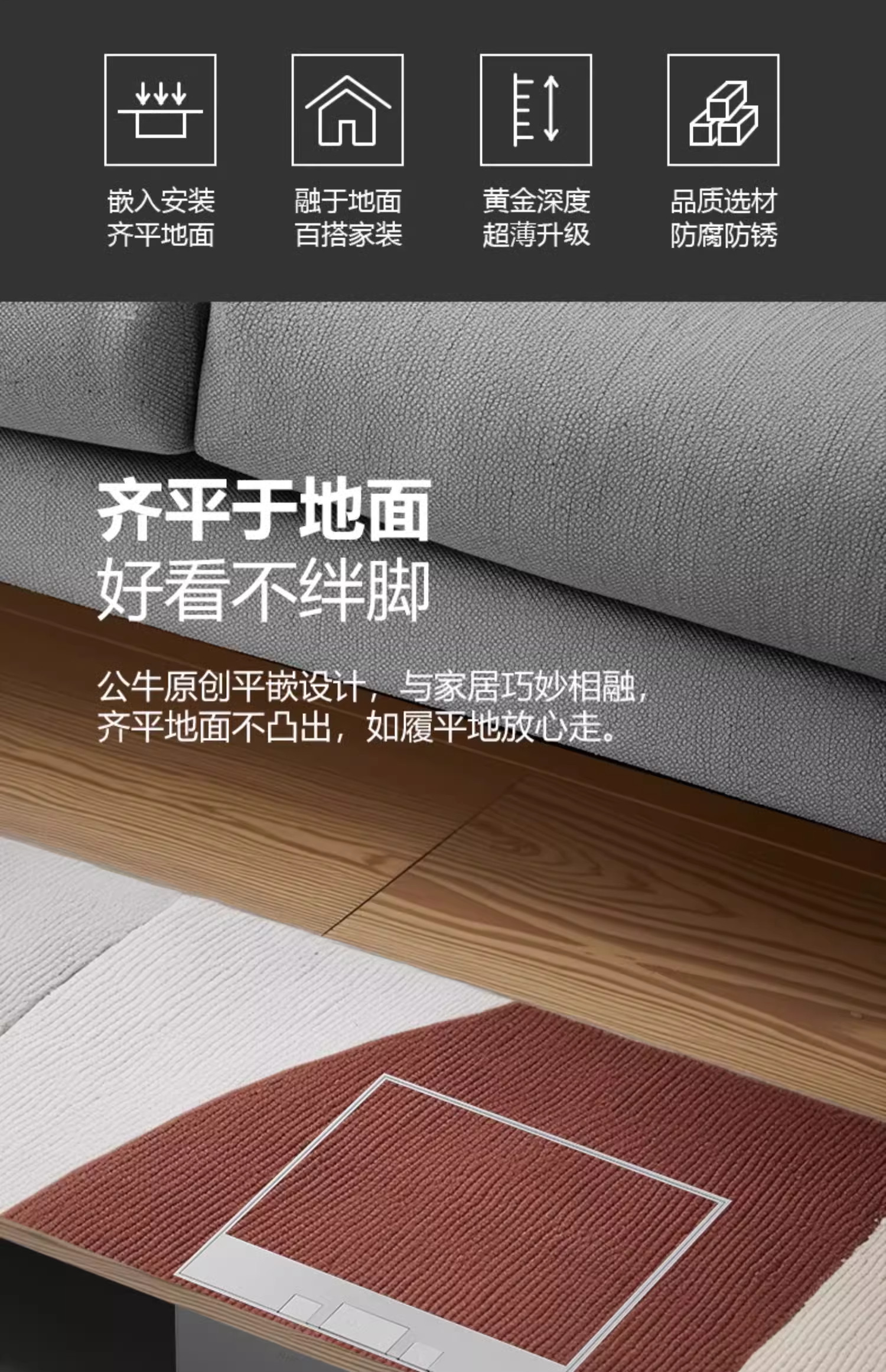 Bull Floor Socket Invisible Embedded Hidden Floor Flat Surface Home Decoration Ultra-Thin Drainage Concealed Installation