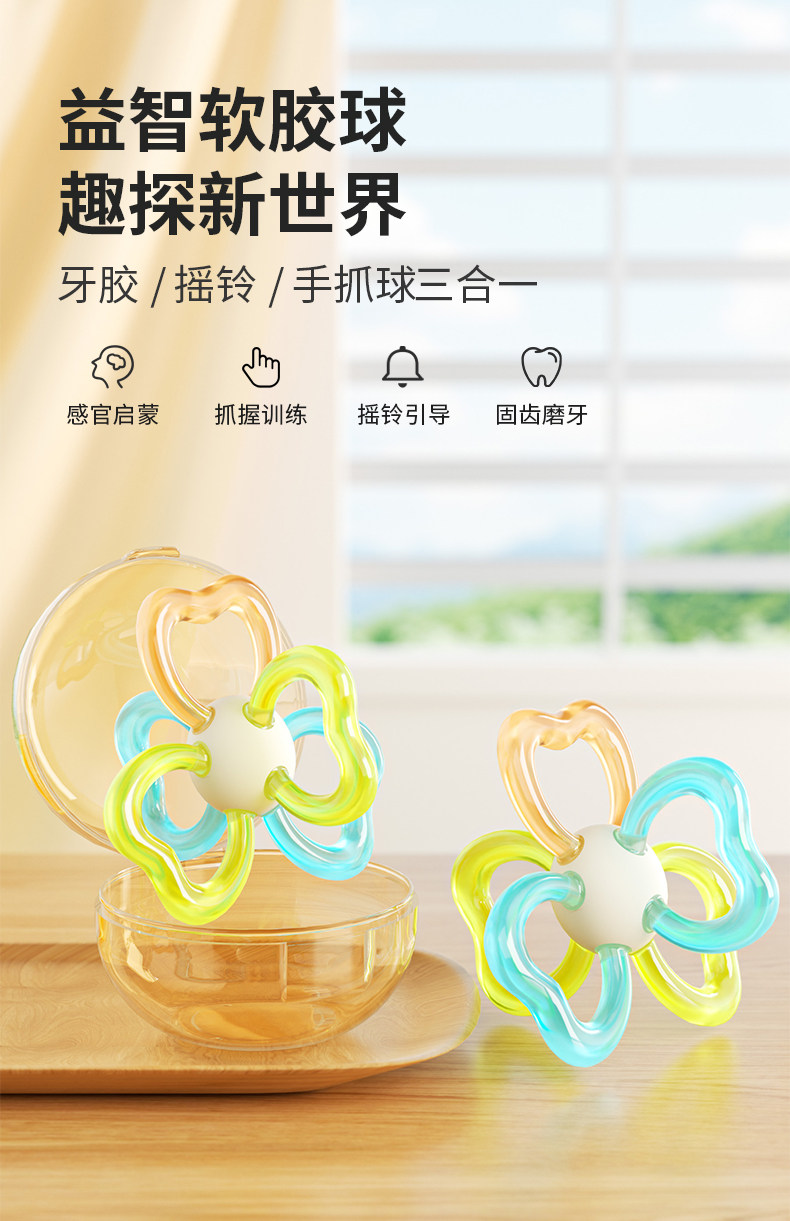 Manhattan Baby Hand Grasping Ball, Teething Toy for Infants in the Oral Stage, Chewable and Gripable, Educational Early Learning Teething Stick for Babies