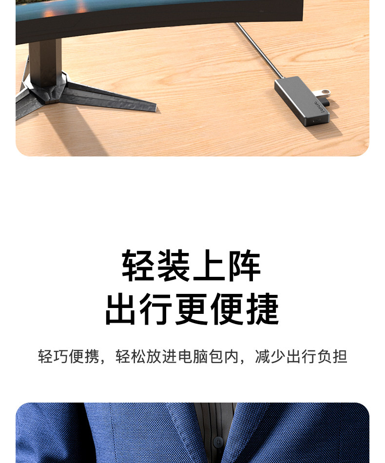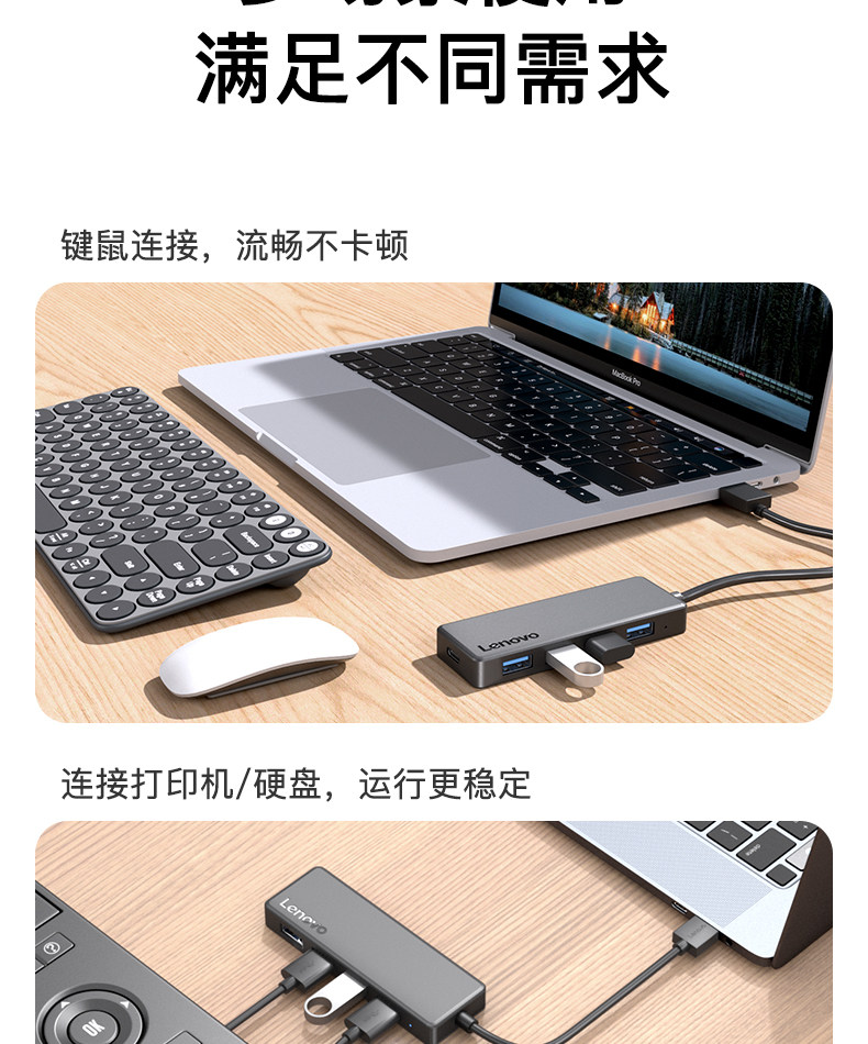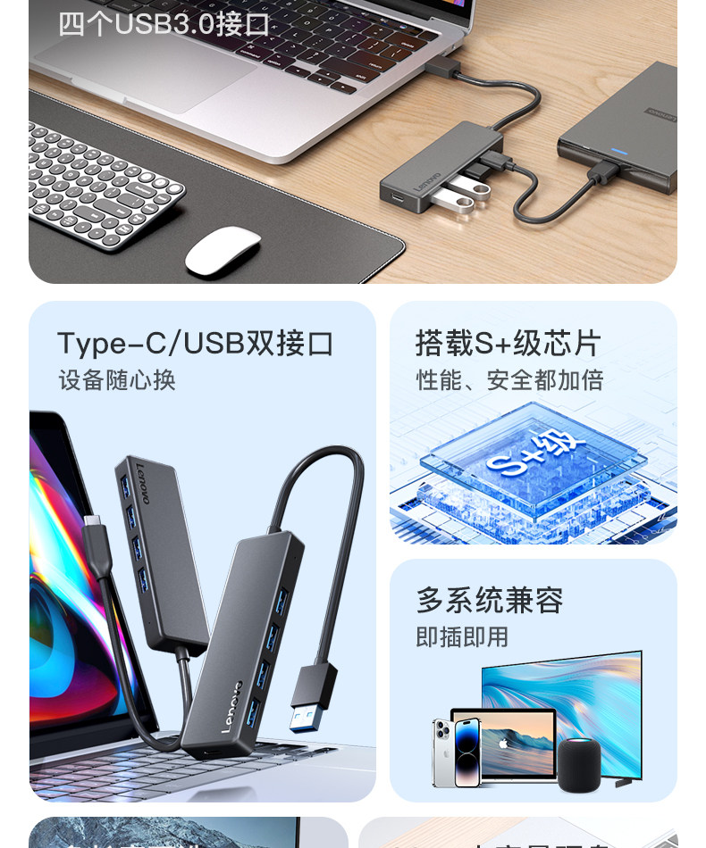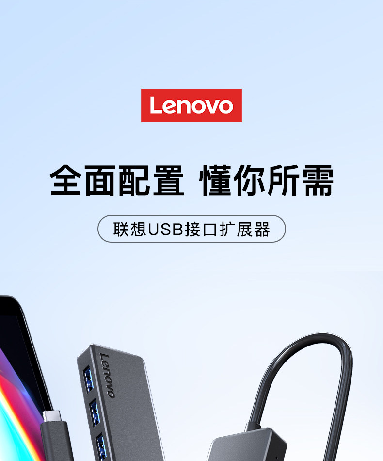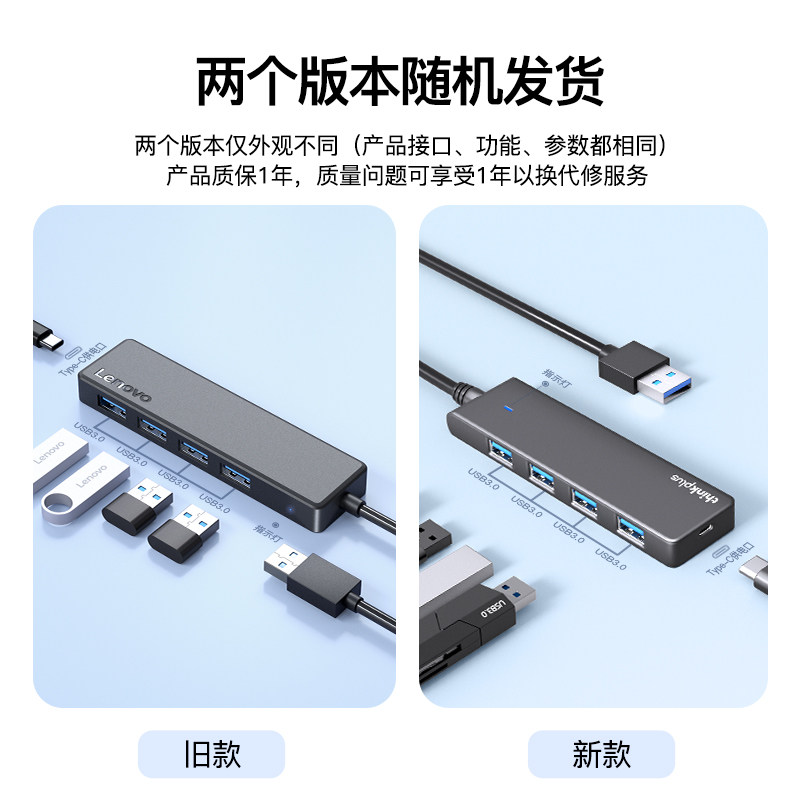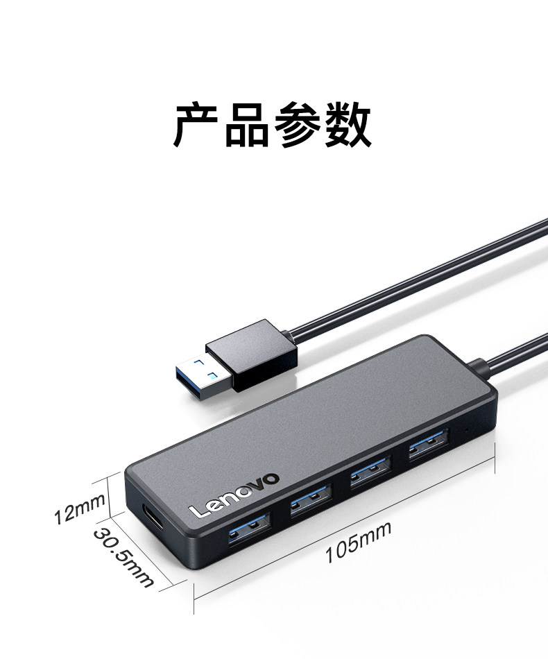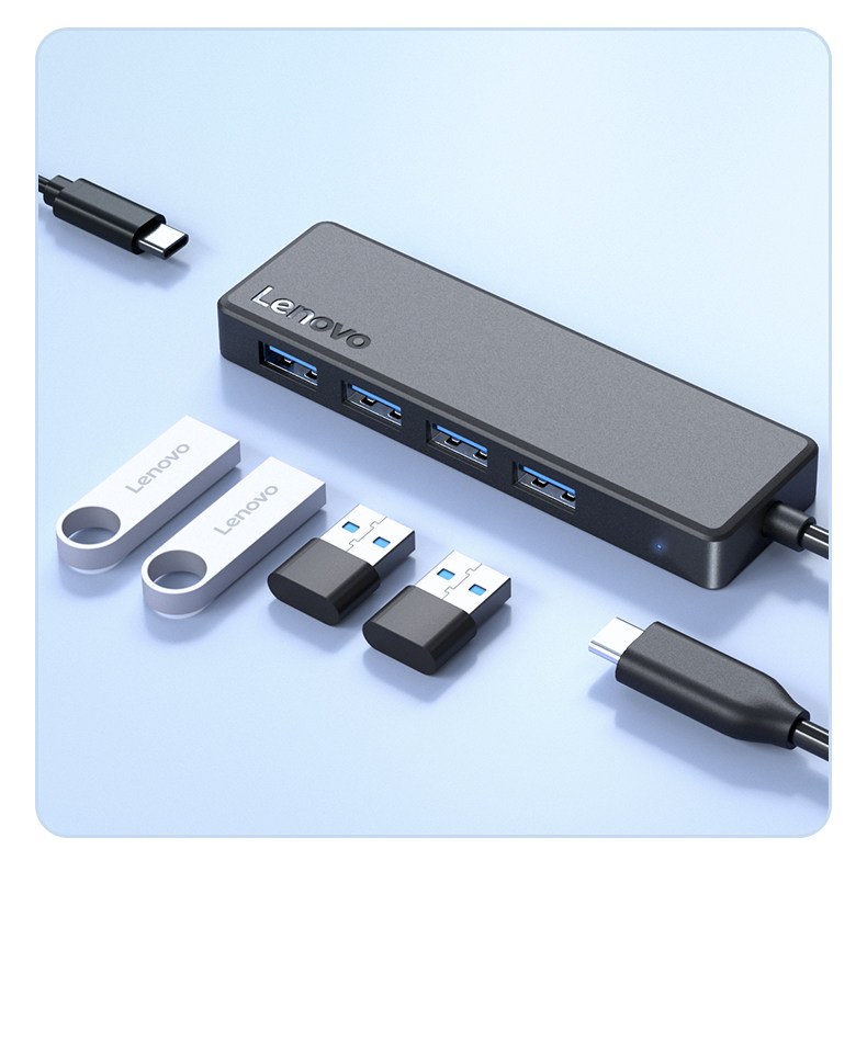 Lenovo USB Hub 3.0 Multi-Port Splitter Adapter Type-C Extender Suitable for Apple Mac Huawei Xiaomi Laptops Desktop Multi-Interface Extension Hub