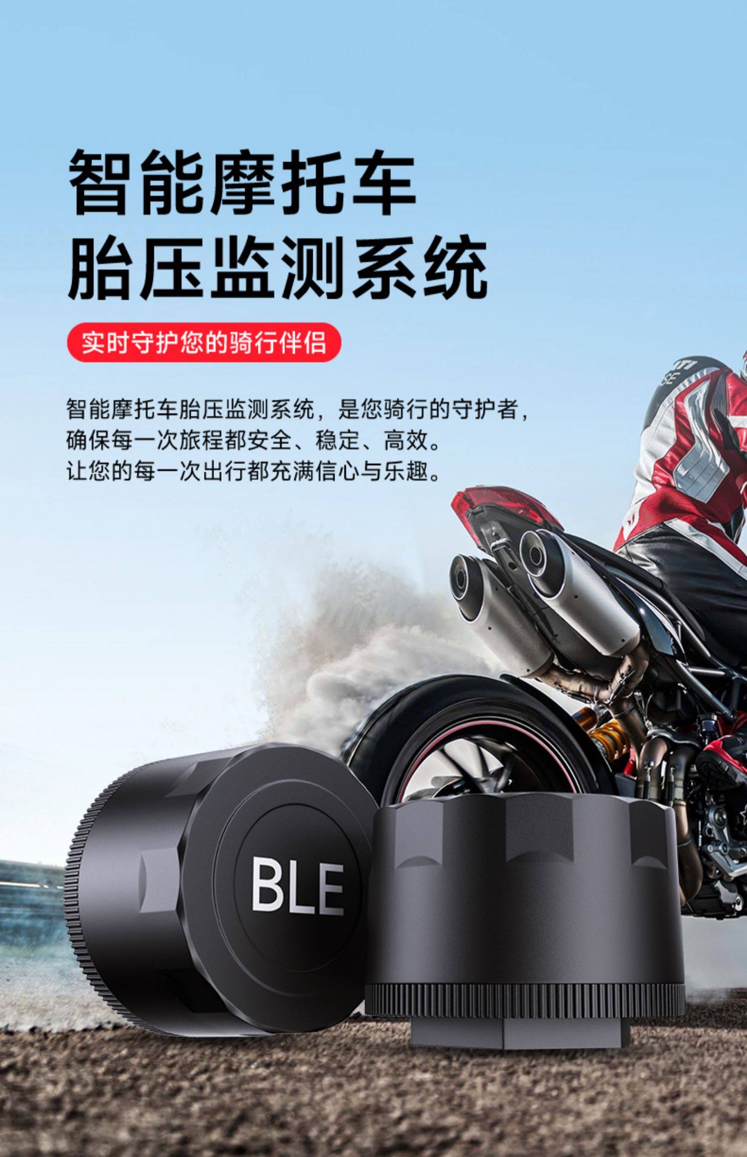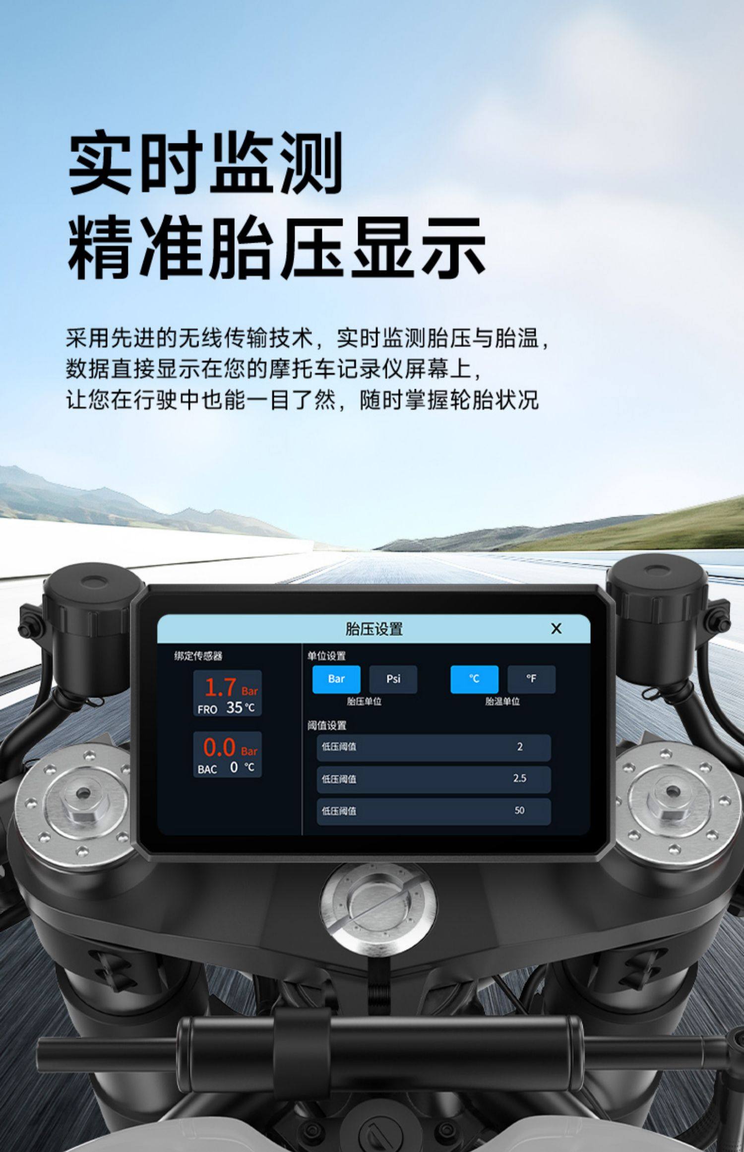 Shengpai Motorcycle Driving Recorder, Electric Vehicle-Specific Bluetooth Wireless External Tire Pressure Monitor with Abnormal Warning