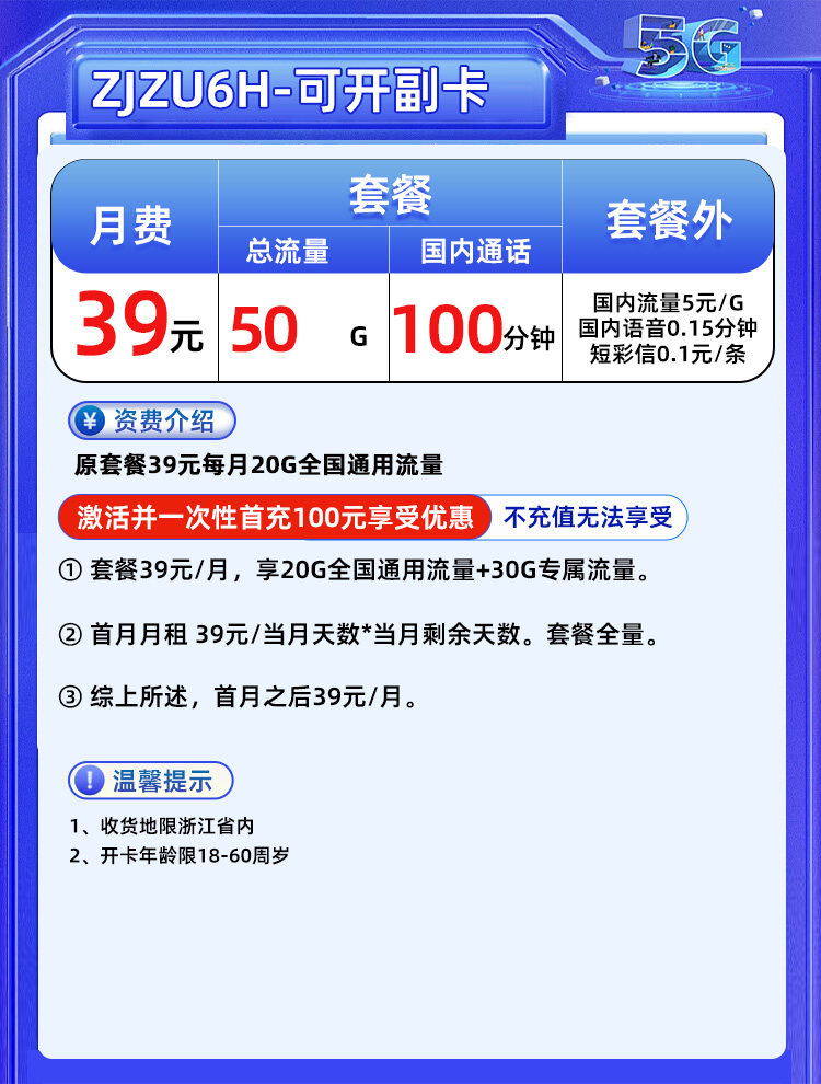 | Package | Only Zhejiang Zjzu6H Card Is Issued 39 Yuan/Month 50g,Only Zhejiang Zjzu6H Card Is Issued 39 Yuan/Month 50g1 |