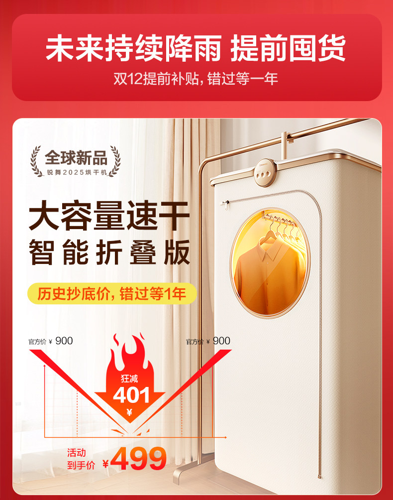 Ruiwu Portable Small Household Clothes Dryer for Baby Clothes 2025 Foldable Travel Dormitory Sterilization