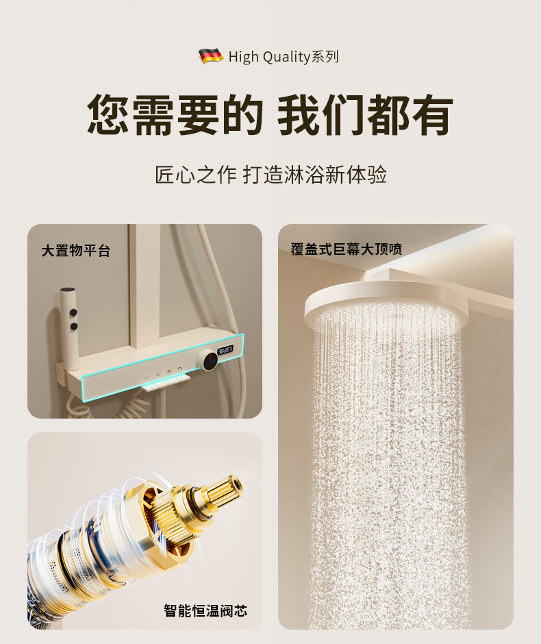 Authentic Cream-Colored Shower Set, White Thermostatic Showerhead, Household Rain Shower, Bathroom Showerhead