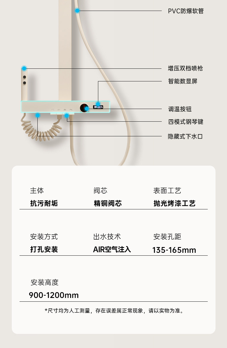 | Color Classification | Cream White (Piano Finish/Square Shower Head) Hot & Cold Water,Cream White (Piano Finish/Square Shower Head) Thermostatic Model,Cream White (Piano Digital Display Model/Square Shower Head) Hot and Cold Version,Cream White (Piano Digital Display Model/Square Shower Head) Thermostatic Model,Cream Style (Extra Large Platform + Digital Display + Ambient Light + Round Tube) Constant Temperature Model,Cream Style (Extra Large Platform + Digital Display + Ambient Light + Square Tube) Hot and Cold Style,Cream Style (Extra Large Platform + Digital Display + Ambient Light + Square Tube) Constant Temperature Model,Gunmetal Gray (Extra-Large Platform + Digital Display + Ambient Lighting + Round Tube) Constant Temperature Model,Gunmetal Gray (Extra-Large Platform + Digital Display + Ambient Lighting + Square Tube) Hot & Cold Model,Gunmetal Gray (Extra-Large Platform + Digital Display + Ambient Lighting + Square Tube) Constant Temperature Model,Gun Ash[Pvd Water Plating + Digital Display + Ambient Light + Square Tube]Hot and Cold Styles,Milky White[Pvd Water Plating + Digital Display + Ambient Light + Square Tube]Hot and Cold Styles,Gun Ash[Pvd Water Plating + Digital Display + Ambient Light + Square Tube]Constant Temperature Model,Milky White[Pvd Water Plating + Digital Display + Ambient Light + Square Tube]Constant Temperature Model,Gun Ash[Extra Large All-Copper Platform + Ambient Light + Digital Temperature Control + Square Tube]Hot and Cold Styles,Milk White[Extra Large All-Copper Platform + Ambient Light + Digital Temperature Control + Square Tube]Hot and Cold Styles,Gun Ash[Extra Large All-Copper Platform + Ambient Light + Digital Temperature Control + Square Tube]Constant Temperature Model,Milk White[Extra Large All-Copper Platform + Ambient Light + Digital Temperature Control + Square Tube]Constant Temperature Model |