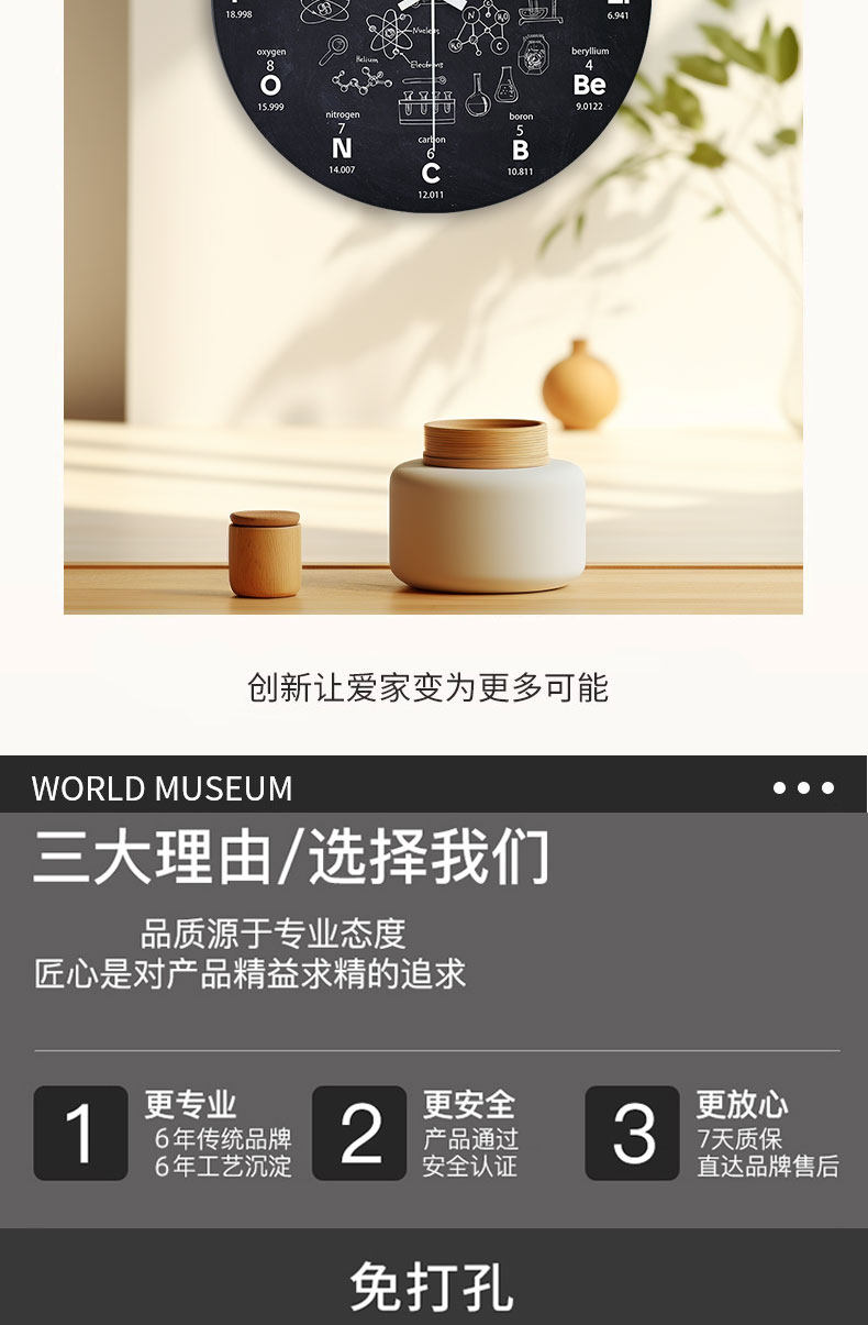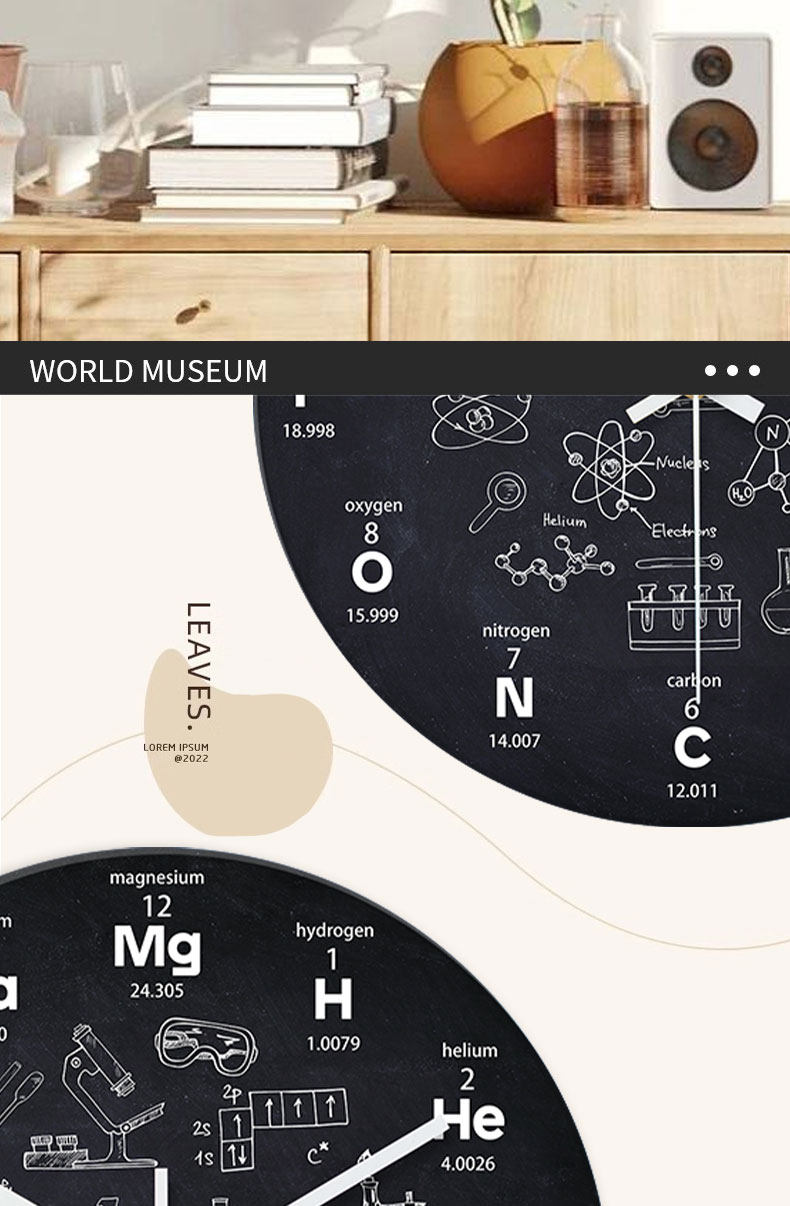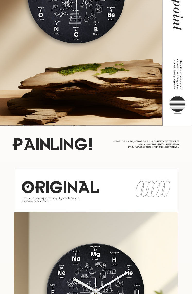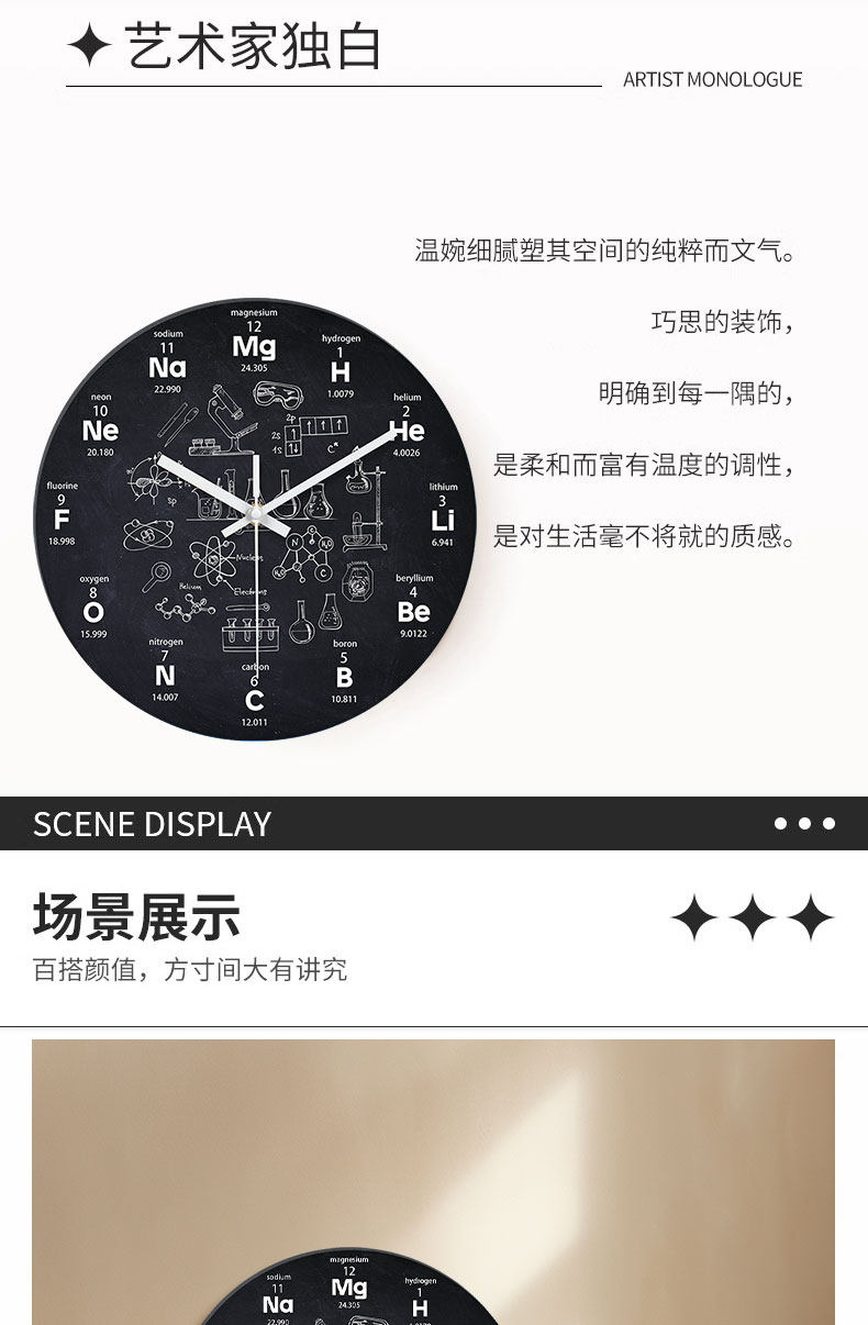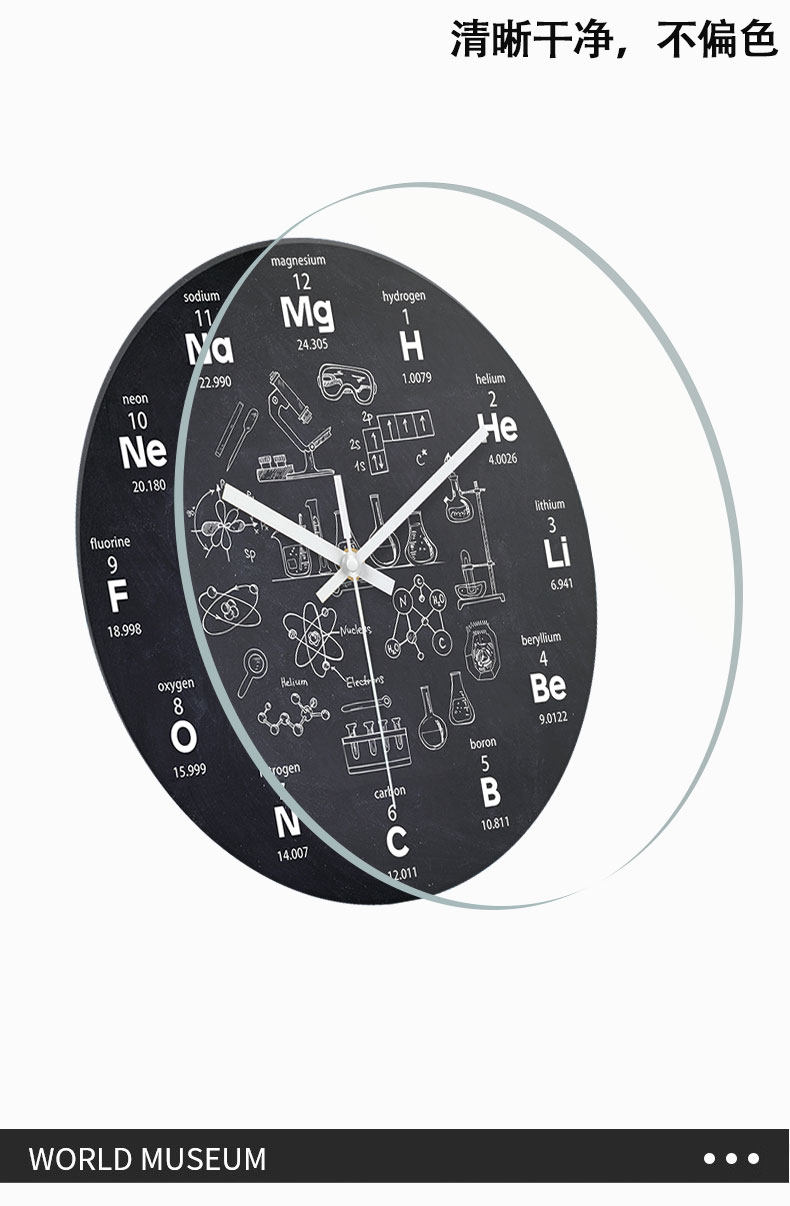 Home Chemistry Digital Wall Clock, Study Silent Clock, Periodic Table, Punch-Free, Theory of Relativity Formula, Glass Clock