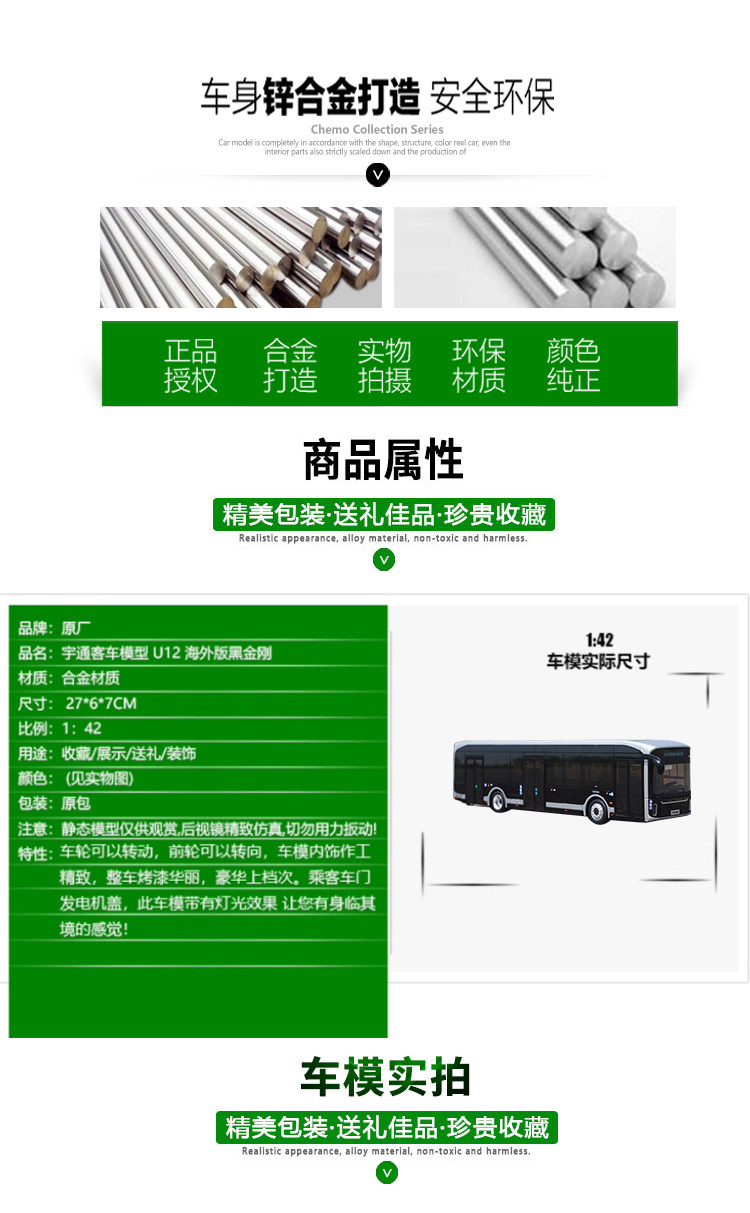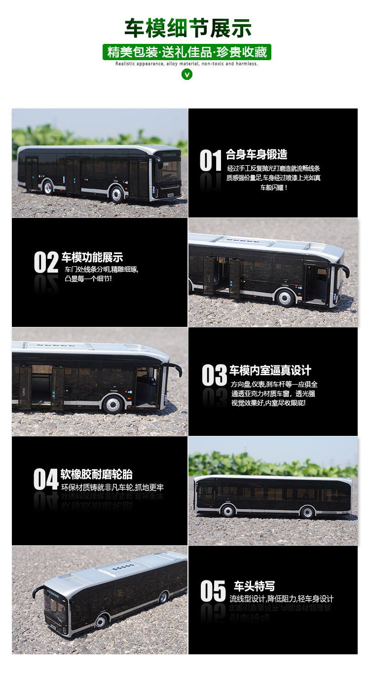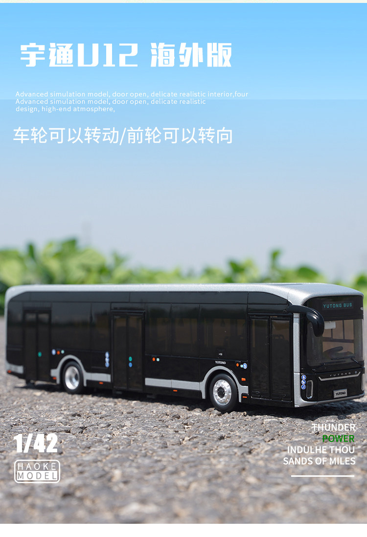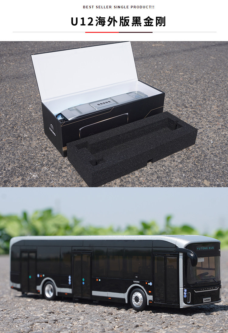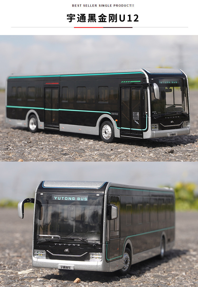 1:42 Yutong Bus Model U12 Overseas Version Black King Kong Model Bus Pure Electric Bus Alloy Car Model