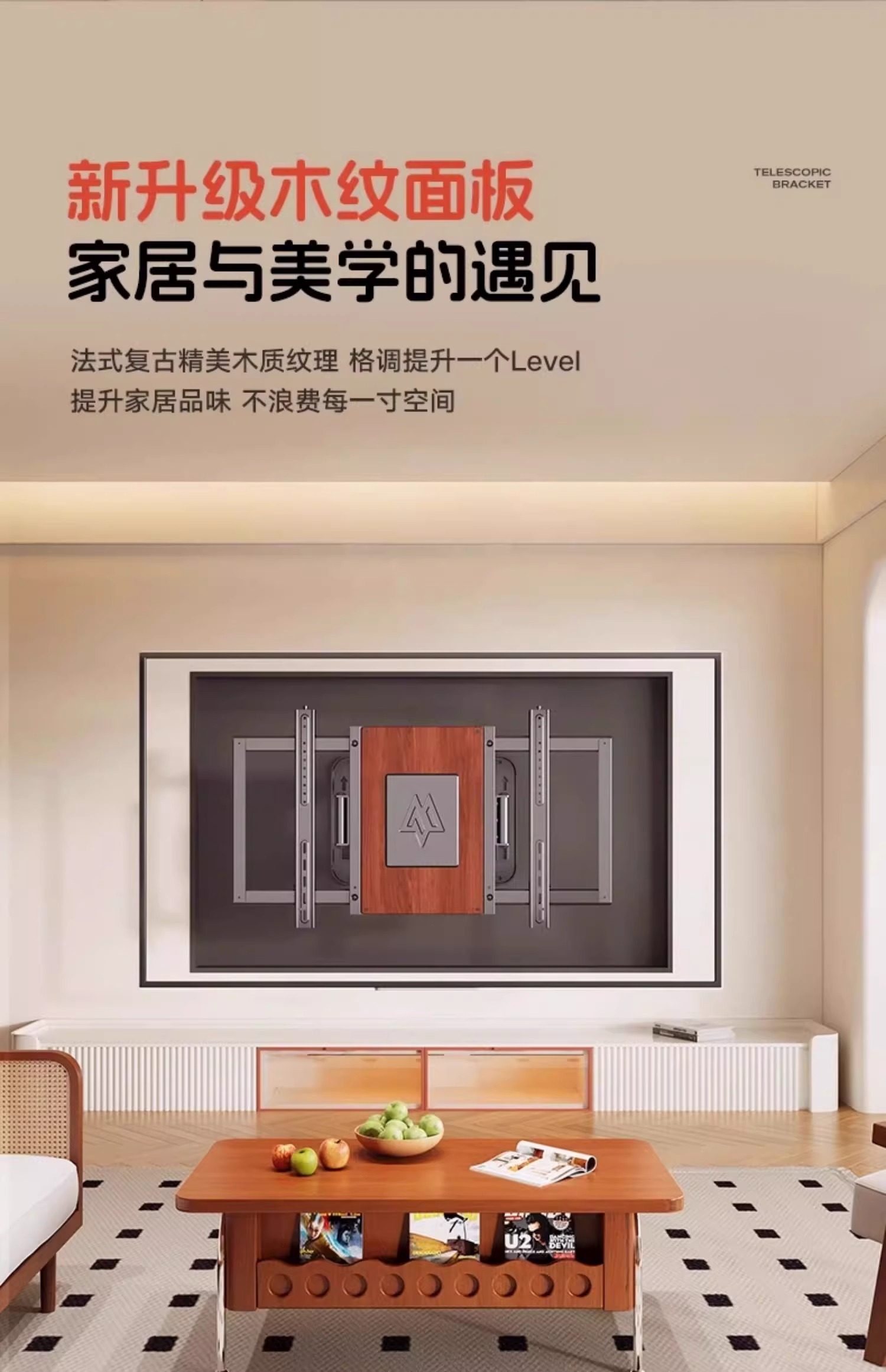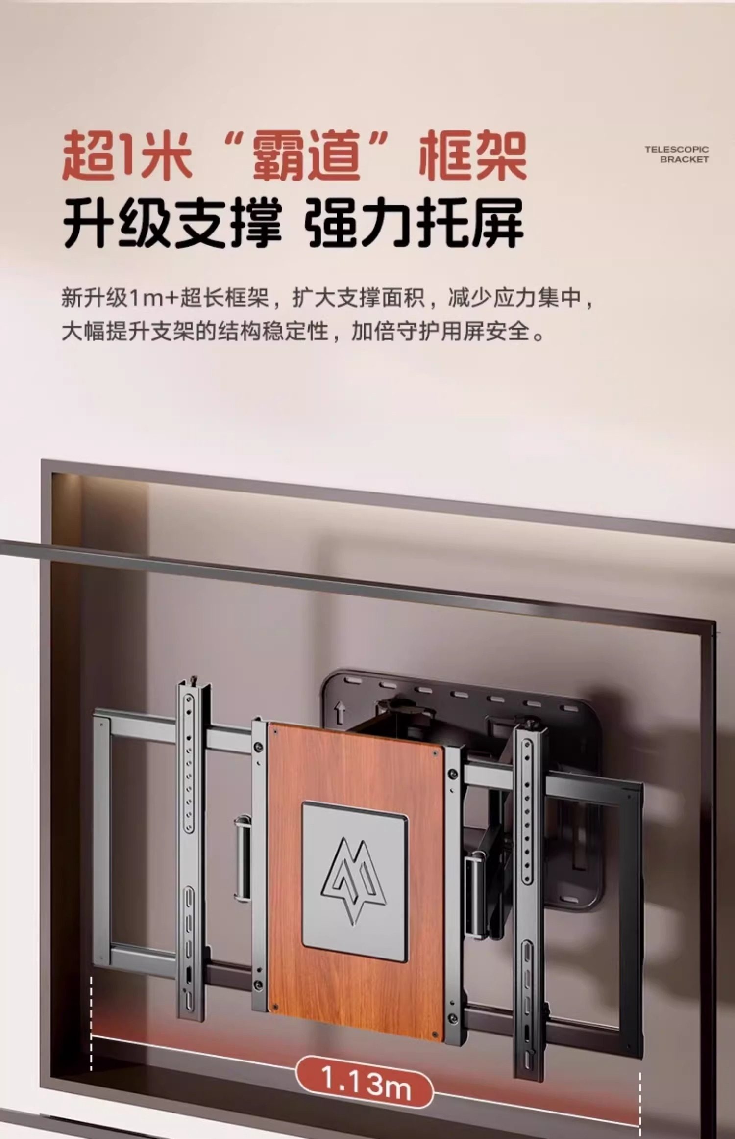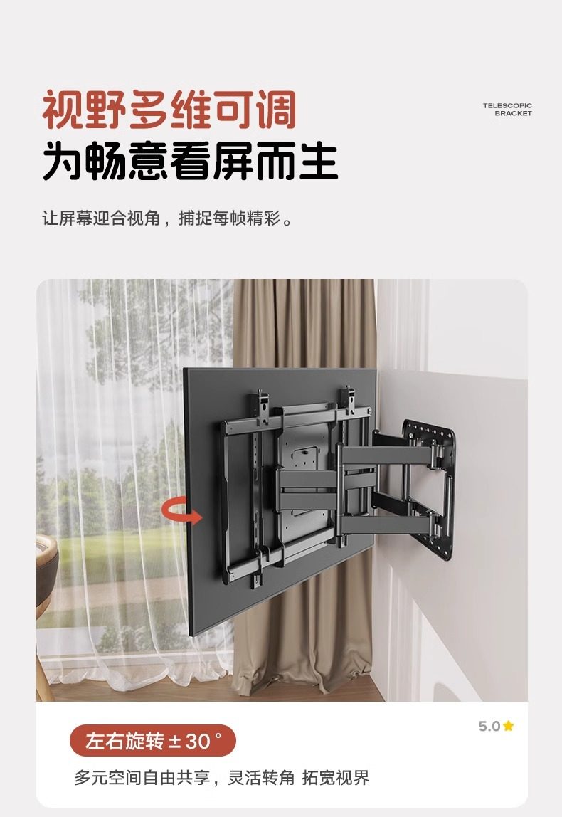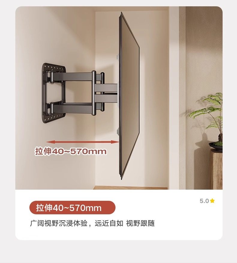 Ultra-Thin Large-Screen Tv Telescopic Rack Wall-Mounted Rotating Bracket Upgraded Classy Wood Grain Built-In Ultra-Stable Bracket