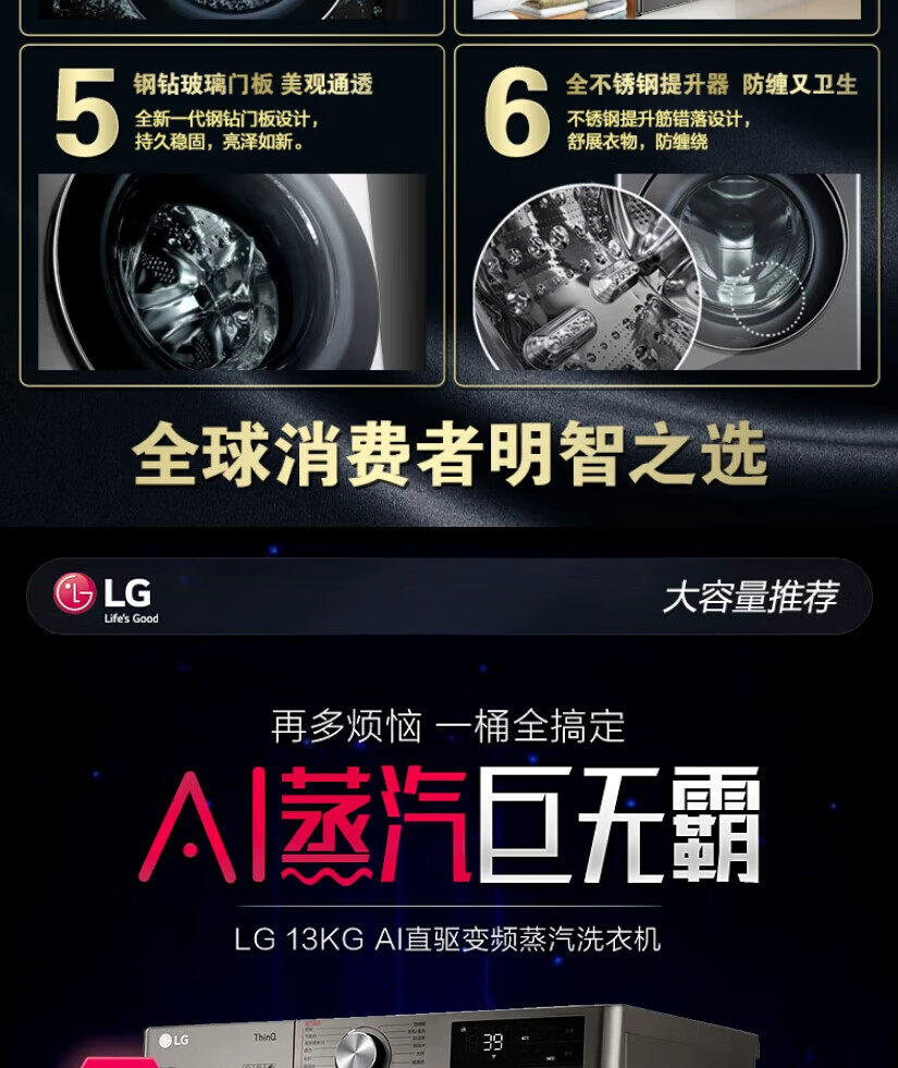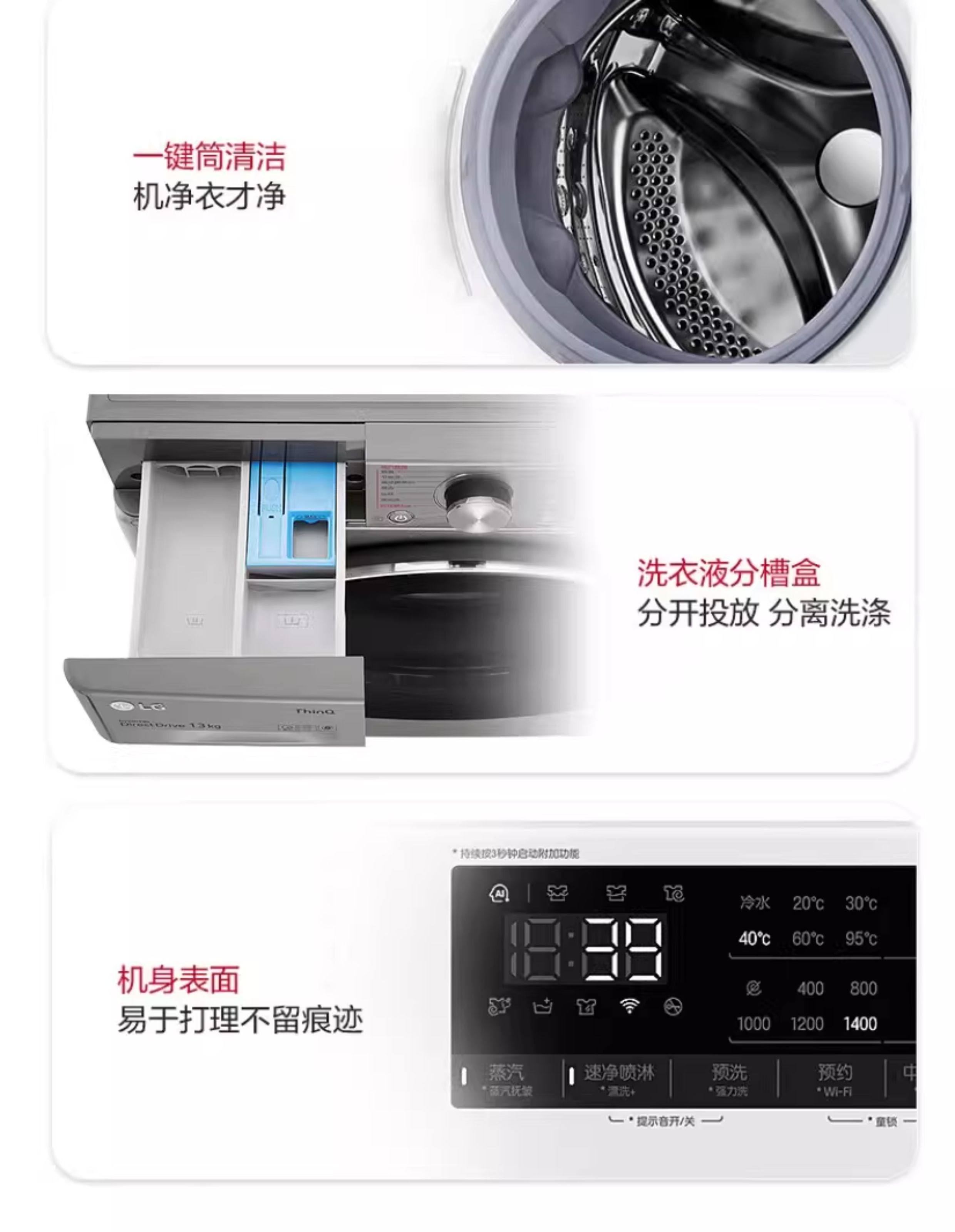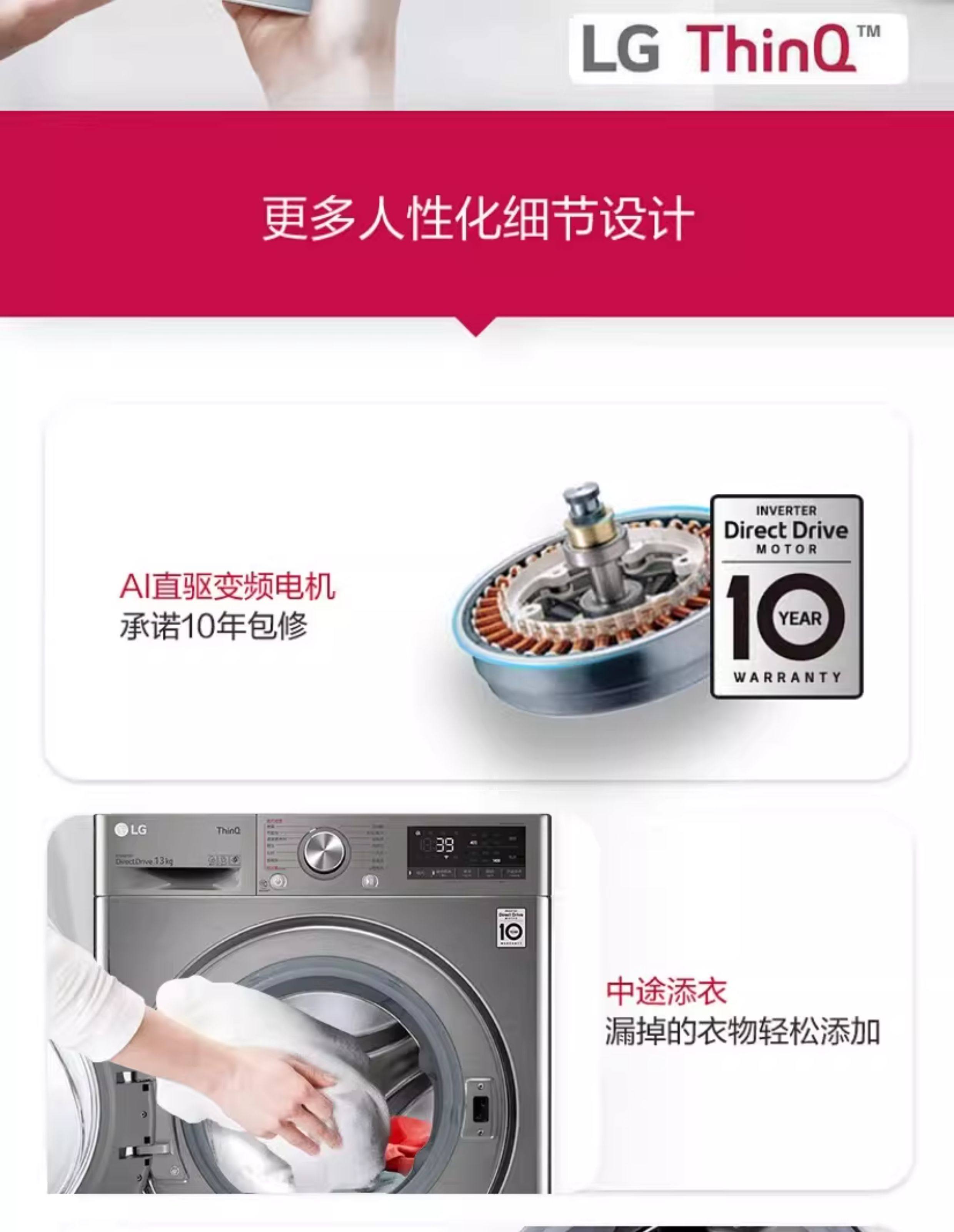 Lg 13kg Large-Capacity Fully Automatic Household Drum Washing Machine Steam Sterilization and Mite Removal Fcw13Y4P 1727
