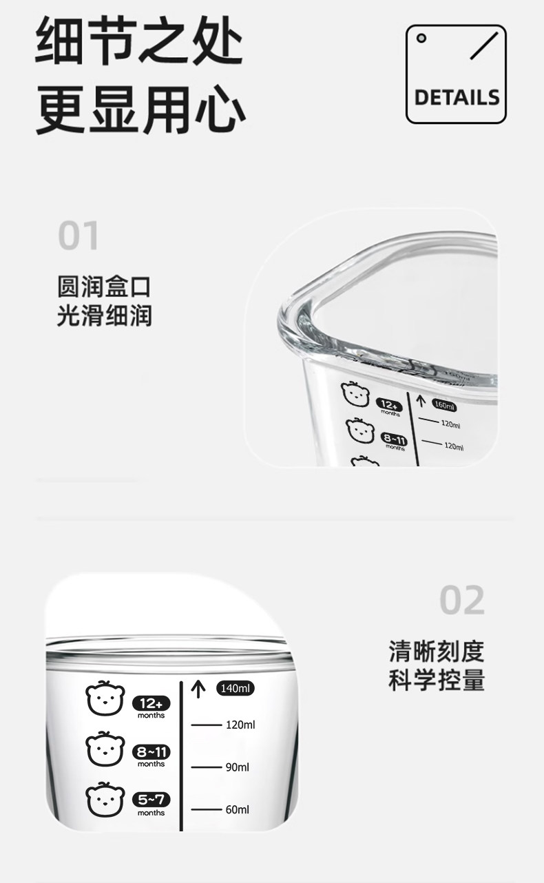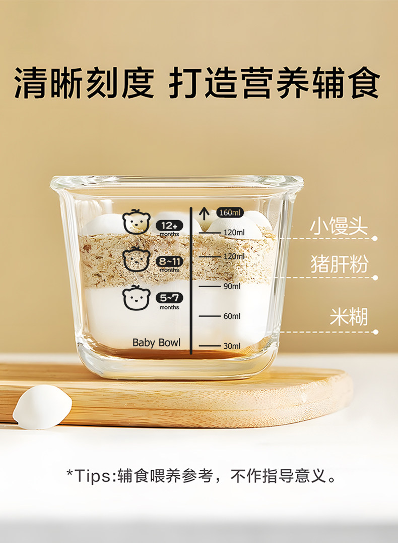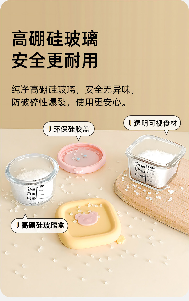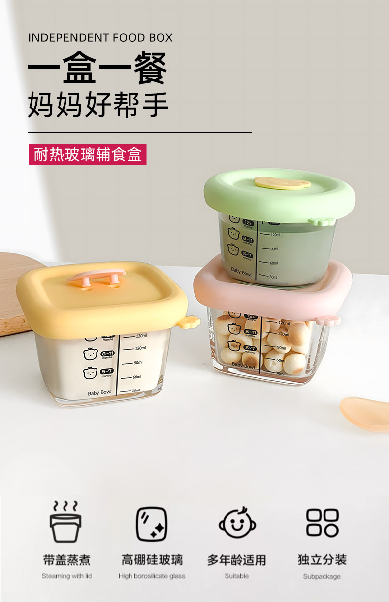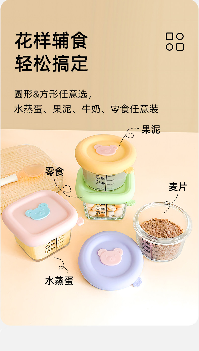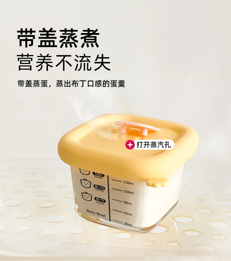 Baby Food Container, Steamable Glass Bowl, Fresh-Keeping Storage, Custard Bowl, Baby-Specific Graduated Food Bowl, Microwaveable