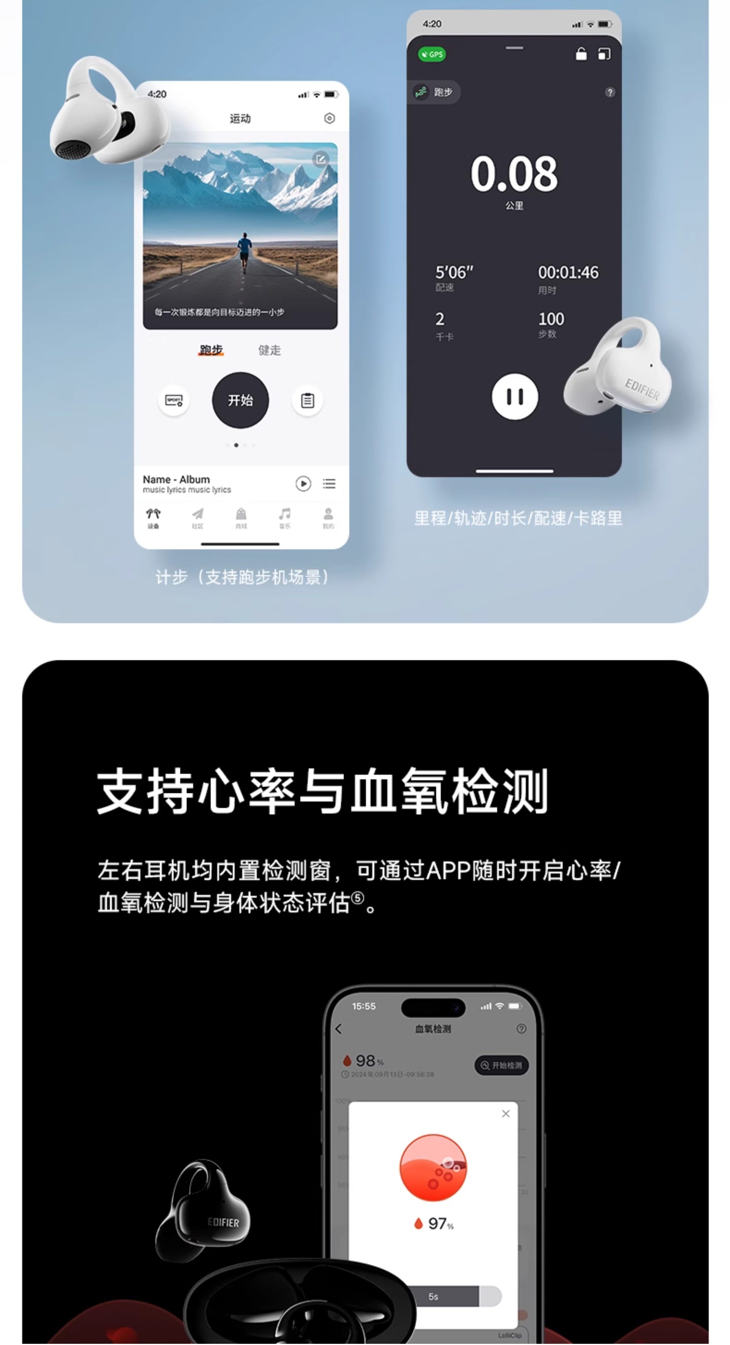 Edifier Lolliclip Ear Clip Bluetooth Headphones, Wireless, Open-Ear, Noise-Cancelling, High-Quality Sound, New Model