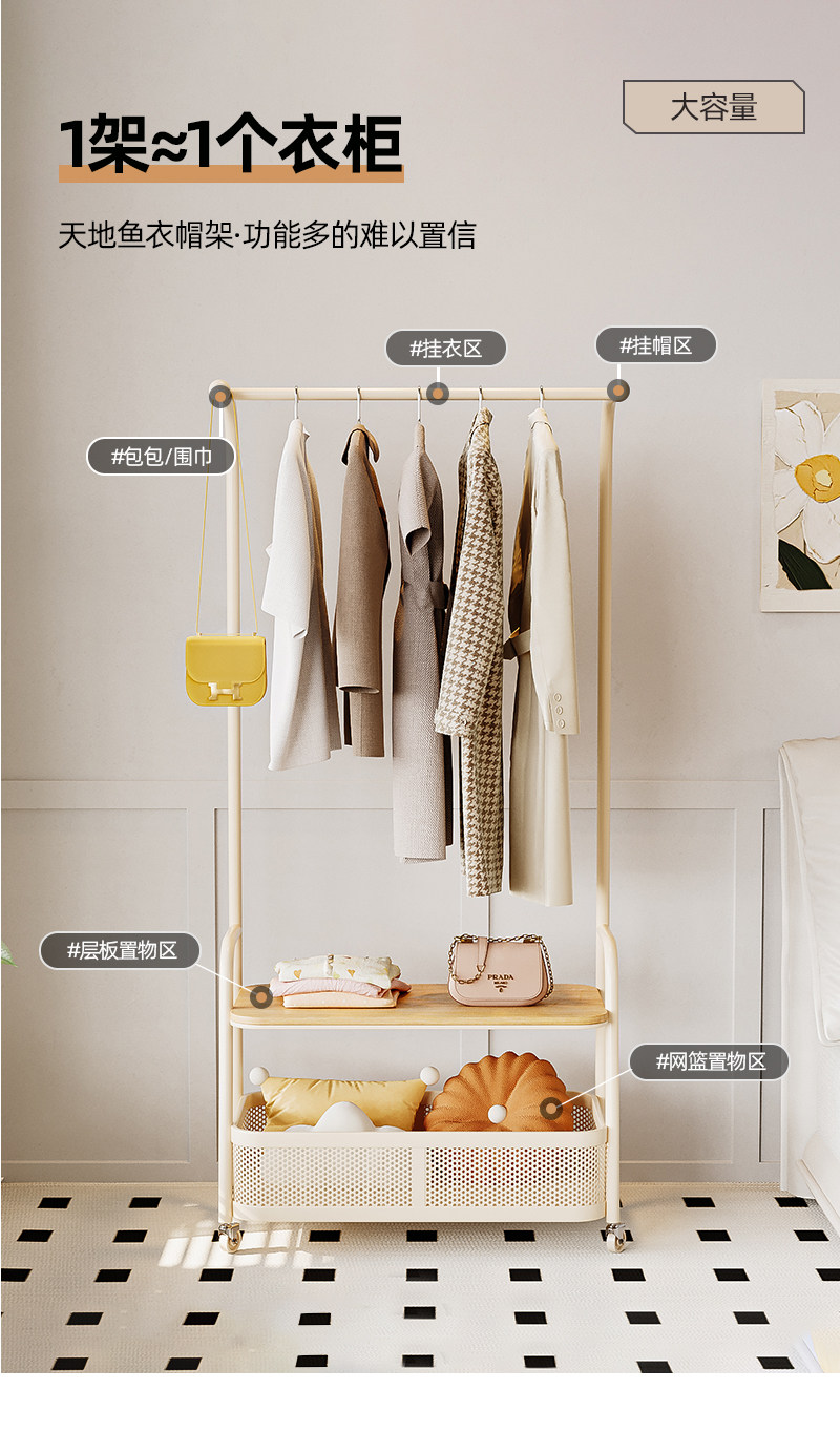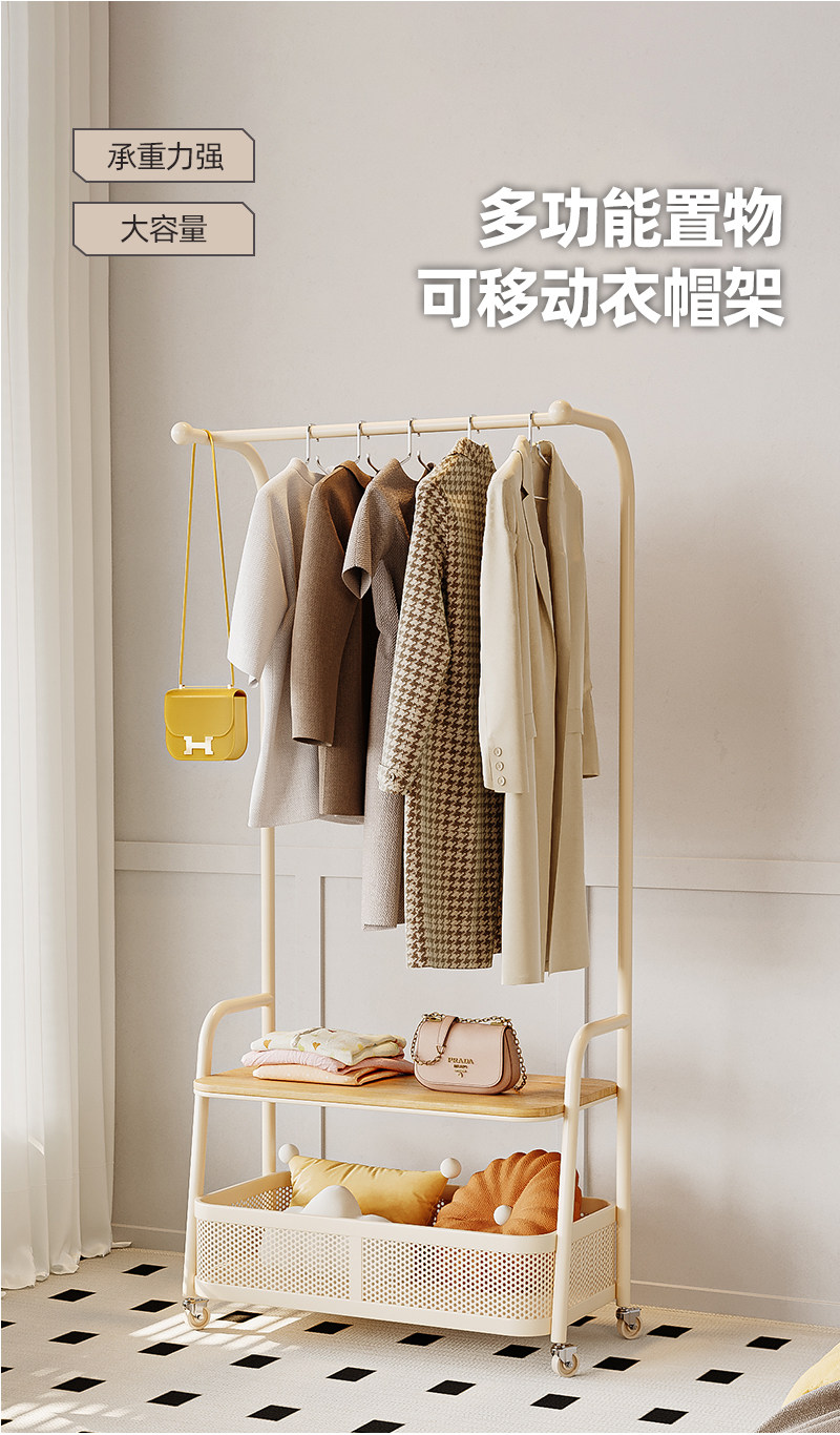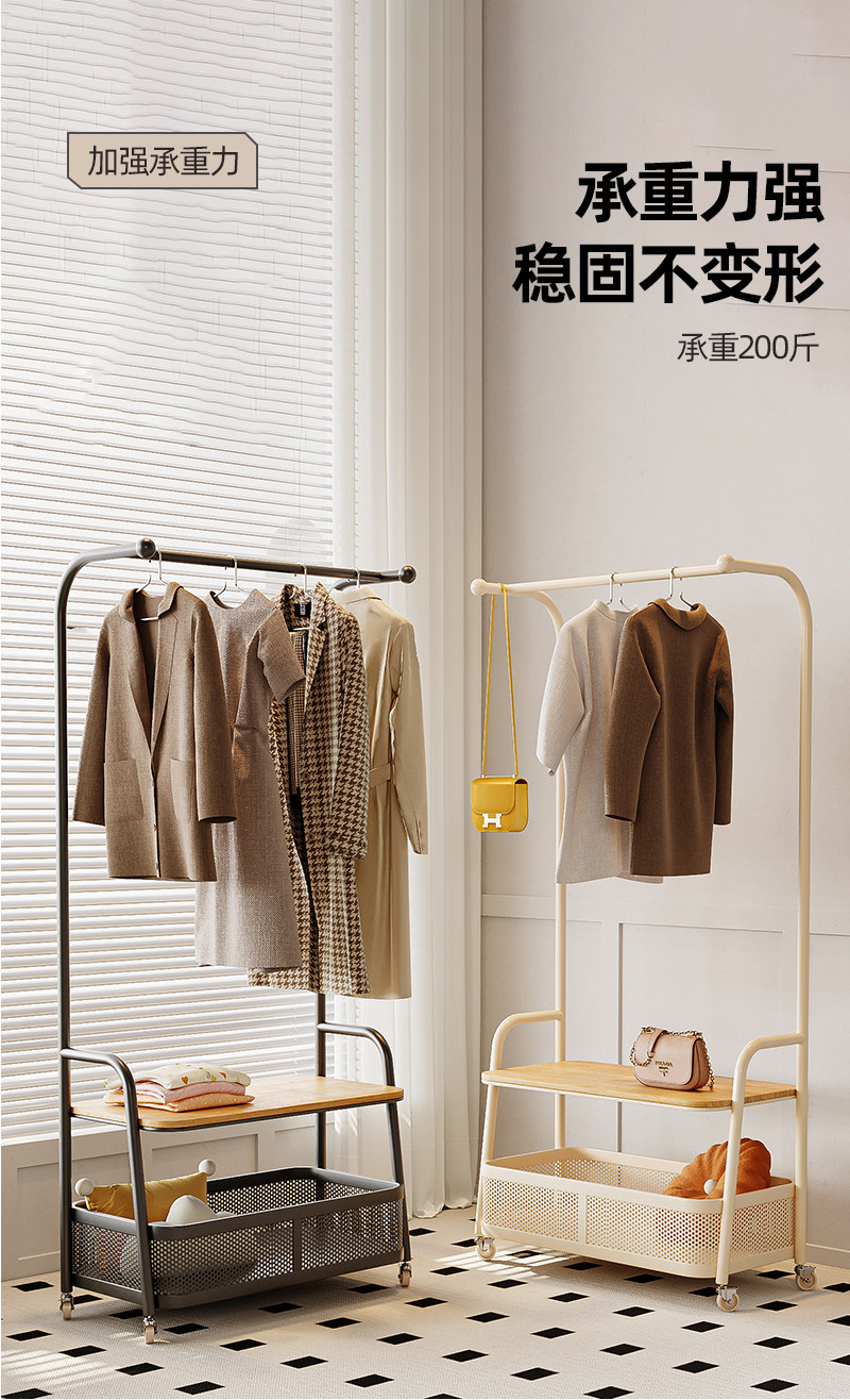 Bedroom Clothes Rack, Floor-Standing Coat Rack, Small Household Space-Saving Clothes Storage Solution, with Wheels for Easy Movement