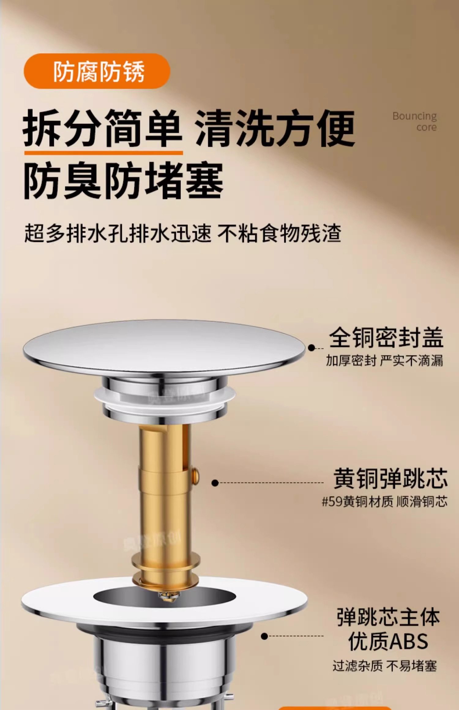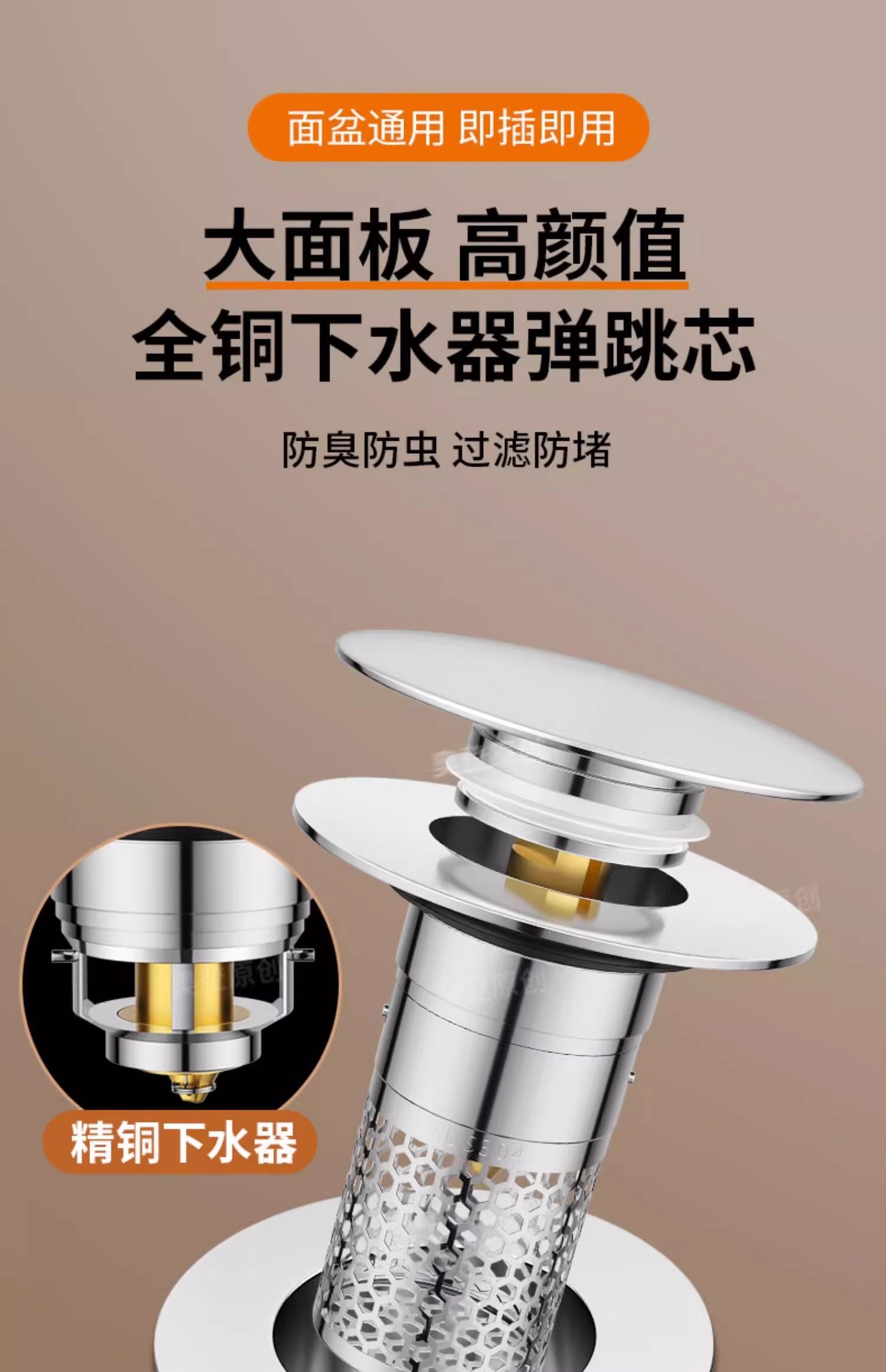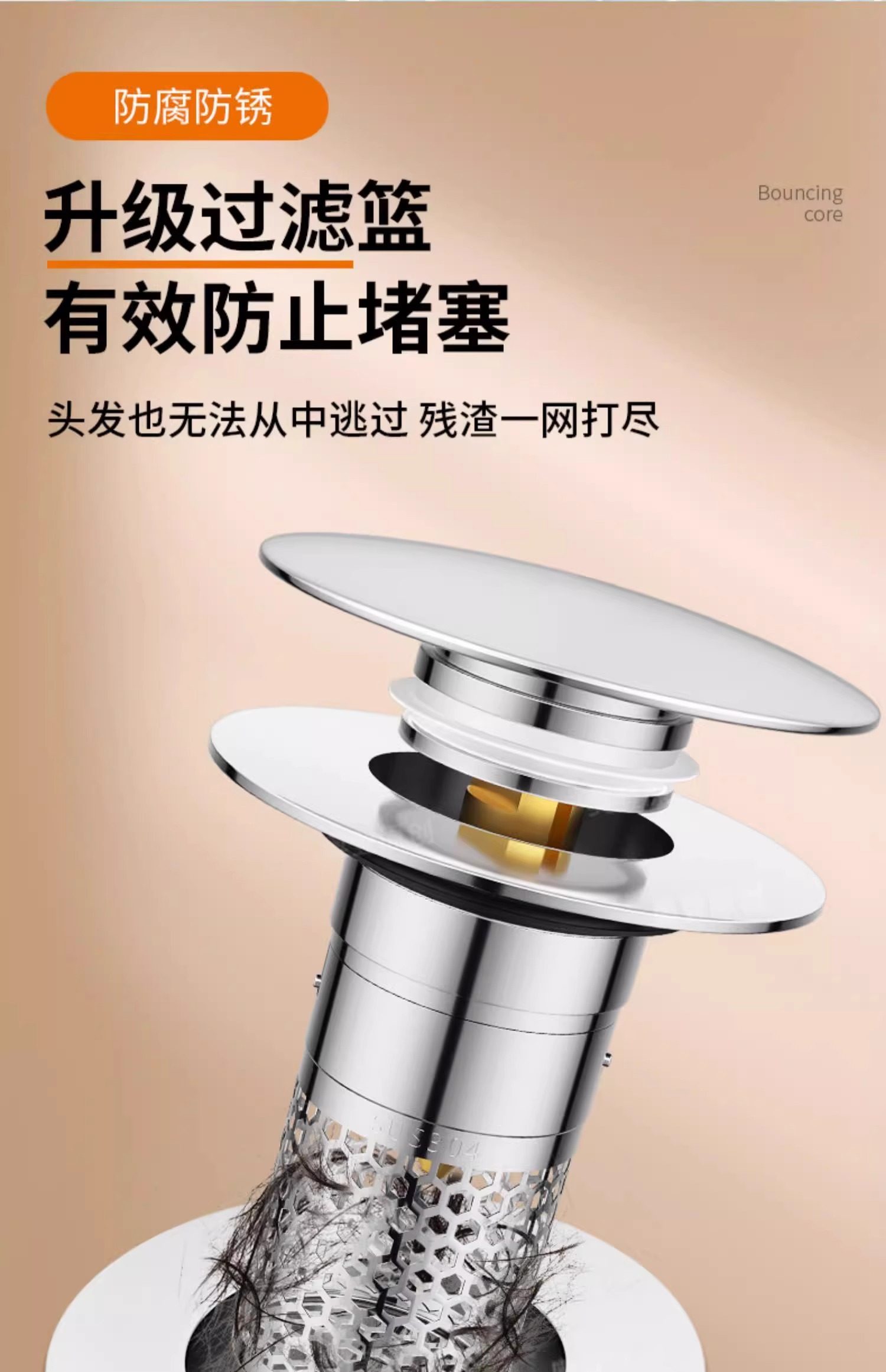 Washbasin Leak-Proof Plug, Sink Top Basin Pop-Up Core, Anti-Odor Drain Filter, Press-Type Universal Accessory