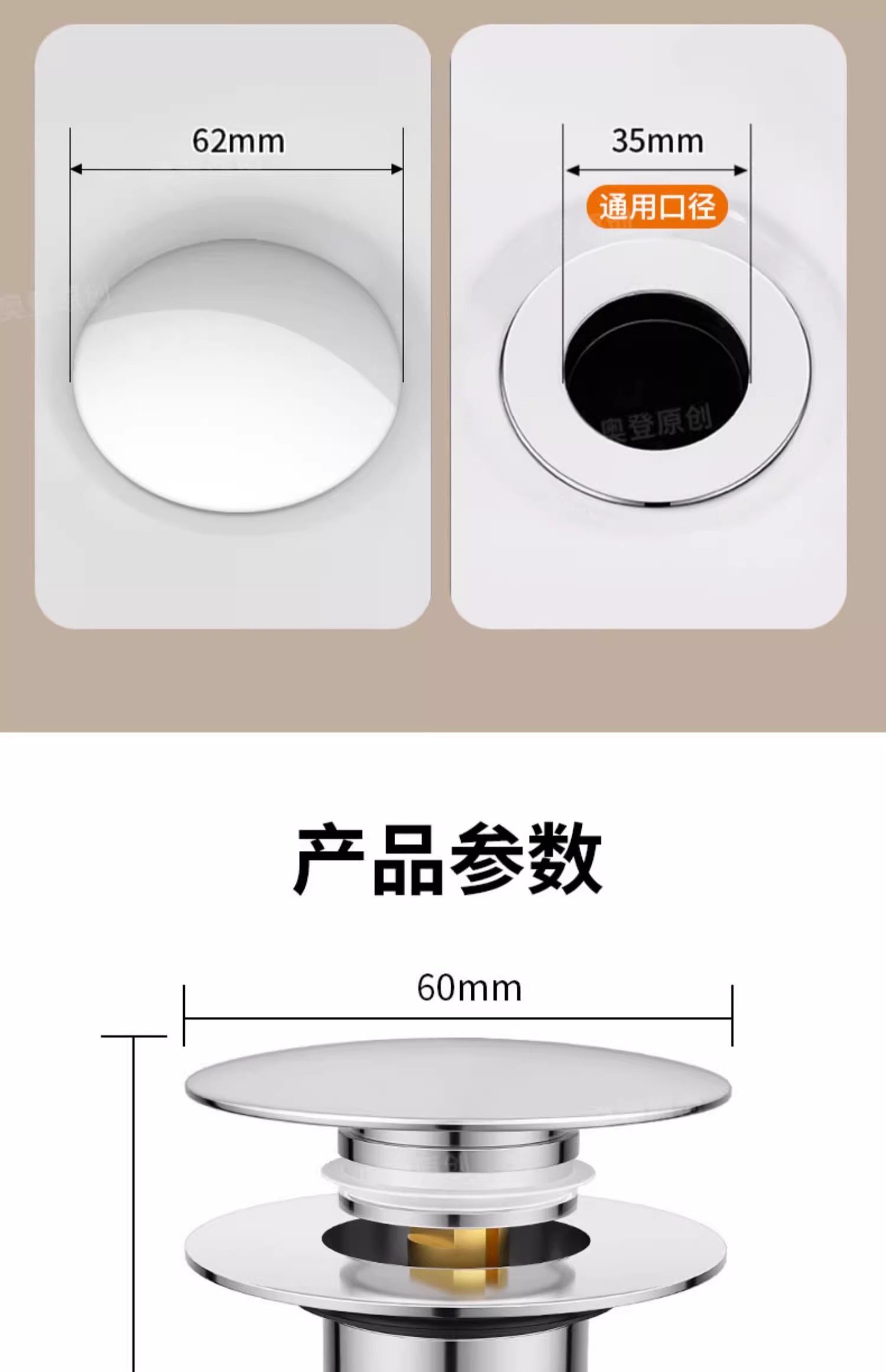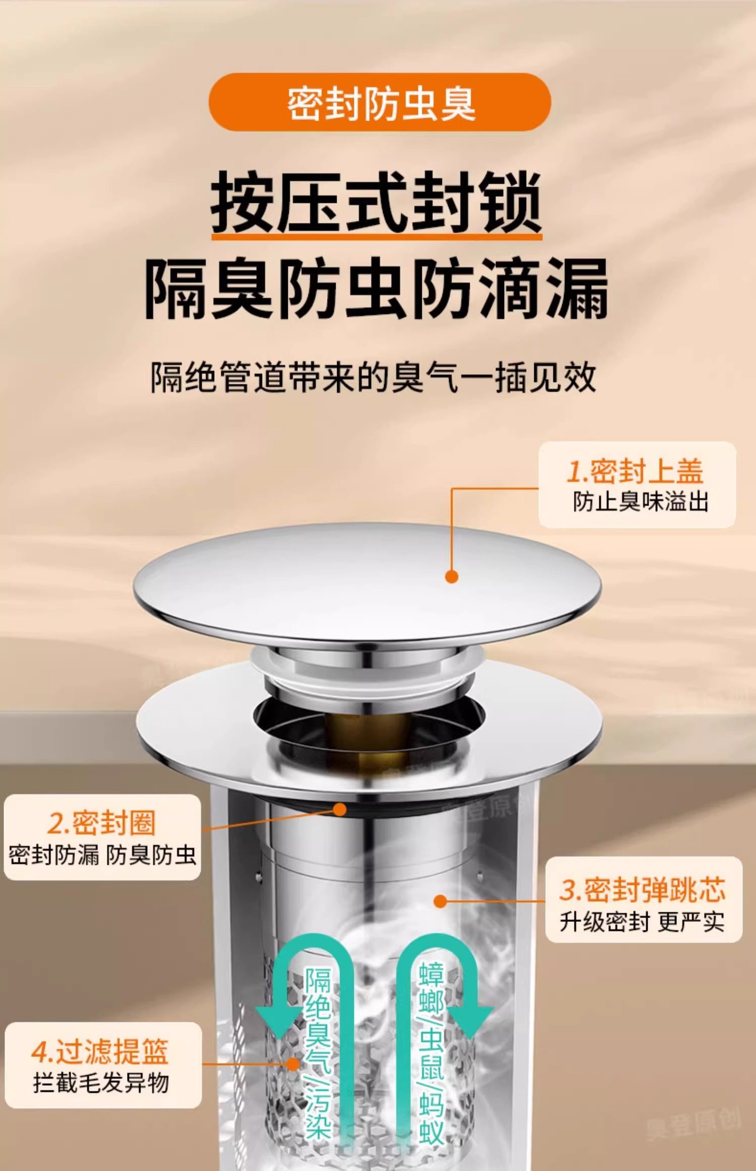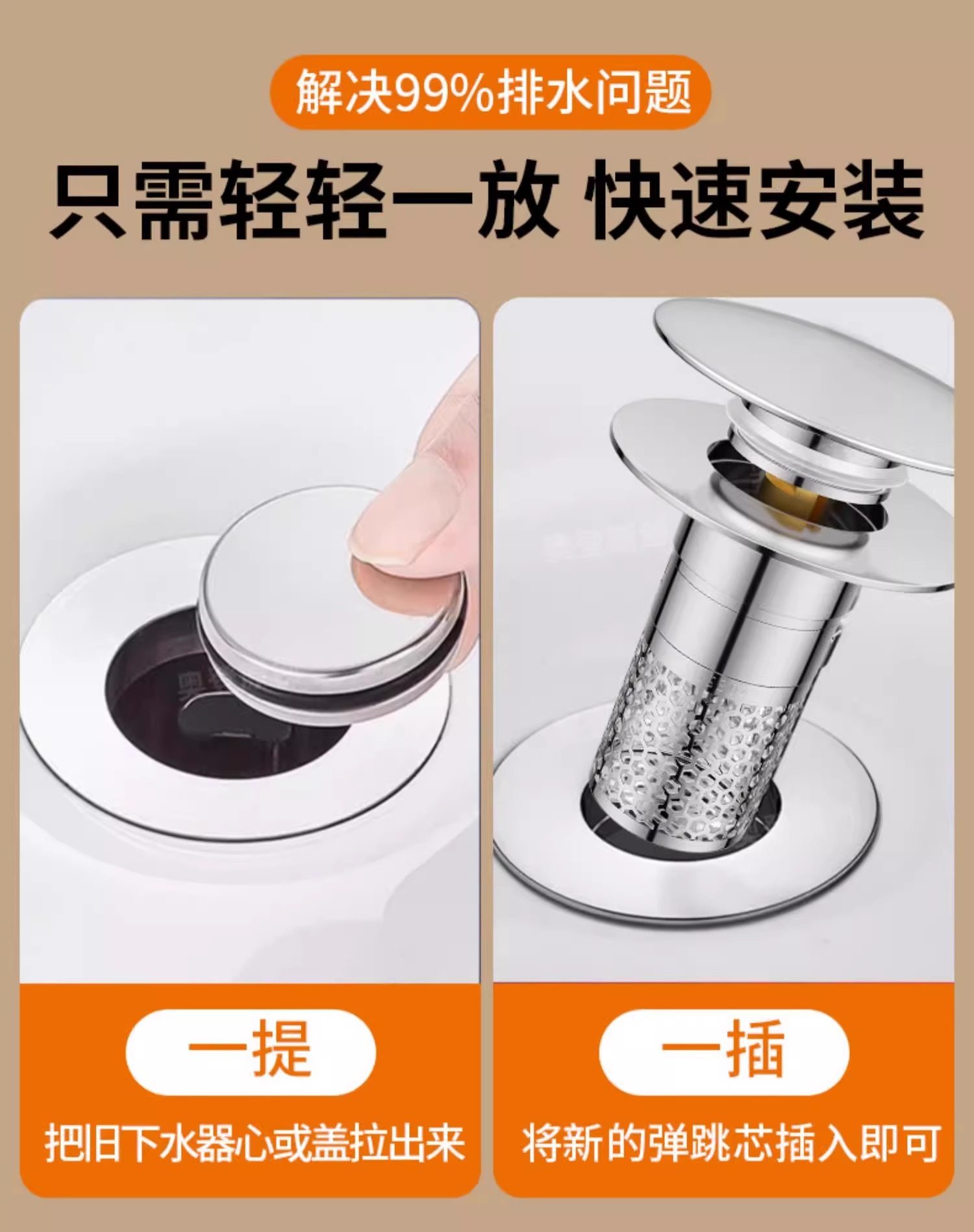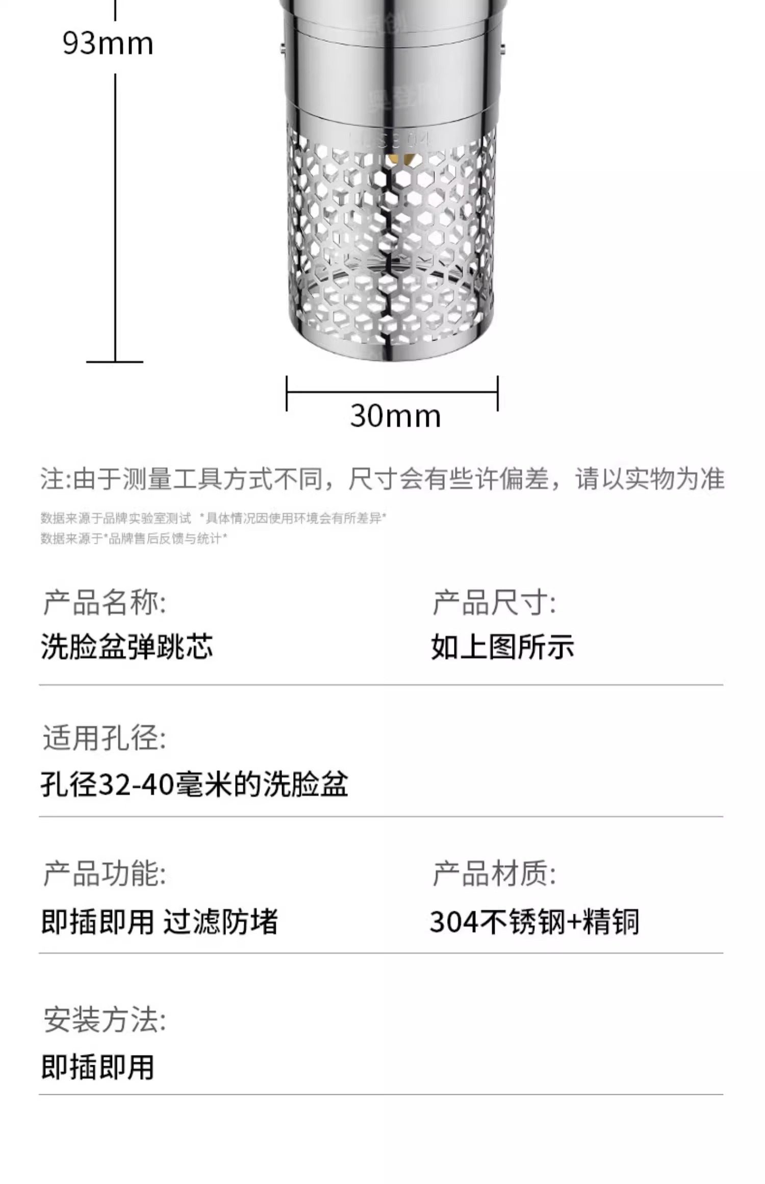 Washbasin Leak-Proof Plug, Sink Top Basin Pop-Up Core, Anti-Odor Drain Filter, Press-Type Universal Accessory
