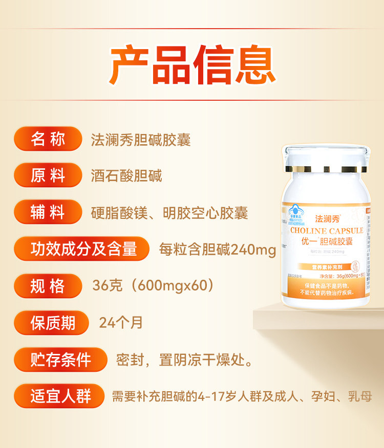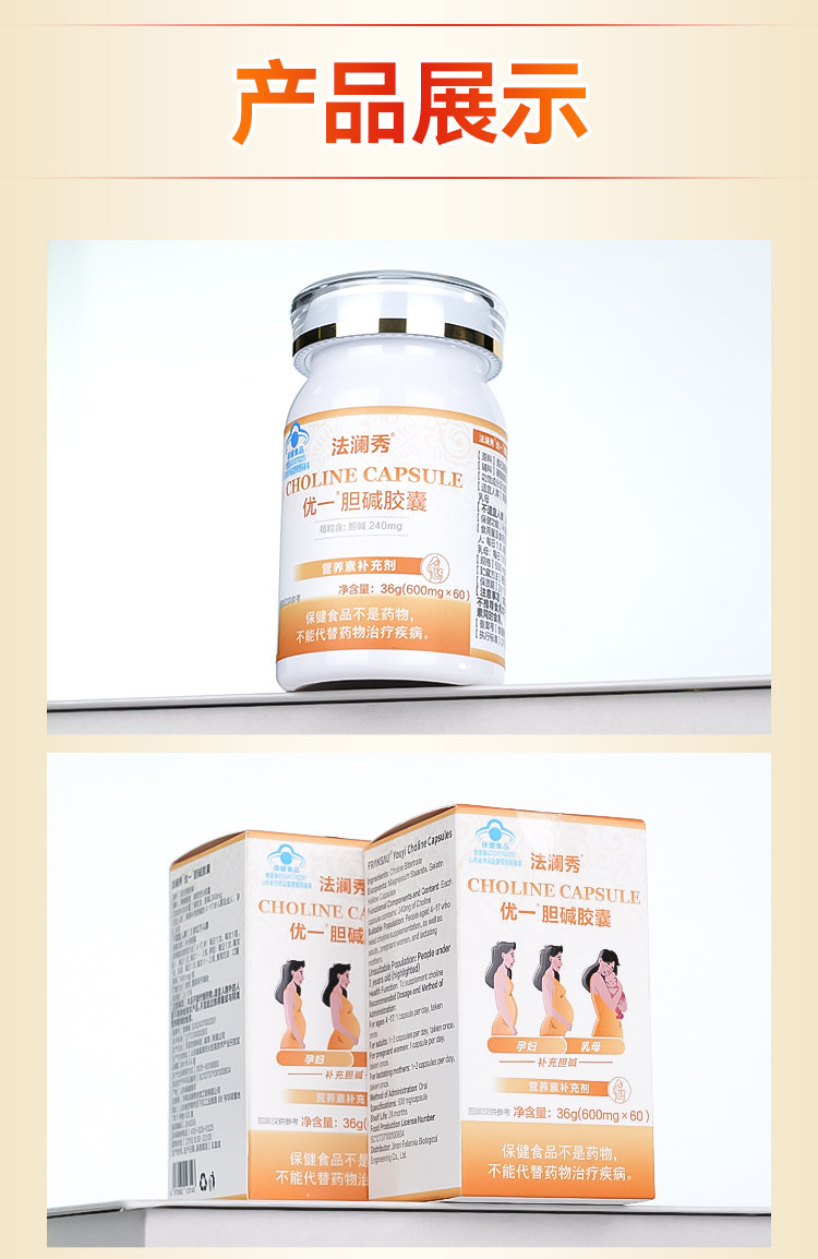 Falanxiu Choline Capsules Are Nutritional Supplements for Men and Women during Pregnancy, Early Pregnancy, and Lactation, for Adult Women