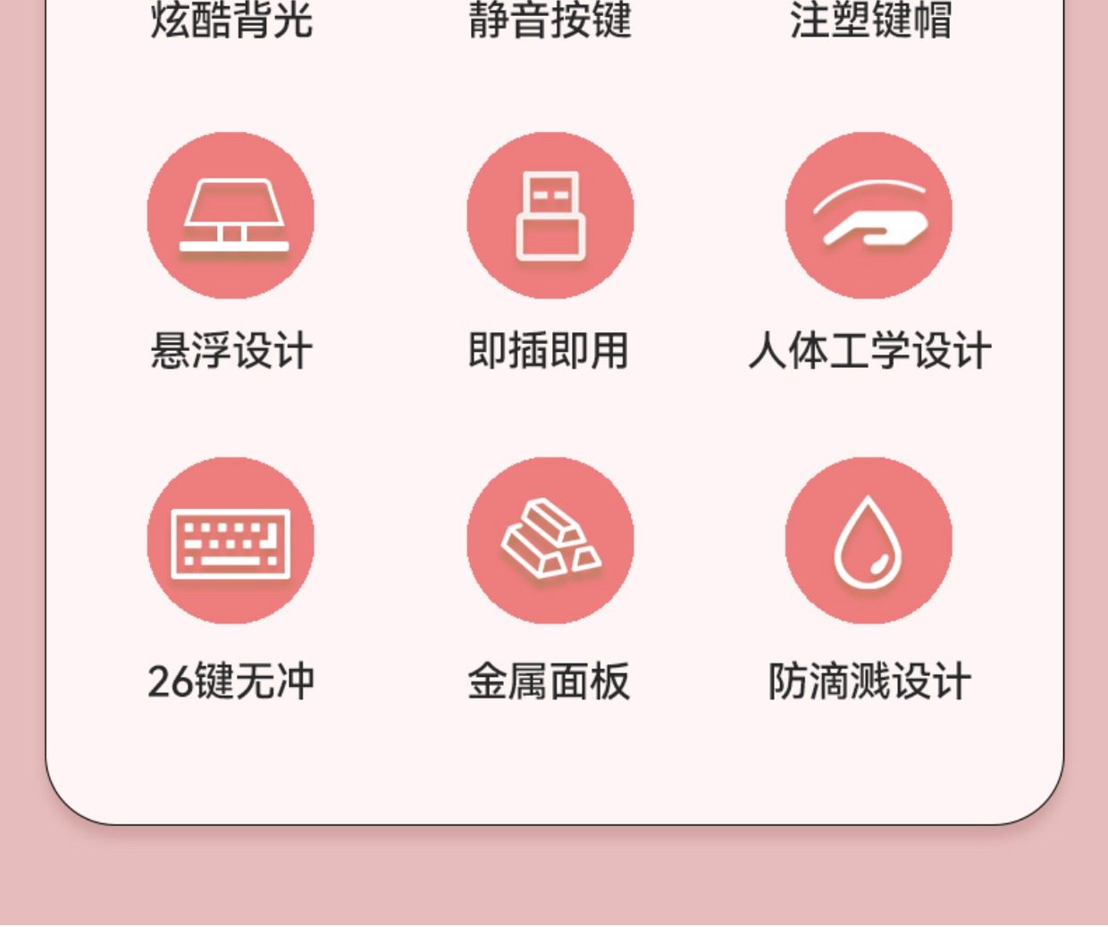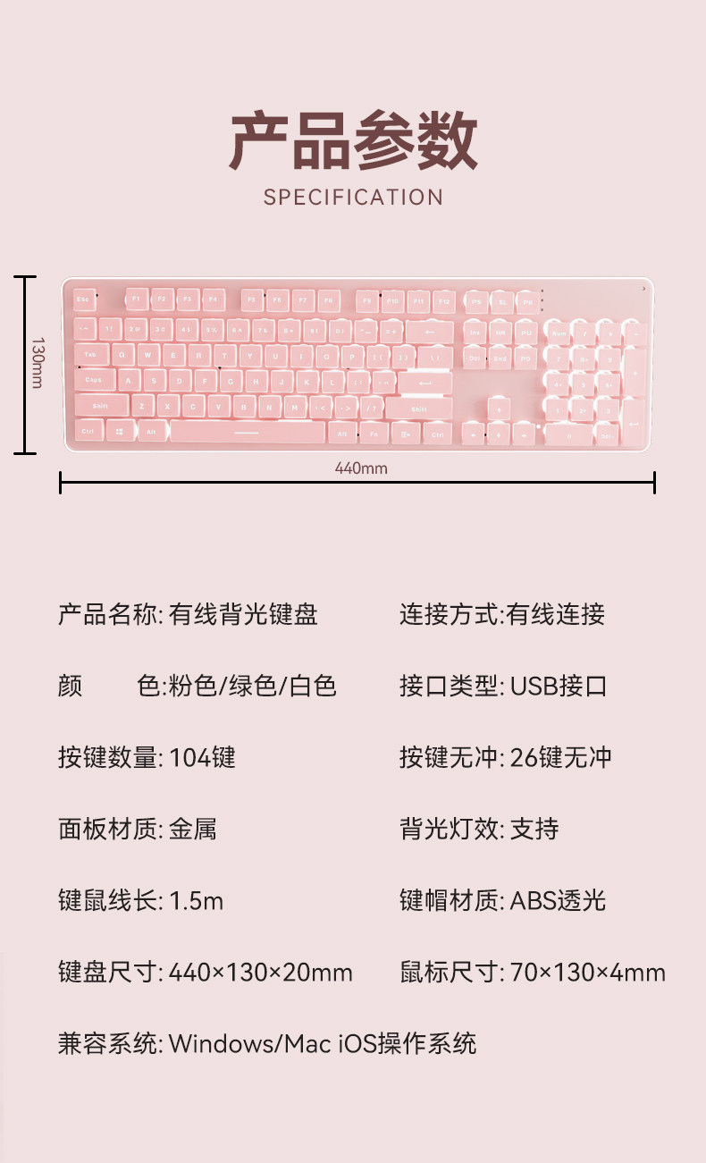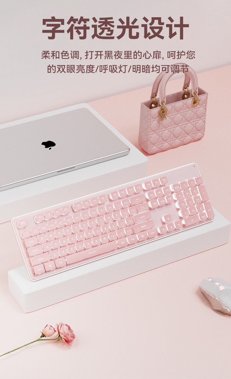 | Color Classification | [Wired Single Keyboard] Pink White Light • Silent Buttons,[Wired Two-Piece Set] Pink White Light + Office Mouse • Silent Buttons,[Wired Three-Piece Set] Pink White Light + Office Mouse + Stereo Headphones • Silent Buttons,[Wired Single Keyboard] White White Light • Silent Buttons,[Wired Two-Piece Set] White White Light + Office Mouse • Silent Buttons,【Wired 3-Piece Set】White Cool Light + Office Mouse + Stereo Headset • Silent Click,[Wired Single Keyboard] Green Warm Light • Silent Buttons,[Wired Two-Piece Set] Green Warm Light + Office Mouse • Silent Buttons,[Wired Three-Piece Set] Green Warm Light + Office Mouse + Stereo Headphones • Silent Buttons |