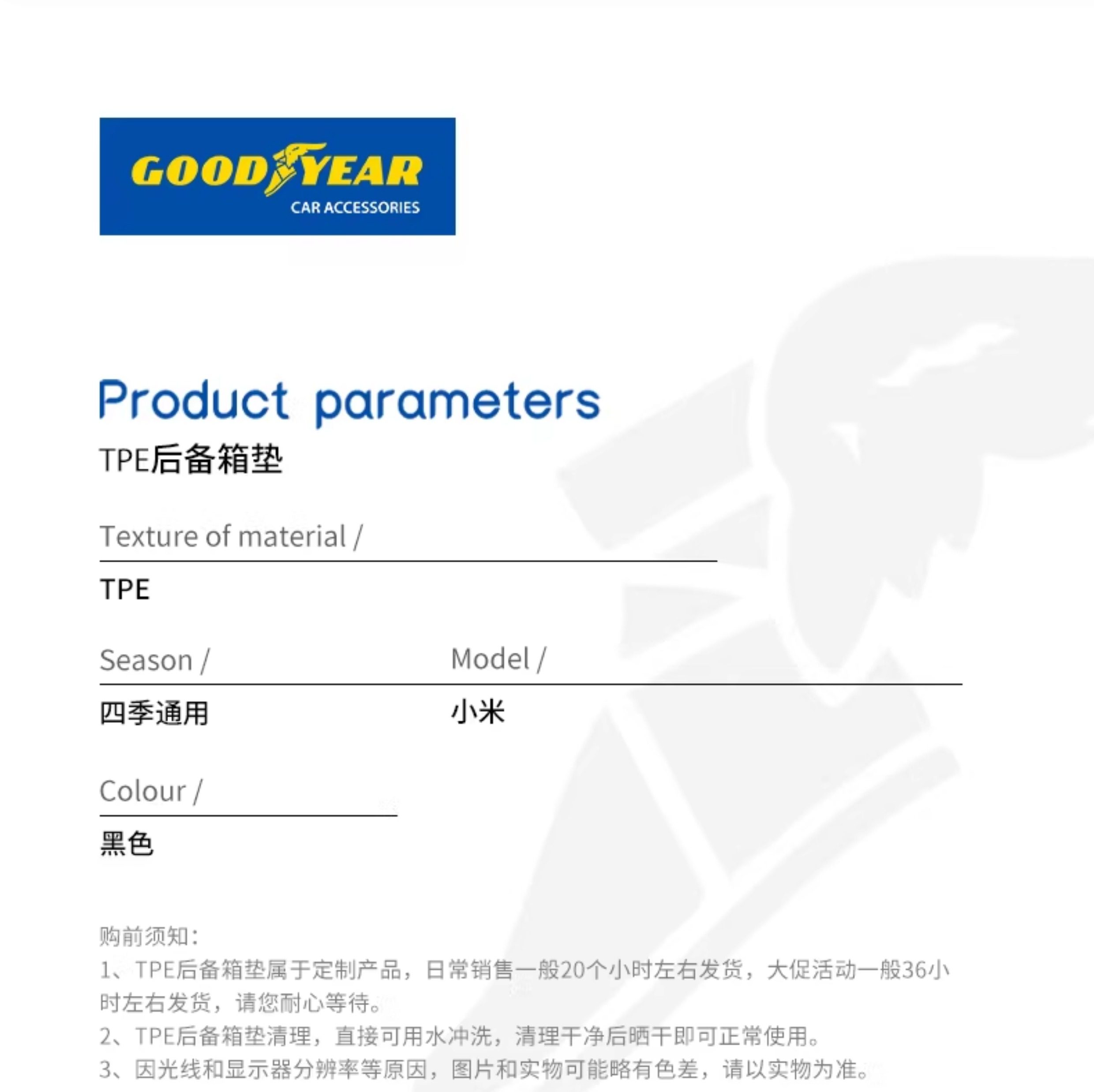 Goodyear Full Tpe Trunk Mat Is Suitable for Xiaomi Yu7 Su7/Ultra Trunk Mat Car Modification Accessories