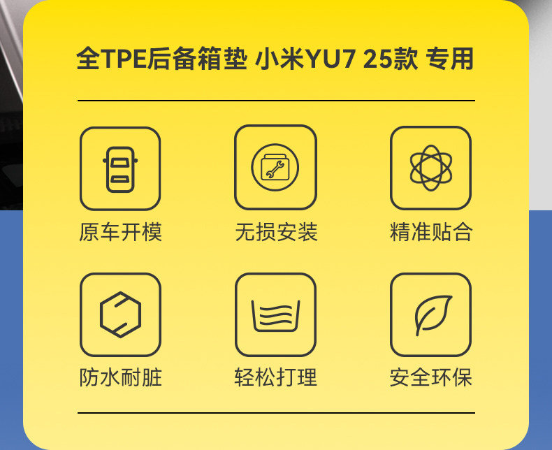 | Color Classification | Yu7 Full Tpe Trunk Mat,Yu7 Rear Seat Back Cushion,Yu7 Trunk Lower Compartment Storage Three-Piece Set,Yu7 Trunk Side Pocket (Without Cover),Yu7 Trunk Side Protective Panels,Yu7 Full Tpe Front Compartment Pad,Yu7 Full Tpe Rear Warehouse Pad,Yu7 Full Tpe Trunk Mat Two-Piece Set,Yu7 Full Tpe Trunk Mat Three-Piece Set,Yu7 Trunk Storage Six-Piece Set,Yu7 Trunk Protection Six-Piece Set,Yu7 Nine-Piece Trunk Protection Set,Yu7 Trunk Protection Gift Pack of Eleven Pieces,Su7 Full Tpe Trunk Mat,Su7/Ultra Full Tpe Front Compartment Pad (Ultra Can Be Adapted),Su7 Full Tpe Rear Compartment Pad,Su7 Full Tpe Trunk Mat Two-Piece Set,Su7 Full Tpe Trunk Mat Three-Piece Set |
