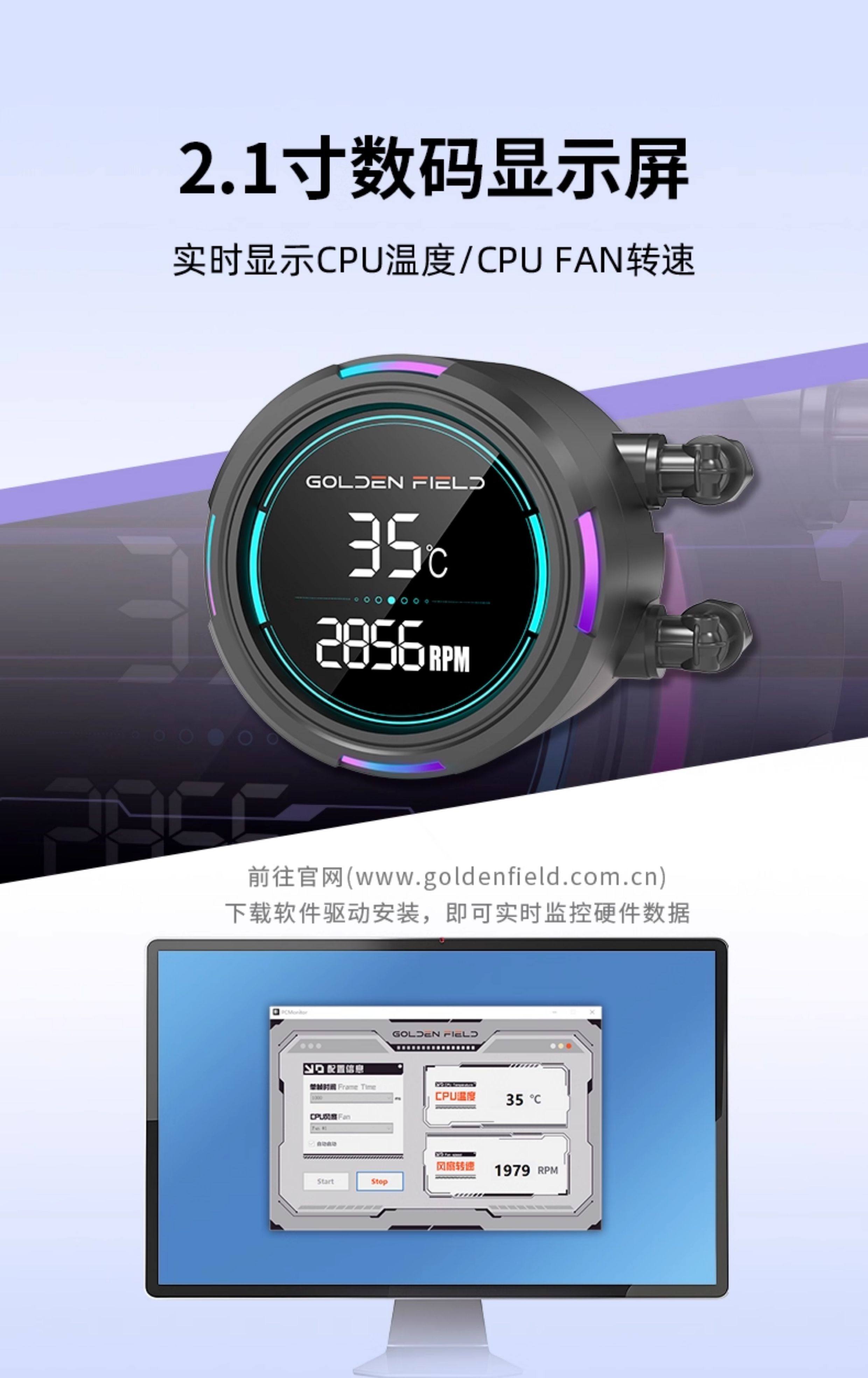 Jinhetian Xd360 Water-Cooled Digital Display Integrated Water-Cooled Radiator Cpu Computer Argb Fan Desktop Cooling Radiator
