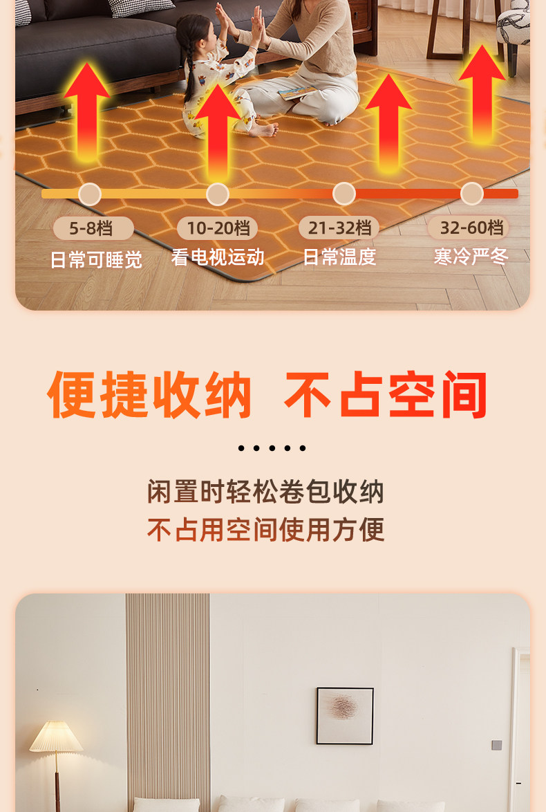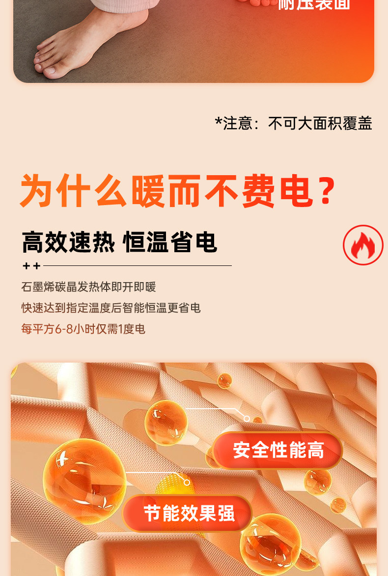 Floor Heating Pad, Household Graphene Carbon Crystal Heating Floor Mat, Heating Pad, Electric Heating Pad, Living Room Heating, Winter Electric Heating Carpet