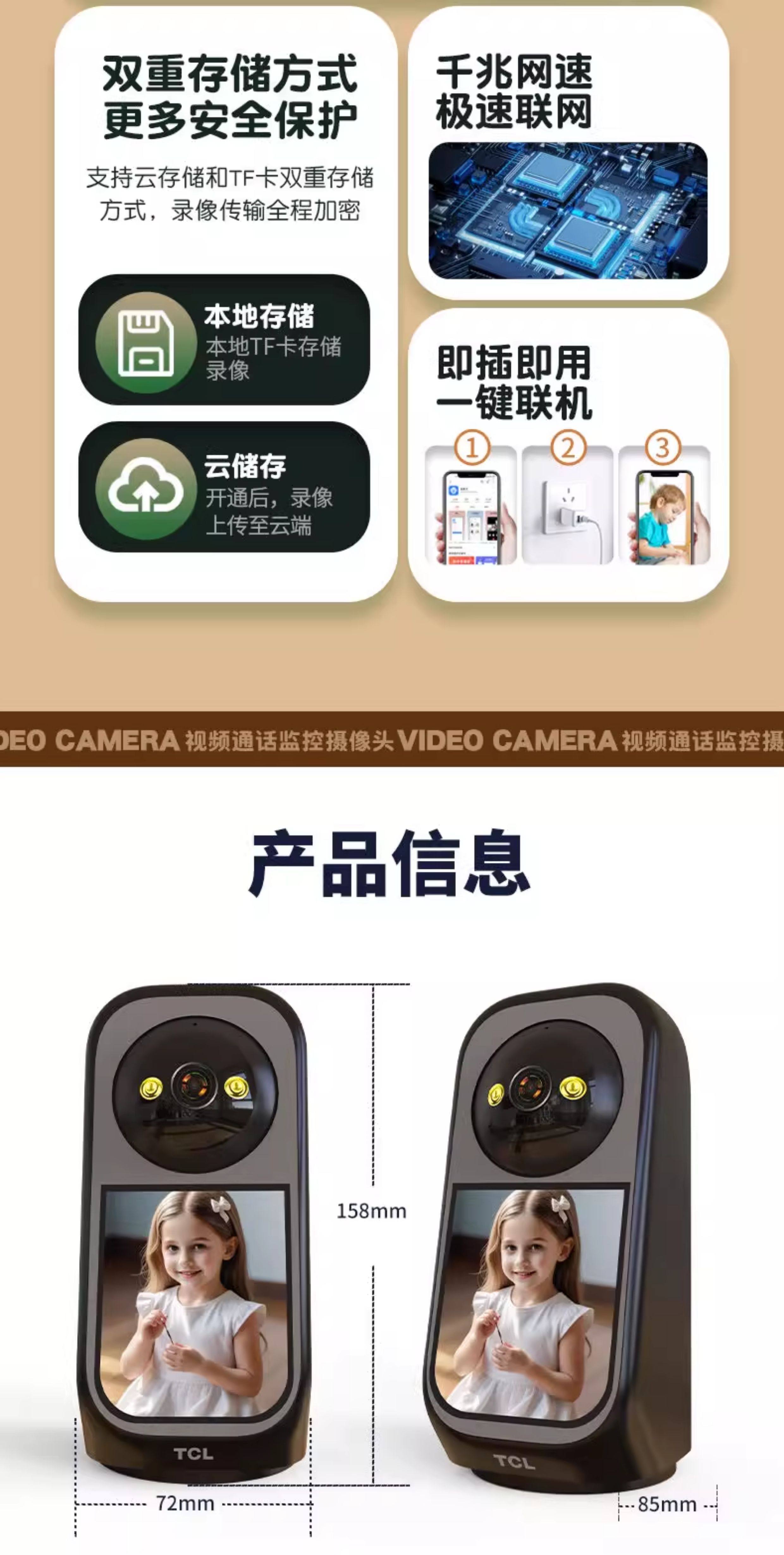 Tcl Two-Way Video Call Surveillance Camera Mobile Phone Remote Voice Intercom Wifi High Definition with Screen