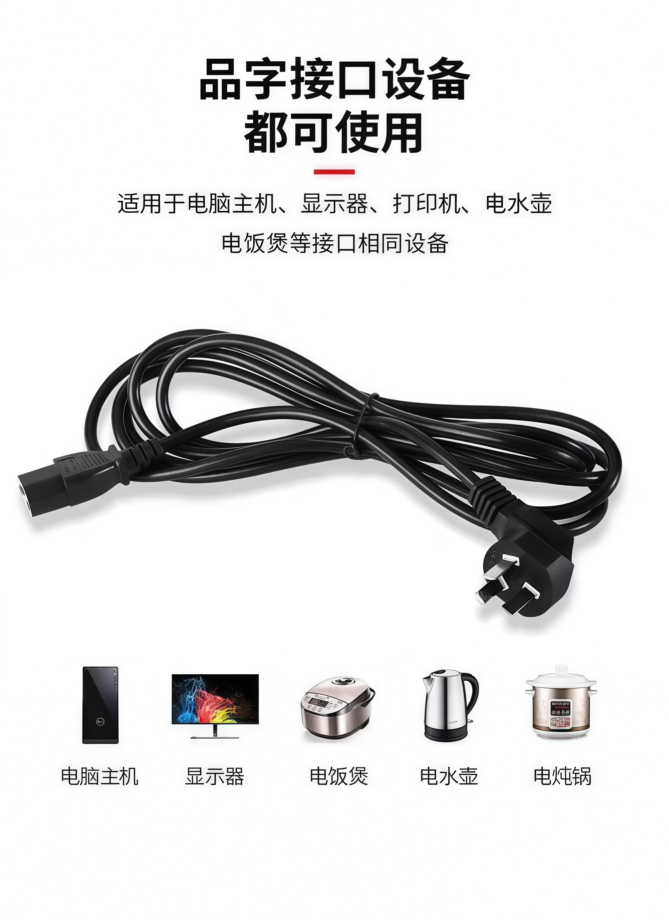 Xuande Mahjong Machine Power Cord, Special Three-Prong Plug Cord for Mahjong Machines, Pure Copper Thickened Wire, National Standard Certification 3C
