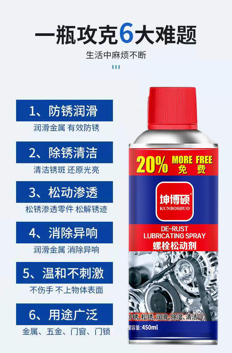 Rust Remover, Anti-Rust Lubricant, Car Screw and Bolt Loosening Agent, Door Lock Steel and Metal Rust Removal Lubricant