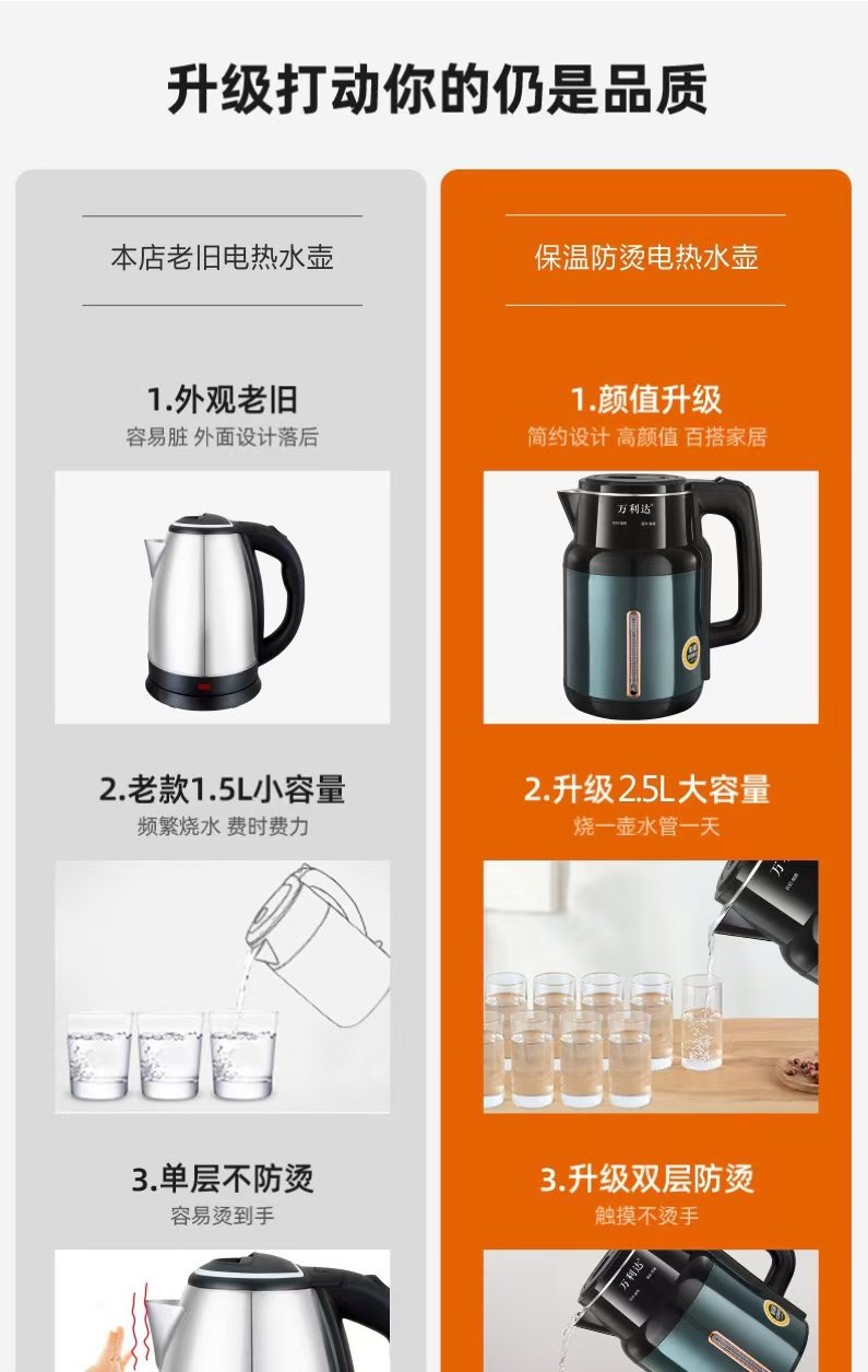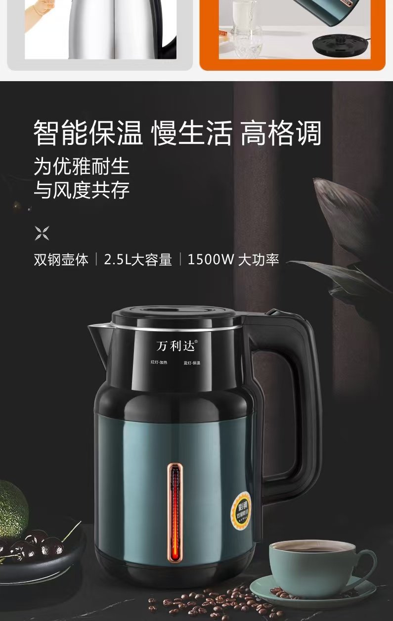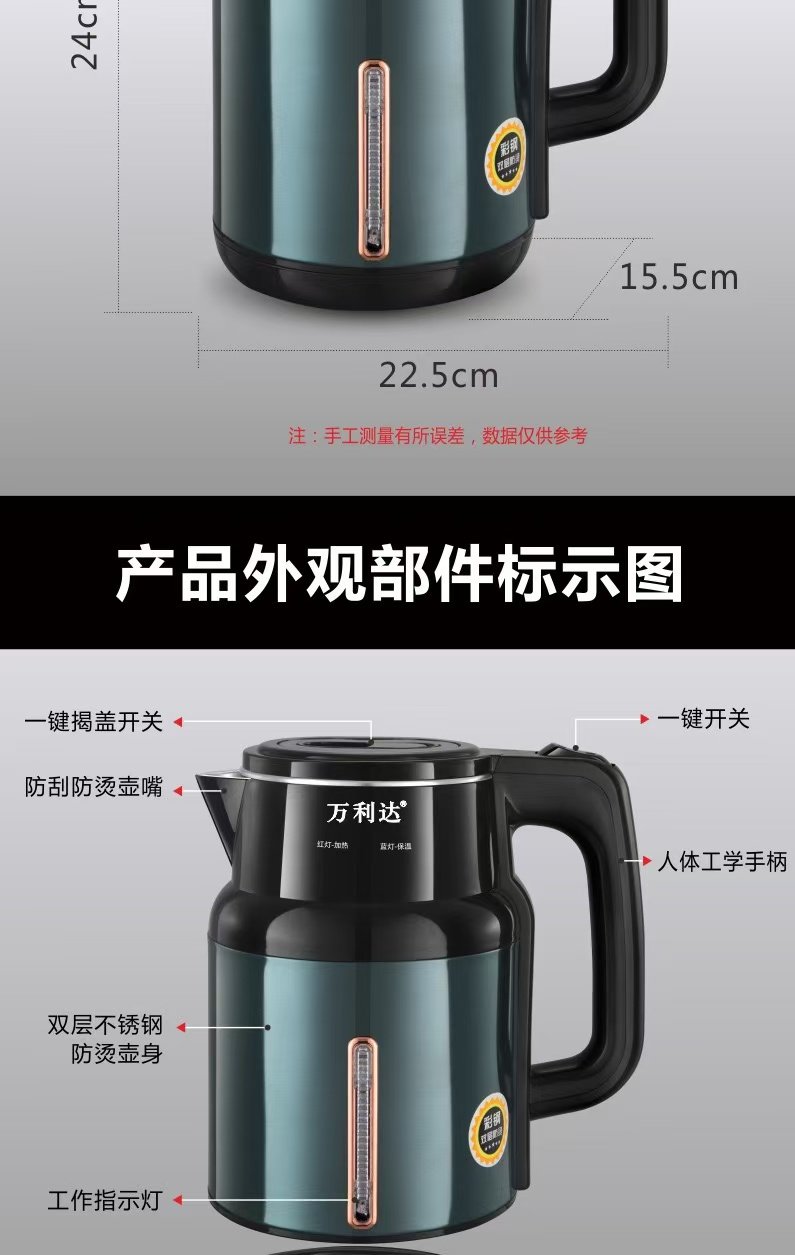 Wanlida Electric Kettle 2025 New Model Household Kettle with Integrated Insulation, Fully Automatic Intelligent Constant Temperature Kettle