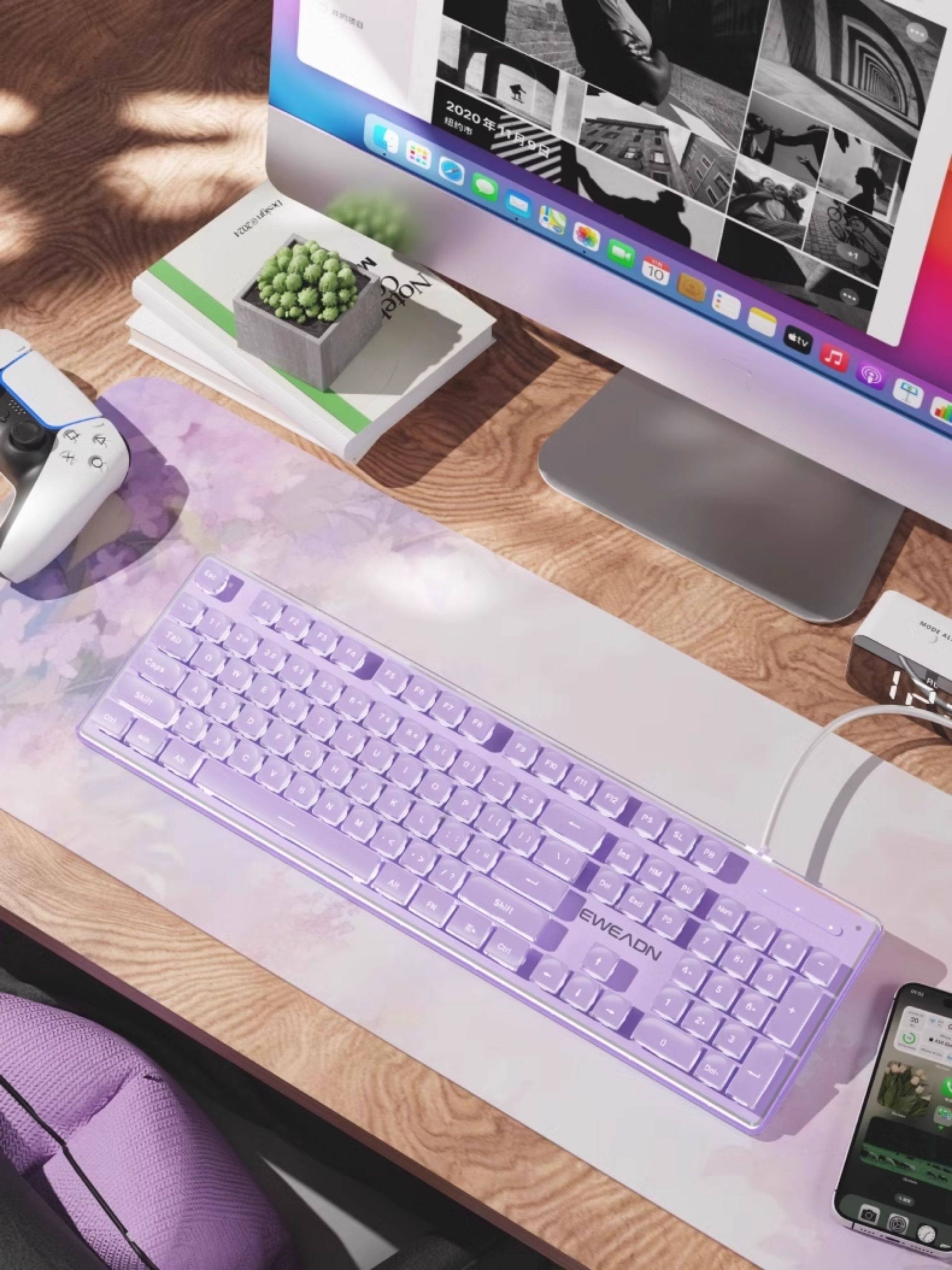 Forerunner V3 Cute Wired Keyboard with High Aesthetic Appeal, Purple Mechanical Feel, Desktop Computer, Suitable for Girls, Office, Wireless