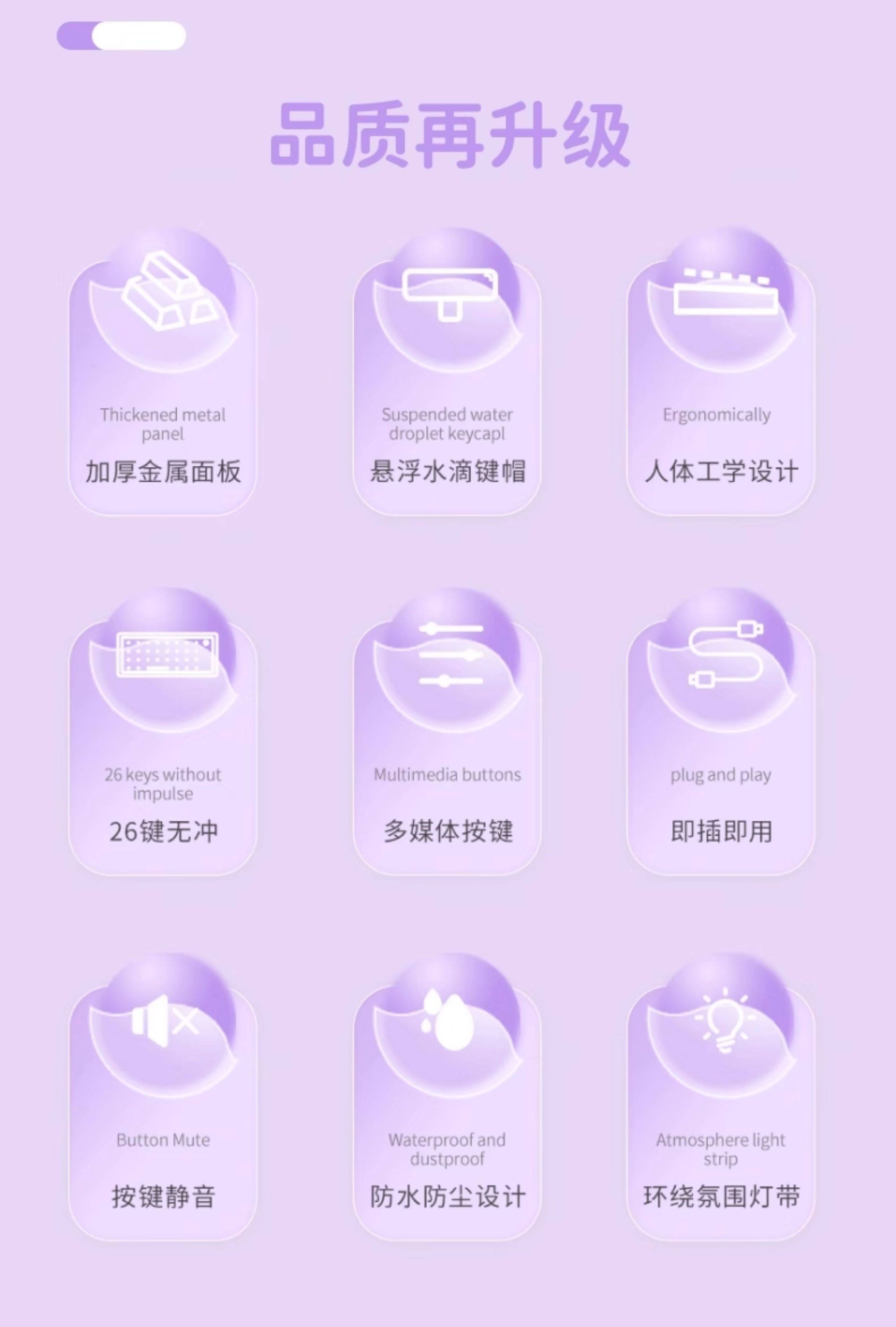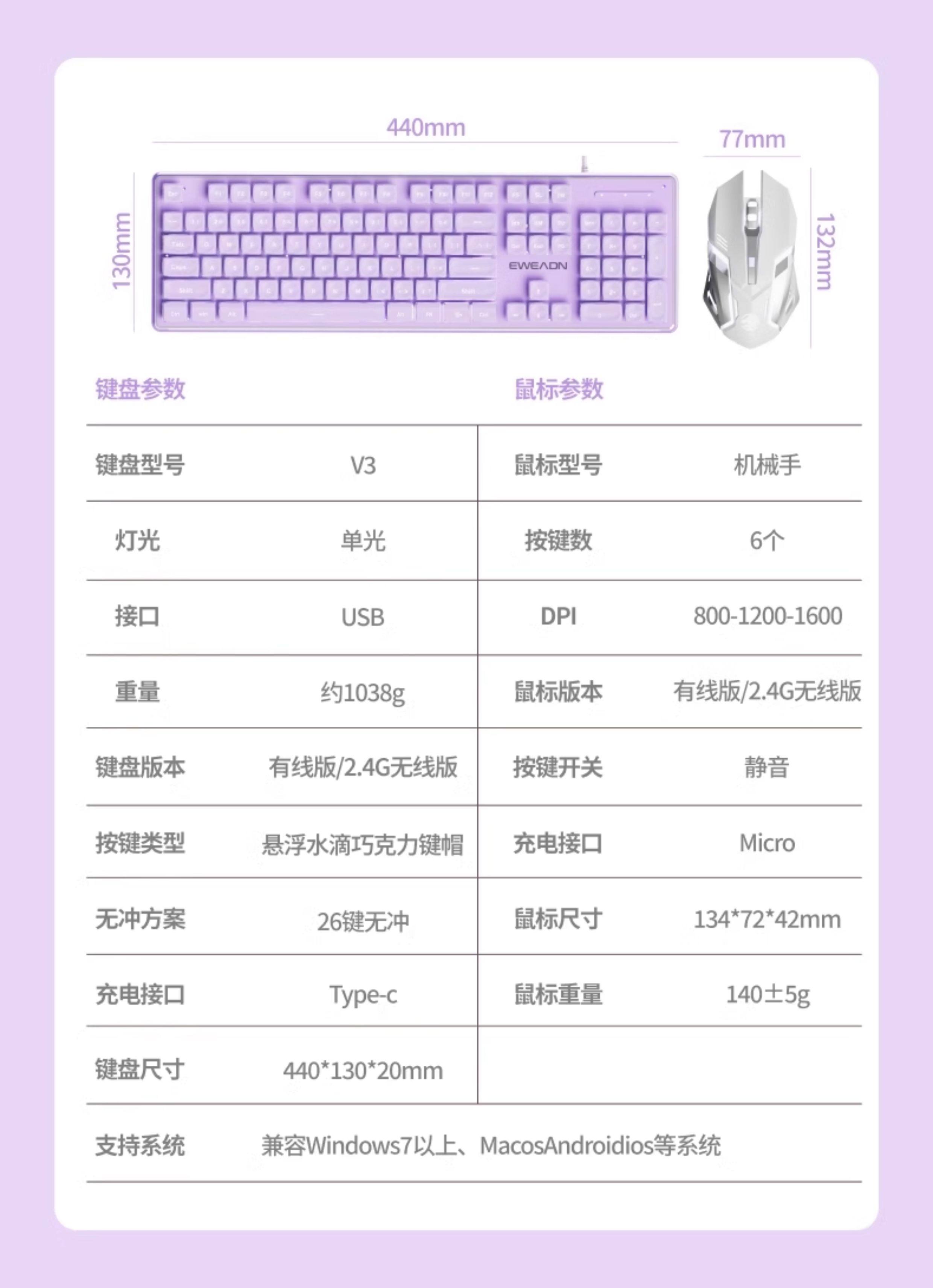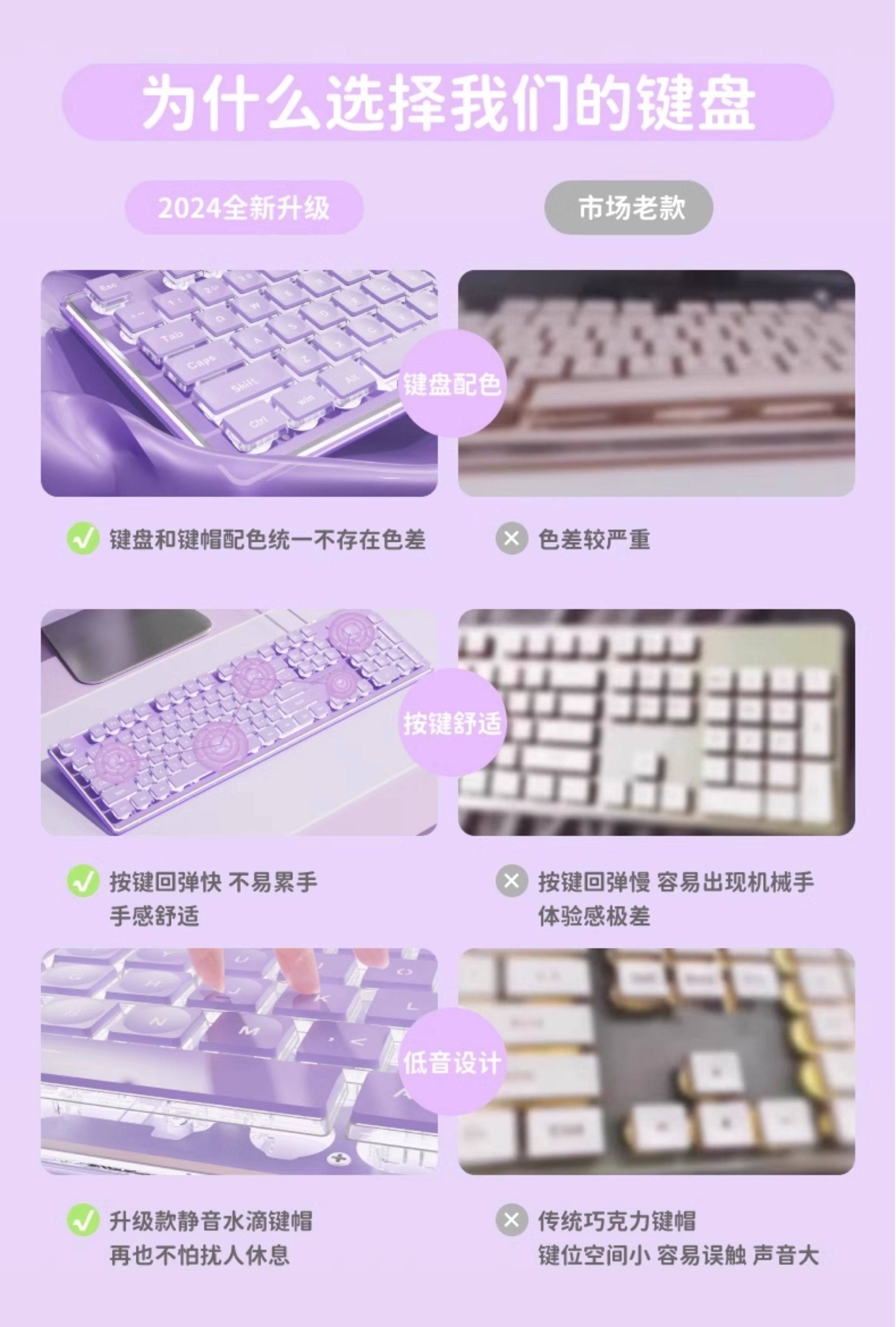 | Color Classification | Taro Purple-White Light-[Silent-Wired Version]Single Keyboard,Taro Purple-White Light-[Silent-Wired Version]Keyboard and Mouse Set,Green-Warm Light-[Silent-Wired Version]Single Keyboard,Green-Warm Light-[Silent-Wired Version]Keyboard and Mouse Set,Retro Green-Warm Light-[Silent-Wired Version]Single Keyboard,Retro Green-Warm Light-[Silent-Wired Version]Keyboard and Mouse Set,Milk Tea Color-Warm Light[Silent-Wired Version]Single Keyboard,Milk Tea Color-Warm Light-[Silent-Wired Version]Keyboard and Mouse Set,White-White Light-[Silent-Wired Version]Single Keyboard,White-White Light-[Silent-Wired Version]Keyboard and Mouse Set,The Following Is a Wireless Keyboard and Mouse Set,White-White Light-[Silent-Wireless Version]Single Keyboard,White-White Light-[Silent-Wireless Version]Keyboard and Mouse Set,Green-Warm Light-[Silent-Wireless Bluetooth Version]Single Keyboard,Green-Warm Light-[Silent-Wireless Bluetooth Version]Keyboard and Mouse Set |