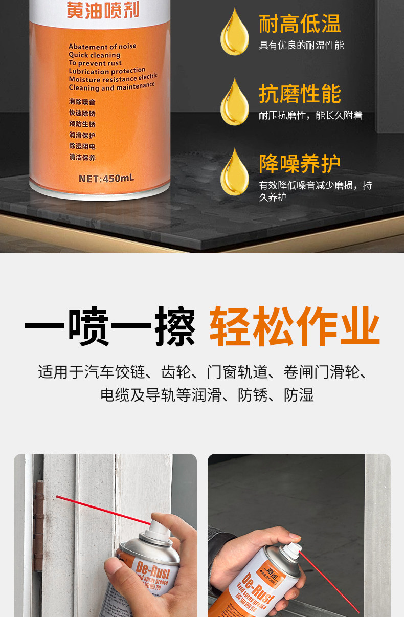 Butter Spray, High Temperature Resistant, Anti-Rust, Anti-Noise, Mechanical Bearings, Gears, Door Locks, Bearings, Automotive Anti-Rust Lubricating Grease
