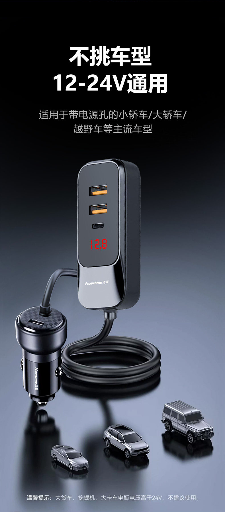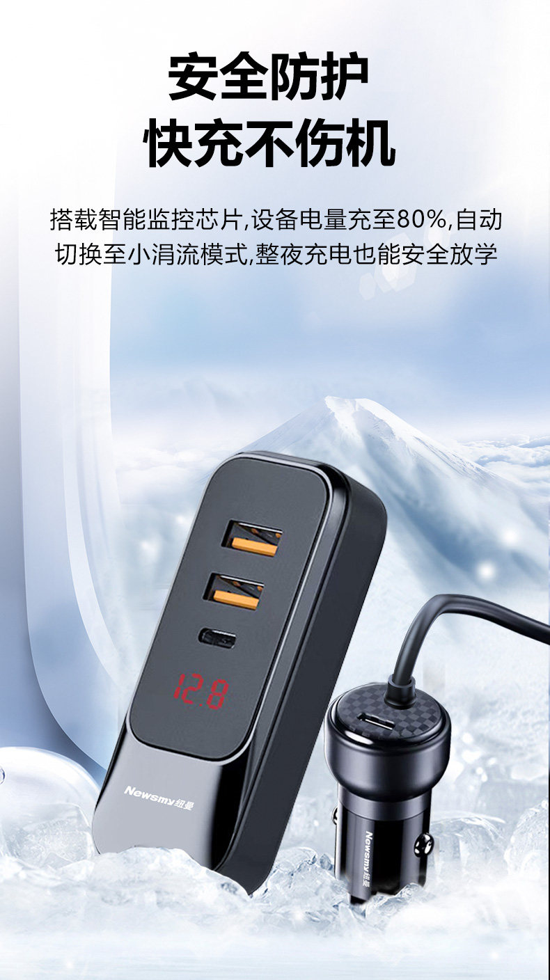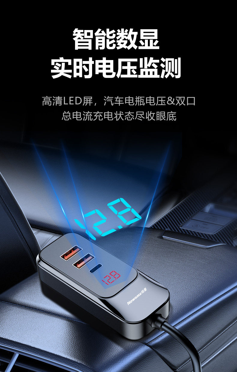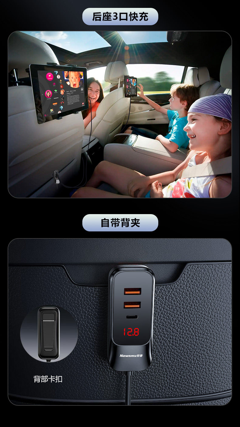 Newman Car Charger Super Fast Charging One-To-Three Cigarette Lighter Multifunctional Adapter Extension Cable Rear Seat