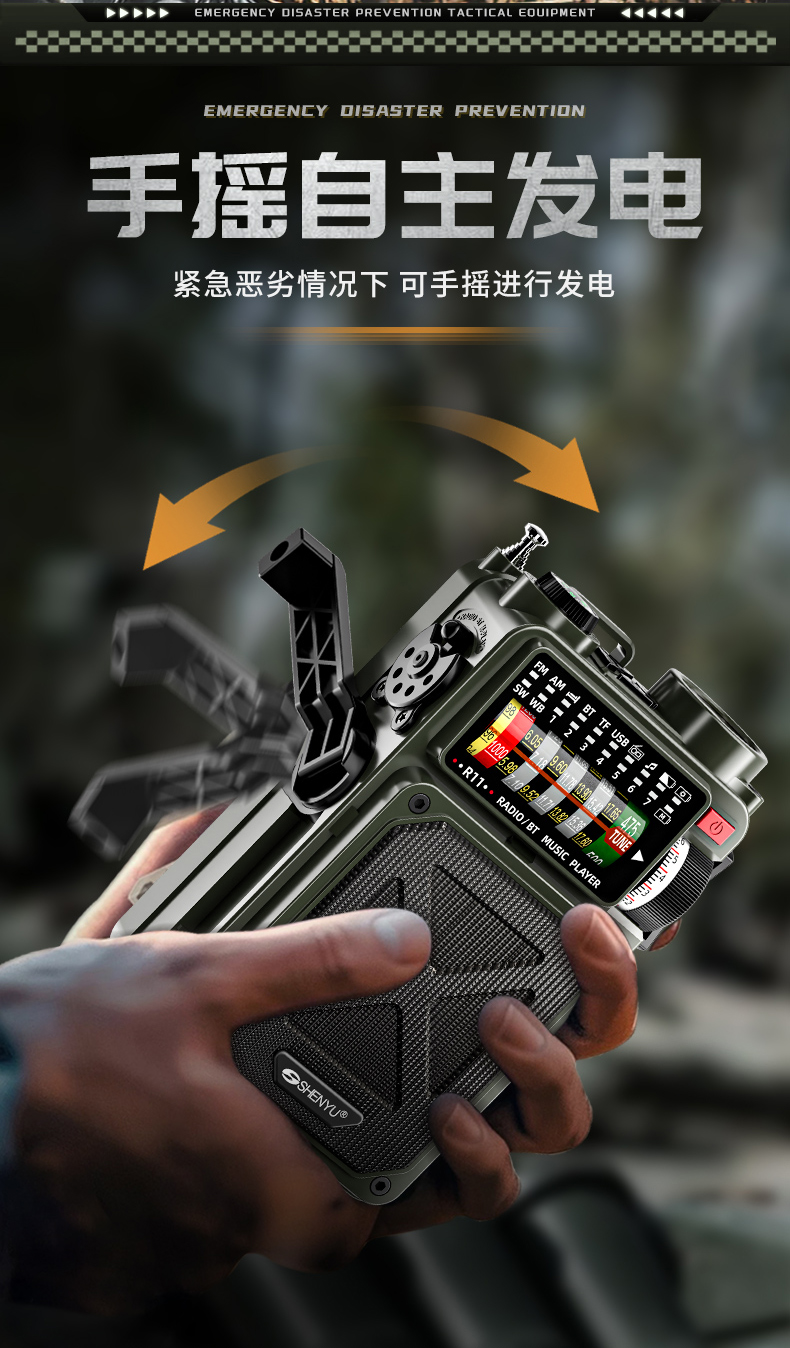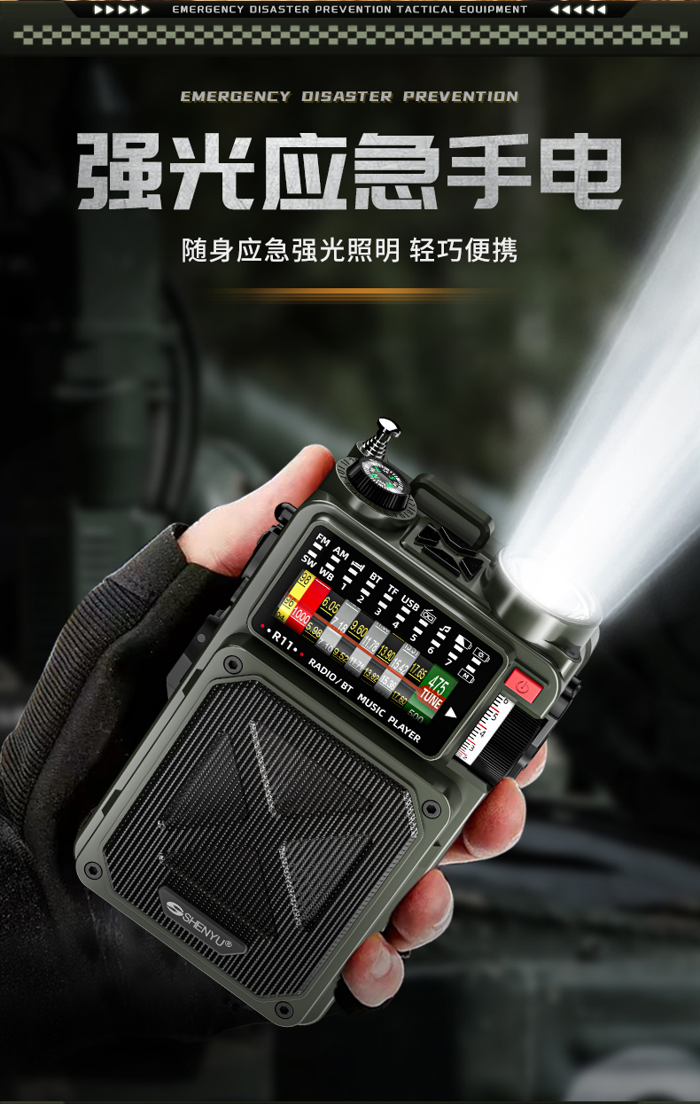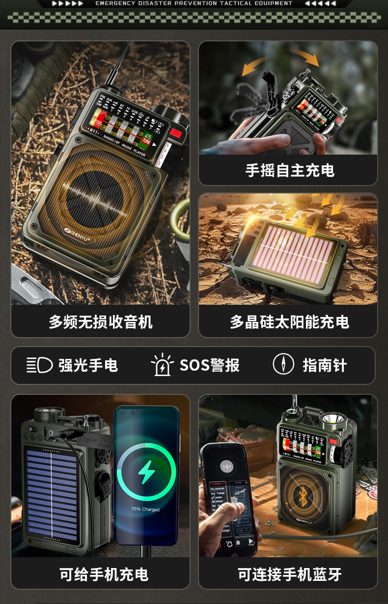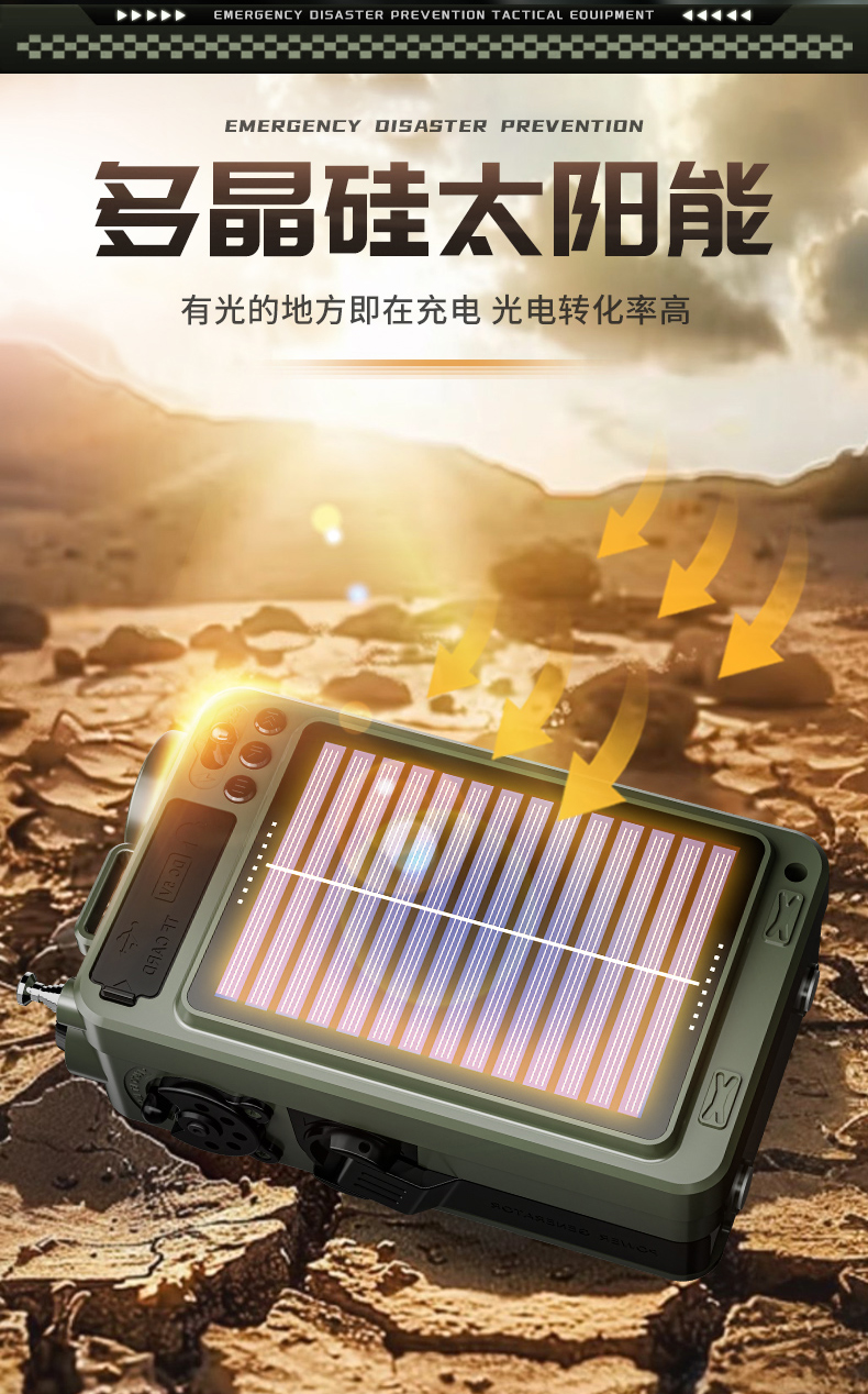 Solar-Powered Hand-Cranked Radio Emergency Flashlight with Strong Light, Ultra-Bright, Multi-Functional Rescue Outdoor Survival Equipment