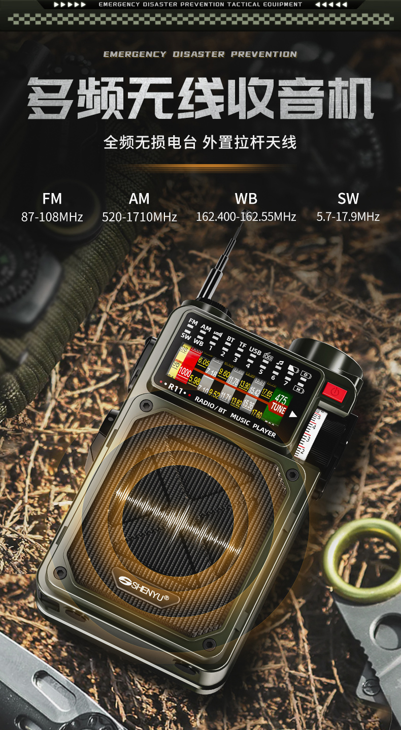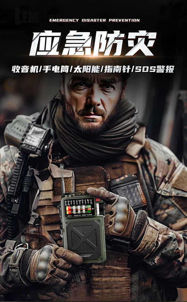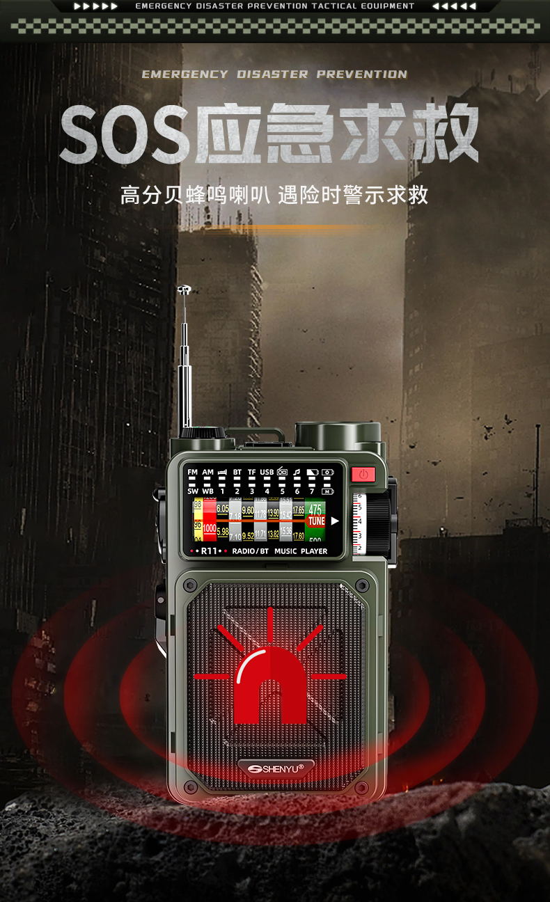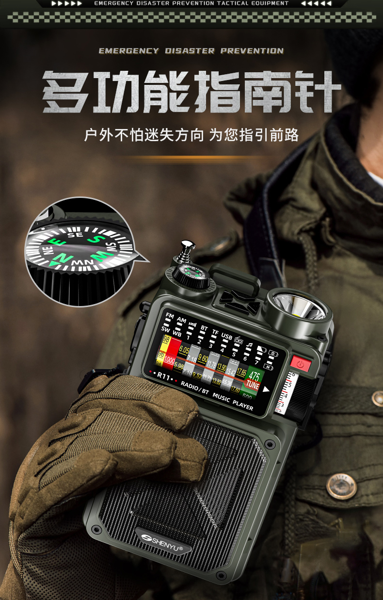 Solar-Powered Hand-Cranked Radio Emergency Flashlight with Strong Light, Ultra-Bright, Multi-Functional Rescue Outdoor Survival Equipment